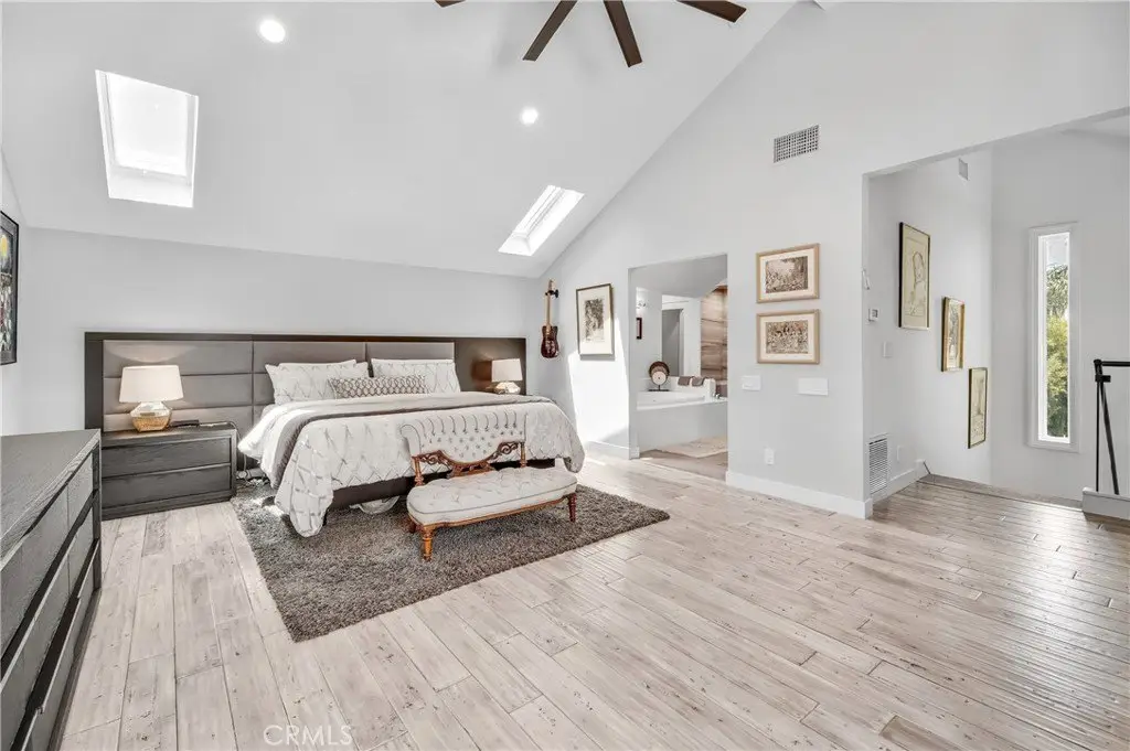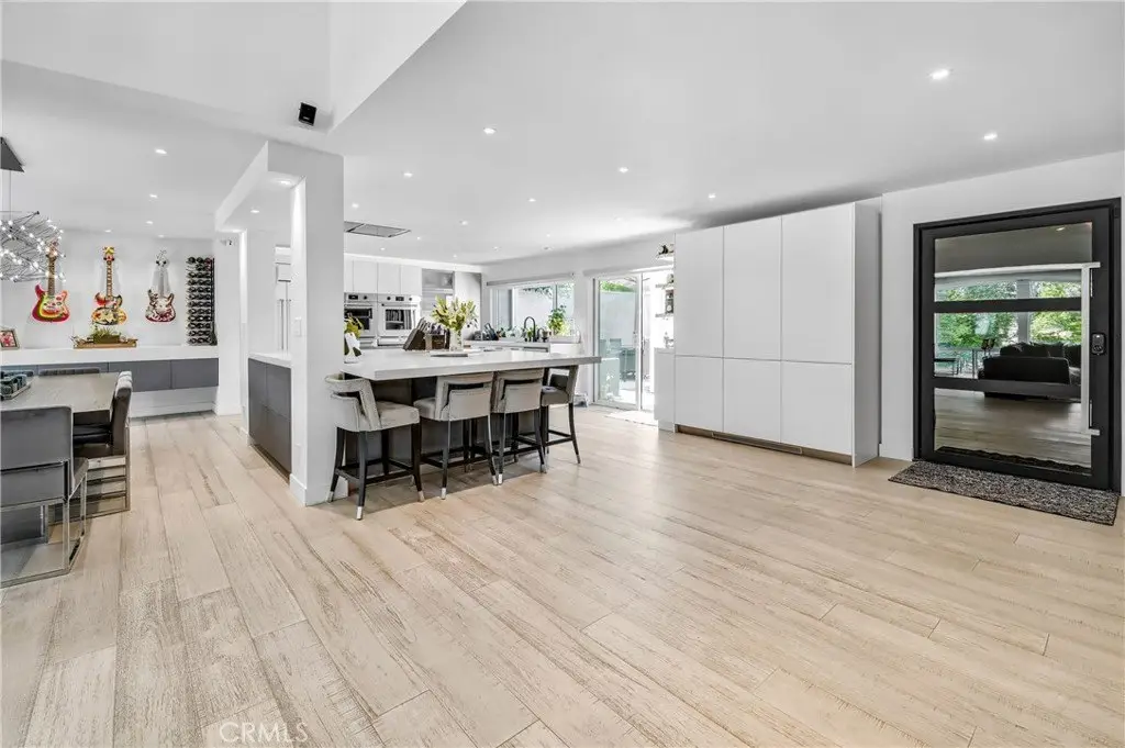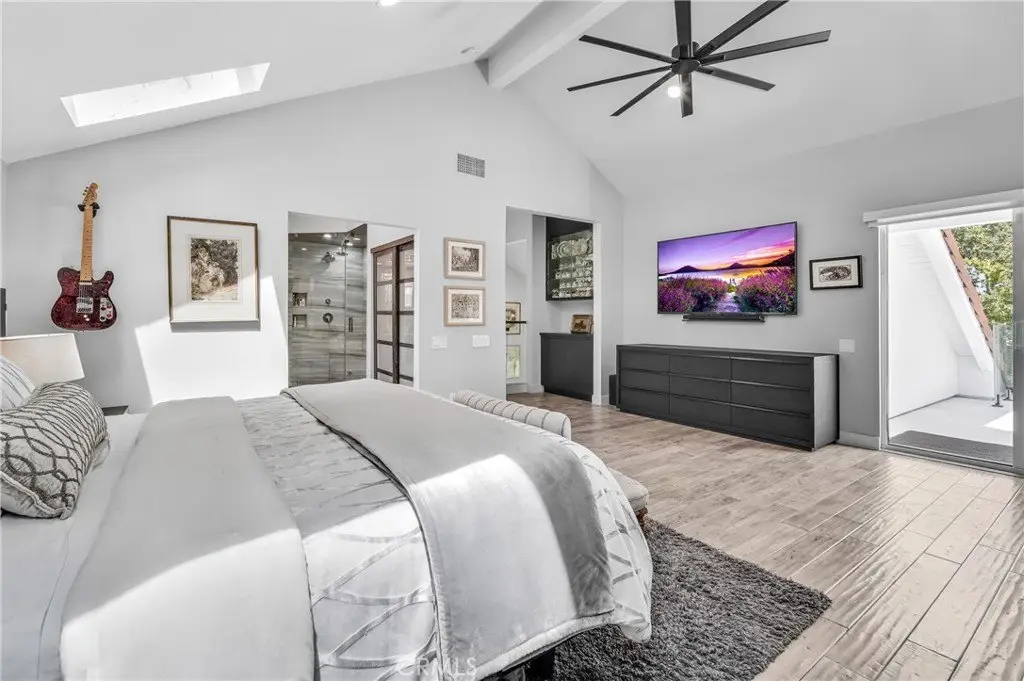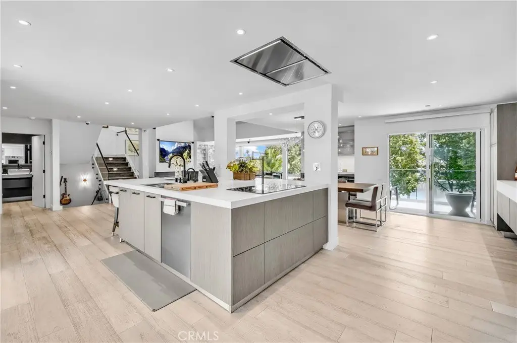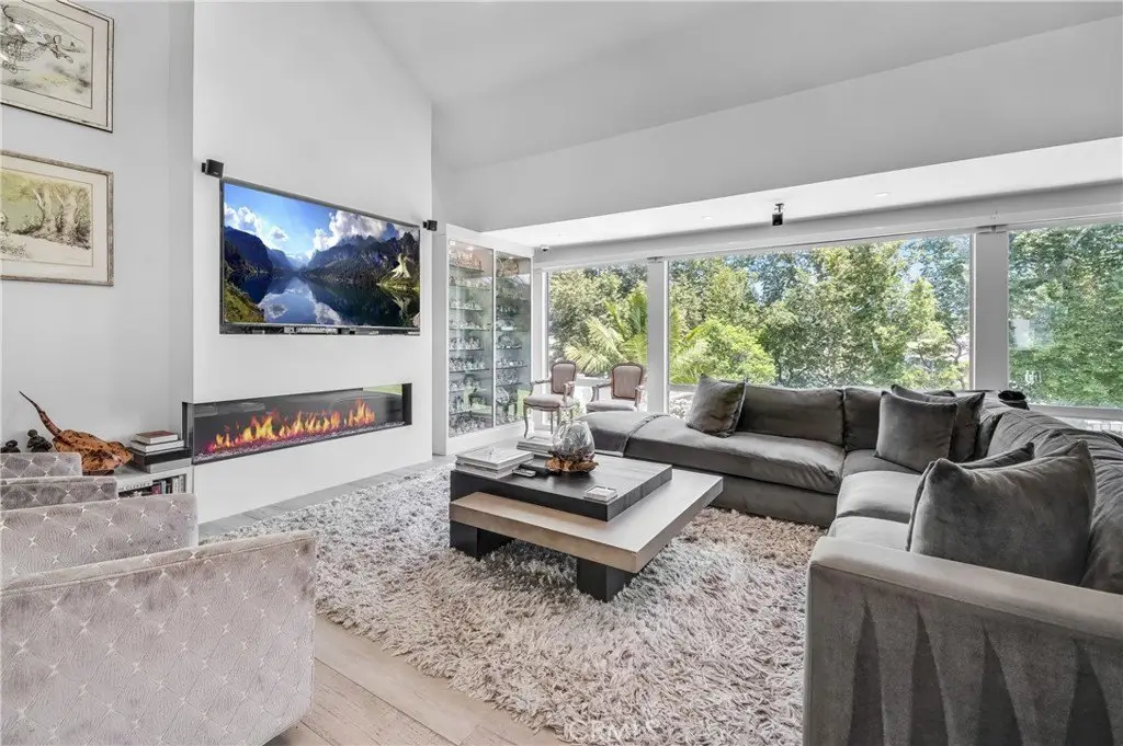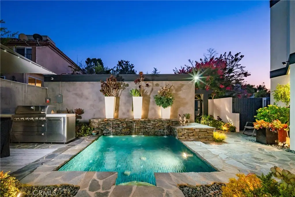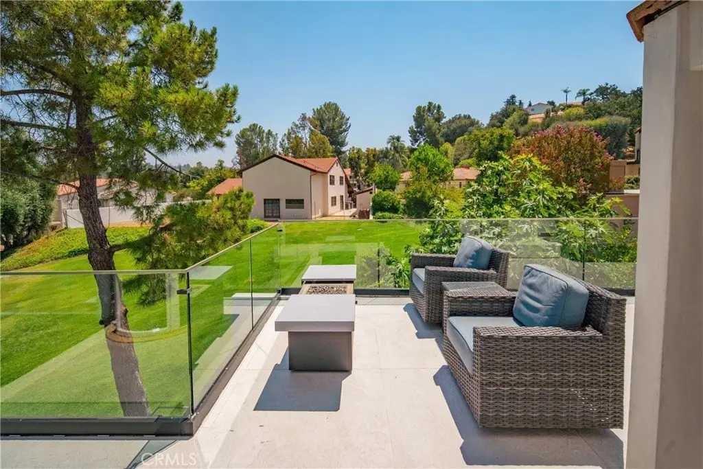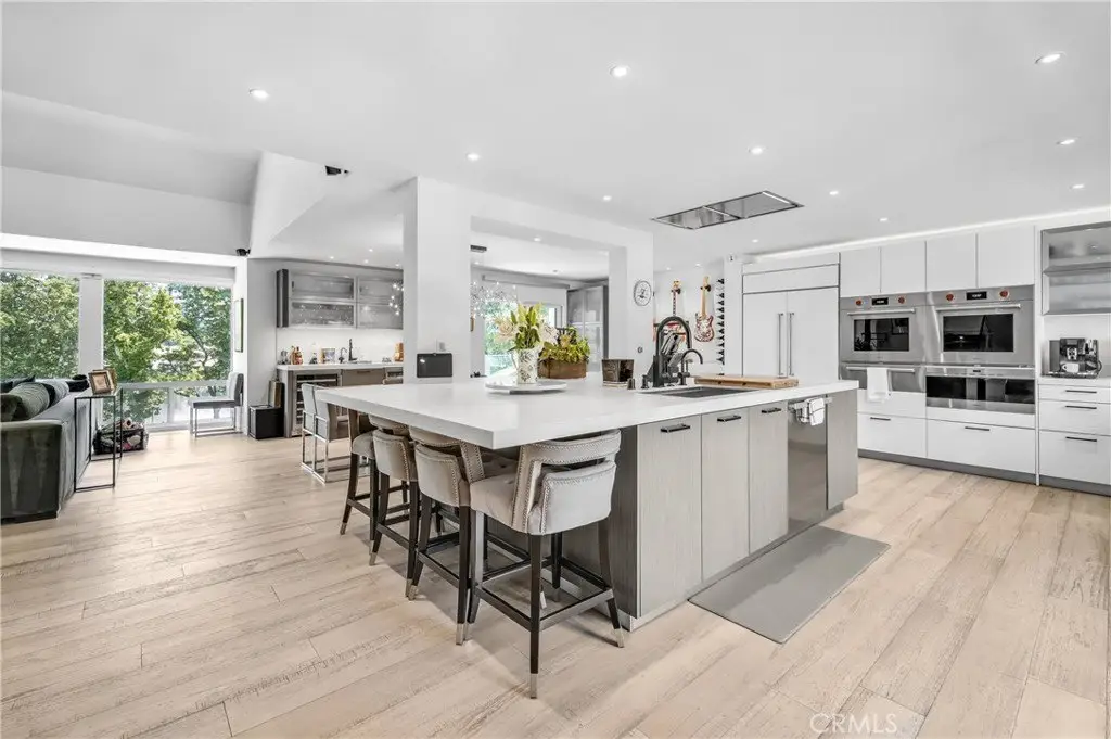 Welcome to this extraordinary lakefront estate in Calabasas Lake, privately situated on a quiet cul-de-sac. Reimagined with modern sophistication, this architectural masterpiece blends design, technology, and natural beauty, offering panoramic lake and park views as the ultimate backdrop for luxury living. Every detail has been thoughtfully curated, from new electrical and plumbing systems to advanced Control4 smart home automation and an elevator serving all three levels. The open floor plan was designed for both entertaining and everyday comfort, filled with natural light and expansive glass doors framing stunning waterfront vistas. The Bauformat German gourmet kitchen features a porcelain-topped island, custom European cabinetry, two Miele dishwashers, dual Wolf ovens with induction range, microwave, warming drawer, and full-size Sub-Zero refrigerator and freezer. The elegant dining area includes a wet bar and dual wine refrigerators, flowing seamlessly into the living and family rooms with modern fireplaces and bespoke built-ins. The primary suite showcases vaulted ceilings, skylights, a spa-inspired bath with steam shower, whirlpool tub, dual vanities, walk-in closet, and a private terrace overlooking the lake and park. The lower level offers a media room, two bedrooms, full bath, laundry, and elevator access. A detached ADU provides a full bedroom, bath, and separate entrance, ideal for guests, office use, or live-in staff. Outdoors, a private walled yard surrounds the heated pool with waterfall, firepit lounge, and complete outdoor kitchen with sink, warming oven, and refrigerator. Additional features include a paid solar system, Lutron lighting with alarm integration, keyless entry, advanced security cameras, glass staircases, illuminated steps, Venetian plaster powder room, custom stereo cabinetry, three-zone HVAC, and black glass garage doors. Multiple balconies and terraces capture the Calabasas lakefront lifestyle at its finest. Rarely does a home of this design caliber and location come to market. This residence is a true private retreat, combining innovation, serenity, and timeless elegance in the heart of Calabasas real estate. Explore more Calabasas luxury homes for sale at www.DavidWatkins.com .
