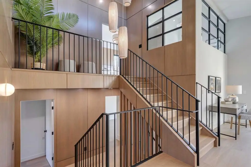 Welcome to 3423 23 Street NW, a mid century modern luxury residence, located in the highly desirable community of Charleswood. This newly built home offers over 3,400 sq. ft. of thoughtfully designed living space, showcasing an impressive blend of architectural sophistication, premium natural materials and state-of-the-art smart home features. The exterior makes an immediate statement with real brick, NewTech wood composite cladding, timber soffits and smooth stucco, creating a refined and low-maintenance façade that complements the mature, tree-lined street. Step inside to a foyer featuring white oak wall paneling and Limestone Bluestone pavers, setting the tone for the elegance carried throughout the home. The main level centers around a stunning chef-inspired kitchen equipped with a 48” Fulgor range, hoodfan & dishwasher, 36" Thermador fridge, all top of the line appliances. The perimeter counters are Temptation Quartzite w/leather finish, the island countertop - absolute Black granite w/brushed finish create a dramatic focal point, while custom white oak and painted cabinetry offer generous storage. The adjacent living and dining areas provide a seamless open-concept layout, highlighted by a gas fireplace with a Concrete Quartz surround, custom steel detailing, white oak millwork and expansive row of patio doors & windows that bathe the space in natural light. The upper level is anchored by an exceptional primary suite designed as a true retreat. The ensuite features striking “Fusion Wow” Quartzite, micro cement walls and ceilings in the shower, Riobel fixtures, a rain shower, freestanding tub and heated porcelain floors. A home office is adjacent to the primary bedroom. Two additional spacious bedrooms share a stylish Jack and Jill bathroom with Concrete Quartz finishes and glazed porcelain tile. A beautifully designed laundry room with LG large-capacity appliances, stone counters and built-in drainage adds convenience and functionality. The fully developed lower level offers a versatile media & recreation area with custom oak paneling, a fourth bathroom with heated floors and ample storage. This space is ideal for family living or entertaining guests. Comfort and convenience are elevated with integrated smart home technology, including Lutron lighting control, SONOS built-in speakers across five zones, HIK vision exterior security cameras, Wi-Fi controlled heated floors and a zoned furnace and central air conditioning system for year-round climate control. A heated double garage with hydronic in-floor heating and EV charging r-in provides both practicality and modern convenience. Every element of this home reflects careful craftsmanship, timeless design and luxurious functionality. Located on a quiet street just moments from parks, schools, the University of Calgary and urban amenities, this extraordinary residence delivers the perfect combination of elegance, innovation and everyday comfort in one of Calgary’s most sought-after neighbourhoods.