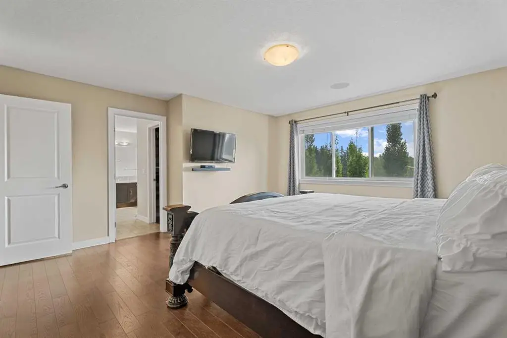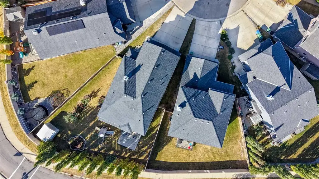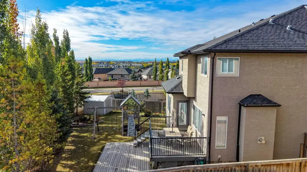 Welcome home to Aspen Woods in your new 5-bedroom + office house with over 2700 sq ft of above-grade space plus a finished basement. This executive air-conditioned home is on a large pie-shaped lot with no neighbours behind and on a quiet cul-de-sac on a no-through road with a playground around the corner. The main floor of the home has an inviting foyer with freshly painted double doors (this makes moving large items a breeze) and two closets, including a rare walk-in closet at the entry. Notably, this home is entirely carpet-free: cherry hardwood on the main floor, oak hardwood upstairs, and durable vinyl plank in the basement. There is a formal dining room and a private office on the main floor plus a spacious kitchen/dining/living room. The oversized garage has tall ceilings and could fit a small lift. The laundry is located off the entry to the garage with more closet space. The chef’s kitchen has an enormous island with a matching kitchen table that can be used as an extension of the island. There is a gas range, multiple pantries, a trash compactor, a wine fridge, display areas, and more! You can also catch glimpses of the mountains while sitting at the kitchen table. The living room has built-in wall shelves, a gas fireplace, and big windows to the east. The backyard is designed for both relaxation and play, with a two-tier deck, large shed, play structure, mature landscaping, and two productive apple trees—all on a nearly 7,000 sq. ft. lot. Upstairs is extremely spacious with a large bonus room with vaulted ceilings and built-in shelving, a grand primary bedroom, and three secondary bedrooms. The primary bedroom gets warm morning light and has a 5-piece ensuite and a walk-in closet with custom organizers. The remaining 3 bedrooms upstairs share a bathroom with dual sinks and a separate area for the bathtub & toilet. The westerly bedrooms have great views of the Rockies and Foothills to wake up to. The upper two floors also have built-in ceiling speakers. The fully finished basement includes a fifth bedroom with a built-in sink (ideal for a home-based business requiring a sink), a spa-inspired bathroom with multi-head shower, a wet bar, large bright windows, and ample storage, including a finished space under the stairs. Aspen Woods is a premier neighbourhood of Calgary with lots of local shops, quick access to the mountains, and a choice selection of schools, including Webber Academy, Rundle College, Guardian Angel Catholic, and Dr. Roberta Bondar Elementary. This stately Aspen Woods property blends elegance, functionality, and family-friendly features—ready to welcome you home.