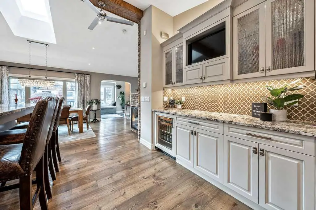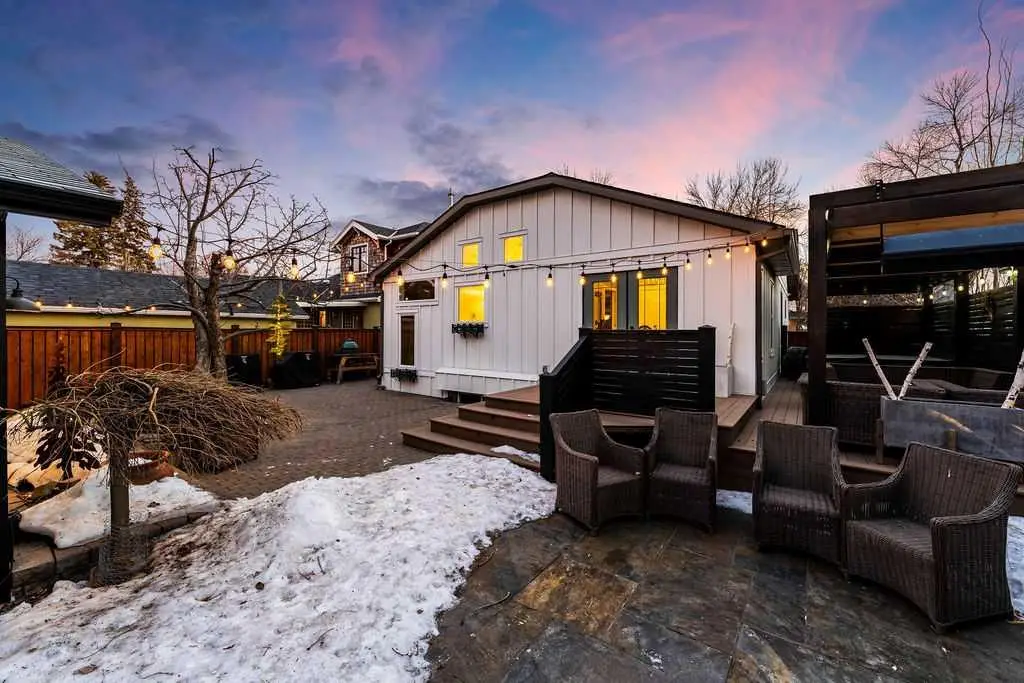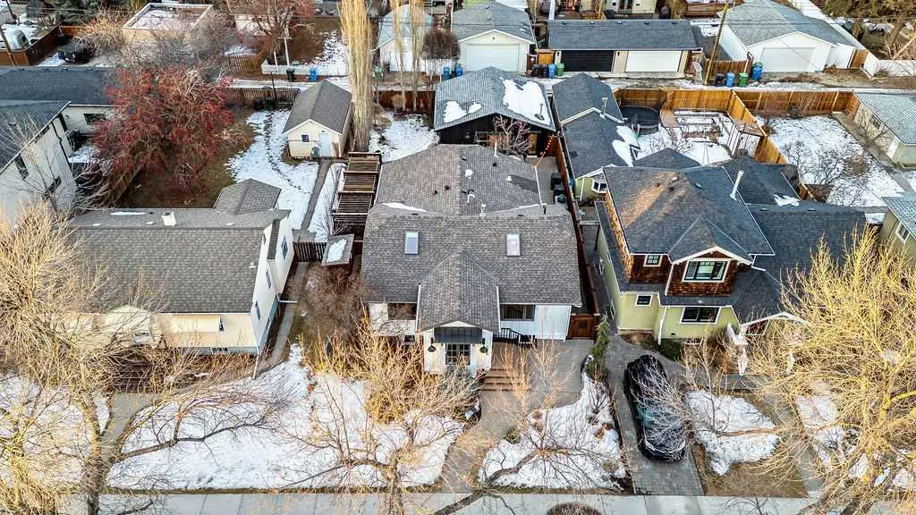 Welcome to this extraordinary bungalow in the sought-after neighbourhood of Renfrew. With 4 bedrooms, 2.5 bathrooms, and over 2500 square feet of thoughtfully designed, total living space, this home has undergone $600,000 in renovations over 15 years, including a 2023 basement and garage transformation. Every detail has been meticulously curated for a residence that exudes sophistication, comfort, and mindful design. Be captivated by the living and dining area, featuring a 3-way gas fireplace, a reclaimed Chicago brick wall, and vaulted ceilings with skylights that drench the main living area in sunlight. Other touches include stunning German oak hardwood floors throughout the main level and exposed ceiling beams clad in 100-year-old reclaimed barn wood. The gourmet kitchen, outfitted with Wolf, Miele, Asko and Sub-Zero high-end appliances, offers plenty of room to gather around the 9-foot, two-tiered island. The primary bedroom features French doors that lead out to a private pergola and hot tub oasis. The newly renovated basement offers a sunken, jungle-themed gym/flex area; 2 themed guest rooms connected by a Jack & Jill closet; an amenity bar for guests; an office with built-in cabinets; and a spa-like bathroom with in-floor heating and quartz countertops. The home's exterior is as impressive as its interior, featuring exposed aggregate walkways, Hardie Board siding on the house and detached garage, Gemstone lighting, a new roof in 2020, Leaf Filter gutters, and under-eave electrical outlets for seasonal decorating. The backyard has been thoughtfully designed with zoned entertaining and relaxation in mind. Welcome guests or enjoy your morning coffee on the private pergola and take away the chill with your infrared gas heater. Gather on your slate patio, surrounded with perennial, mature landscaping that creates a private park-like setting in an ultra-convenient, inner-city location. You also have 4 natural gas hookups to elevate your hosting potential. The detached double garage is a masterpiece in itself, featuring new extra-large windows, epoxy flooring, a vaulted ceiling, a natural gas heater, a new garage door with graphic art, metal cabinetry, and an updated electrical panel that could accommodate EV charging. Renfrew is where urban living meets community charm, and this inner-city sanctuary offers the perfect balance of tranquility and urban convenience. Enjoy being just a 25-minute walk to downtown Calgary, with Co-op, Renfrew Pool, parks, schools, and restaurants all within a 5- to 10-minute stroll. The vibrant neighbourhoods of Bridgeland, Kensington, and Inglewood, as well as the Calgary Zoo, are also within walking distance, making this home the epitome of connected living. Come and see for yourself that this is more than just a home—it’s a bespoke lifestyle where every touch has been carefully considered.
