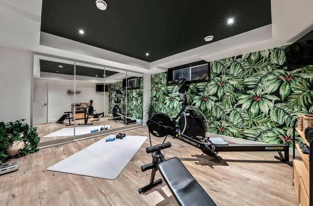 • Private pergola with hot tub oasis Jungle-themed gym/flex area