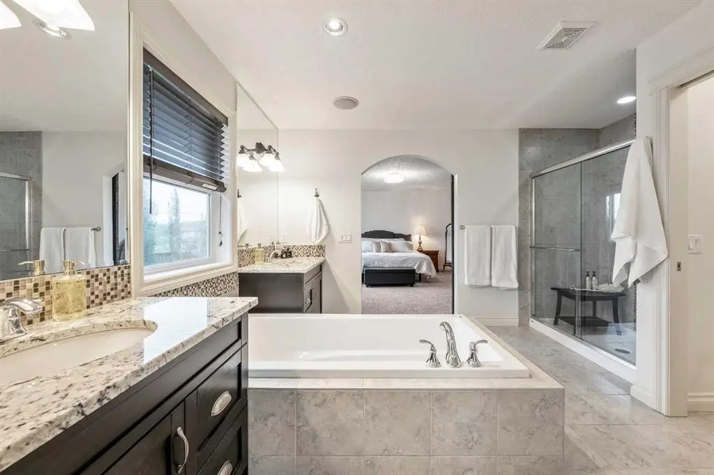 Welcome Home! This immaculate Estate Home is located in Rockford Estates, on a quiet and family-friendly street in the sought after community of Rocky Ridge! On the market for the first time, this 2013 build boasts over 3400 sq ft of living space. Stepping into this elegant home, you are greeted with a grand foyer that's spacious and open to above, lots of space to greet your guests. There is beautiful hand-scraped, engineered, wide-plank hardwood flooring throughout the main floor. Wander through the den and into the upscale gourmet kitchen featuring a large island with a raised bar to have your guests sit at, granite countertops, tons of cupboard and counter space, upgraded stainless steel appliances and a designer Wolf 6 burner gas stove! If you love cooking you will love this kitchen! With 9' ceilings, the open floor plan incorporates a dining room and living room off of the kitchen, great for hosting dinner parties! The main floor is capped off with a large mud room that incorporates the laundry room and a powder room. Head upstairs to the bonus room with large windows that lets all the natural light in. Walk down the hall to the spacious primary bedroom, with more large windows and tons of space - your own personal oasis! The ensuite has two vanities, tub, shower and 2 walk-in closets. There are 2 more good sized bedrooms and a 4 piece bathroom that finishes off the upper floor. The basement has a great spot to watch movies on the large projector with the family. No reason to go upstairs with the amazing wet bar - make your popcorn and have your drinks at the amazing custom wood countertop. Host your buddies for the superbowl!! There is also a large bedroom and a 4 piece bathroom on this level. Finally, step out into the amazing backyard, with large deck and hot tub - great for BBQ'ing and having friends and family over! Lots of mature trees makes it private and the large pie-shaped lot gives you tons of space to play with the kids or let the dog lounge. Kick up your feet and make some smores around the fire pit, in this quiet and serene yard! If you like being outside this backyard is for you! The YMCA, schools, shopping and restaurants are all just steps away. This beautiful neighbourhood has lots of bike paths, walking trails and is a short hop to the mountains. You don't want to miss out on this one! Welcome Home!