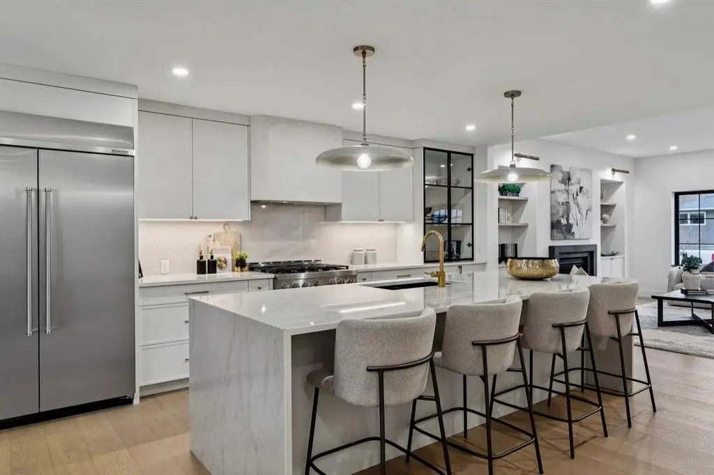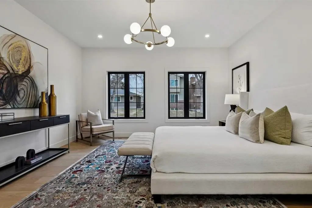Welcome to 1013 31 Avenue NW, a rare newly renovated 1,800 sq. ft. bungalow perfectly positioned in the heart of Cambrian Heights. One of Calgary’s most sought-after inner-city communities. Just steps from Confederation Park, this home offers the ideal balance of inner-city convenience and quiet, tree-lined living. From the moment you arrive, the curb appeal is undeniable. A covered composite front porch and a brand-new exterior finished in a timeless combination of board & batten and stucco set the tone for the craftsmanship found throughout. The property also includes a newly built oversized double garage with alley access. Step inside this modern farmhouse bungalow to discover a bright, open floor plan with 9-foot ceilings at the entry, creating an immediate sense of space. The living room features a gas fireplace with custom built-ins, flowing seamlessly into the chef’s kitchen, complete with custom cabinetry, new KitchenAid built-in appliances, and a 10-foot waterfall island. Adjacent to the kitchen is a walk-in pantry, and beyond that, a spacious dining area with a custom bar that opens through 8-foot sliding doors to a south-facing backyard and large entertaining deck. The main floor also includes a beautifully designed main bathroom, a second bedroom that can double as an office, and a mudroom with built-in storage leading to the rear deck and garage. The primary suite is a true retreat - featuring 9-foot ceilings, a large walk-in closet with custom wardrobe cabinetry, and a resort-inspired ensuite with double vanity, heated floors, and a custom rainfall shower. The fully developed lower level continues to impress with a massive rec room with a bar, a beautifully designed laundry room, two additional bedrooms, and a spa like bathroom with a large shower and heated floors. This home has been completely renovated inside and out. Including new electrical, plumbing, HVAC, furnace, and central air conditioning, offering the peace of mind of a brand-new home in a highly established and desirable location.