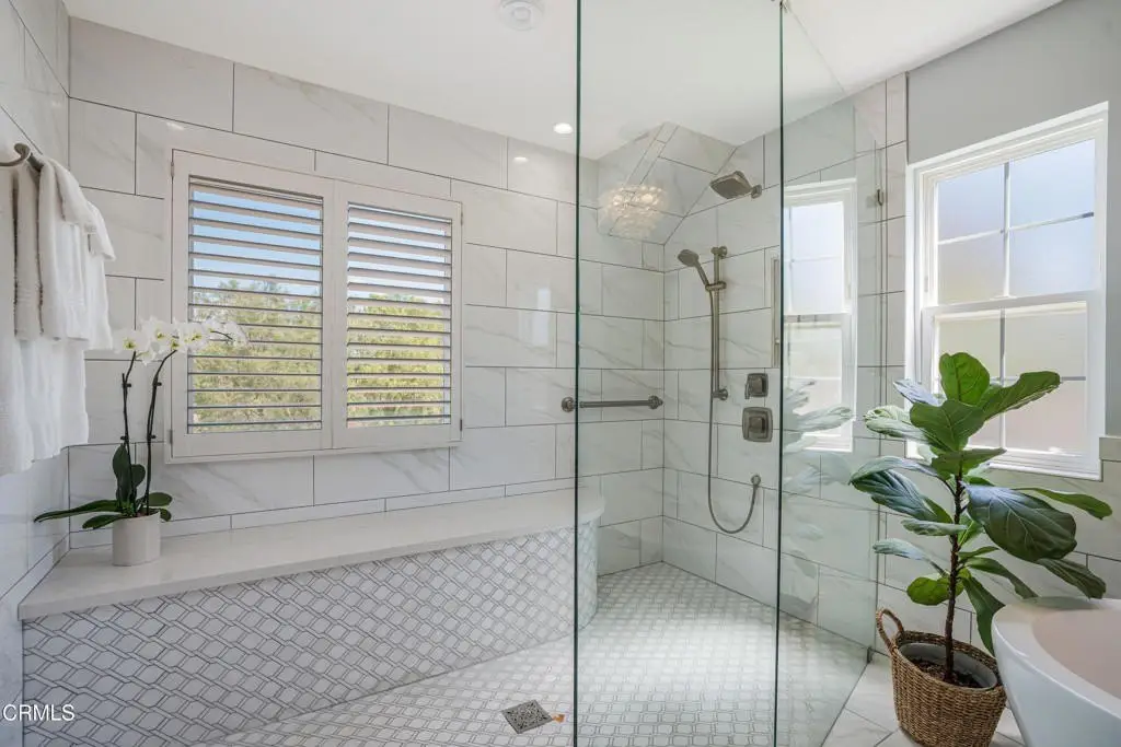 Experience modern luxury, privacy and sweeping VIEWS from this beautifully reimagined custom residence in the prestigious Terra Bella Estates. Set on a private flag lot and designed for both refined entertaining and everyday comfort, this home has been thoughtfully remodeled throughout with timeless finishes and an effortless indoor-outdoor lifestyle. Step inside to a warm, sophisticated living room anchored by a classic custom fireplace. Overhead, an exquisite Tiffany stained-glass chandelier adds a soft, artful glow - creating a space that is both elegant and inviting. The heart of the home is the beautiful chef's kitchen, where sleek quartz countertops, soft-close custom solid wood cabinetry with Rev-A-Shelf pull-outs, contrasting hand-cut lower cherrywood and upper hand painted wood complement high-end stainless-steel appliances including a commercial-grade 5-burner range and professional vent hood. A formal dining room sets the stage for memorable gatherings, while the adjoining family room offers a relaxed, comfortable space for daily living. With six bedrooms, including one conveniently located on the main level, the floor plan provides exceptional versatility. The primary suite is a calming retreat featuring a generous layout and a fully remodeled spa-inspired en-suite with quartz dual vanity, wash-let bidet, luxurious free-standing soaking tub, and an expansive walk-in shower highlighted with marble lattice tile and refined modern fixtures. The home also features a second full bath and two additional half baths, ensuring comfort and convenience for residents and guests alike. Step outdoors and discover your own private oasis! A covered patio invites lounging, dining, and quiet morning coffee moments, while the sparkling pool and spa - complete with a soothing waterfall feature - offer resort-style enjoyment with stunning panoramic views. Surrounded by mature olive trees and thoughtful landscaping, the backyard feels serene and completely private - an escape designed for true relaxation. The home has also been upgraded for modern efficiency and comfort, featuring a brand-new furnace, tankless water heater, and all new PEX plumbing. The two-car garage includes a versatile bonus room ideal for a home gym or studio, and an unfinished attic space offers exciting potential to be reimagined - possibly as an added room with an ocean view. A rare offering blending classic elegance, modern comfort and nature!