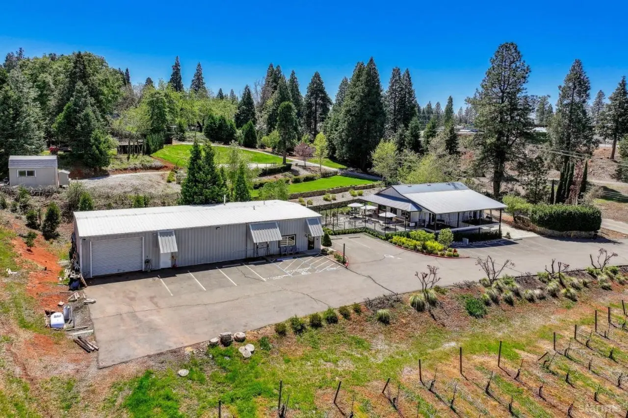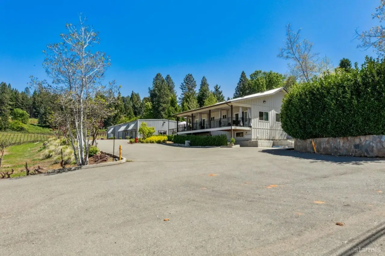 Discover a stunning 20-acre winery estate in the heart of Apple Hill, two 10 acre parcels, offering endless possibilities for unforgettable weddings and events. This versatile property combines rustic charm with modern amenities, ideal for hosting celebrations, crafting artisanal wines, and creating lasting memories. Parcel 1: Commercial + Vineyards. This parcel features a meticulously renovated commercial complex, including: Winery (3,200 sqft): A state-of-the-art facility with a remodeled tasting room, ADA-compliant restrooms, office space, and a refined barrel room, blending functionality with elegance. Event Space (1,480 sqft): A newly built space boasting a fully equipped commercial kitchen, new offices, ADA-compliant restrooms, potential bridal suites, changing rooms, ample storage, an 808 sqft deck, and a spacious patio with sweeping views of the 20-acre estate. Speakeasy Pub (785 sqft): A discreetly designed venue for intimate gatherings, adding a touch of exclusivity to events. Parcel 2: Residential + Vineyards A beautifully maintained 3-bedroom, 2-bathroom home provides a cozy retreat or potential accommodations for event hosts or guests, nestled within 10 acres of Vineyard. Spanning 16.4 acres of vineyards, the property cultivates grape varieties such as Cabernet Franc, Merlot, Picpoul, Lagrein, Syrah, and newly planted Nero d'Avola, producing wines that reflect the region's terroir. Multiple outdoor spaces, framed by rolling hills, vineyards, and towering pines, create an enchanting backdrop for private events, from grand weddings to intimate gatherings. Located just minutes from HWY 50, between Sacramento and Lake Tahoe, this venue offers ample parking and seamless accessibility for events of all sizes. Beloved by locals and visitors alike, this extraordinary estate weaves passion and beauty into every celebration, making it the perfect setting for weddings, private events, and more.