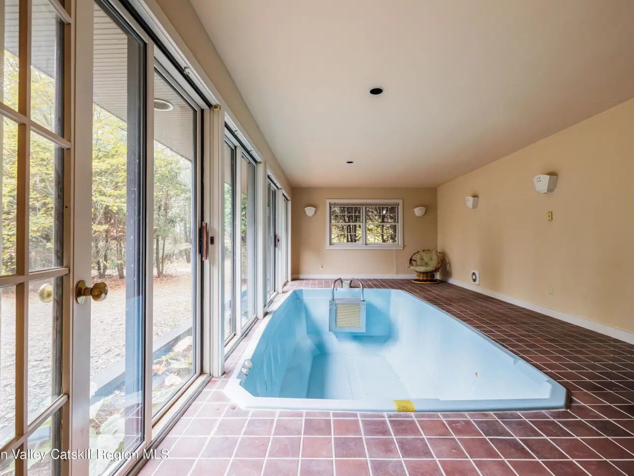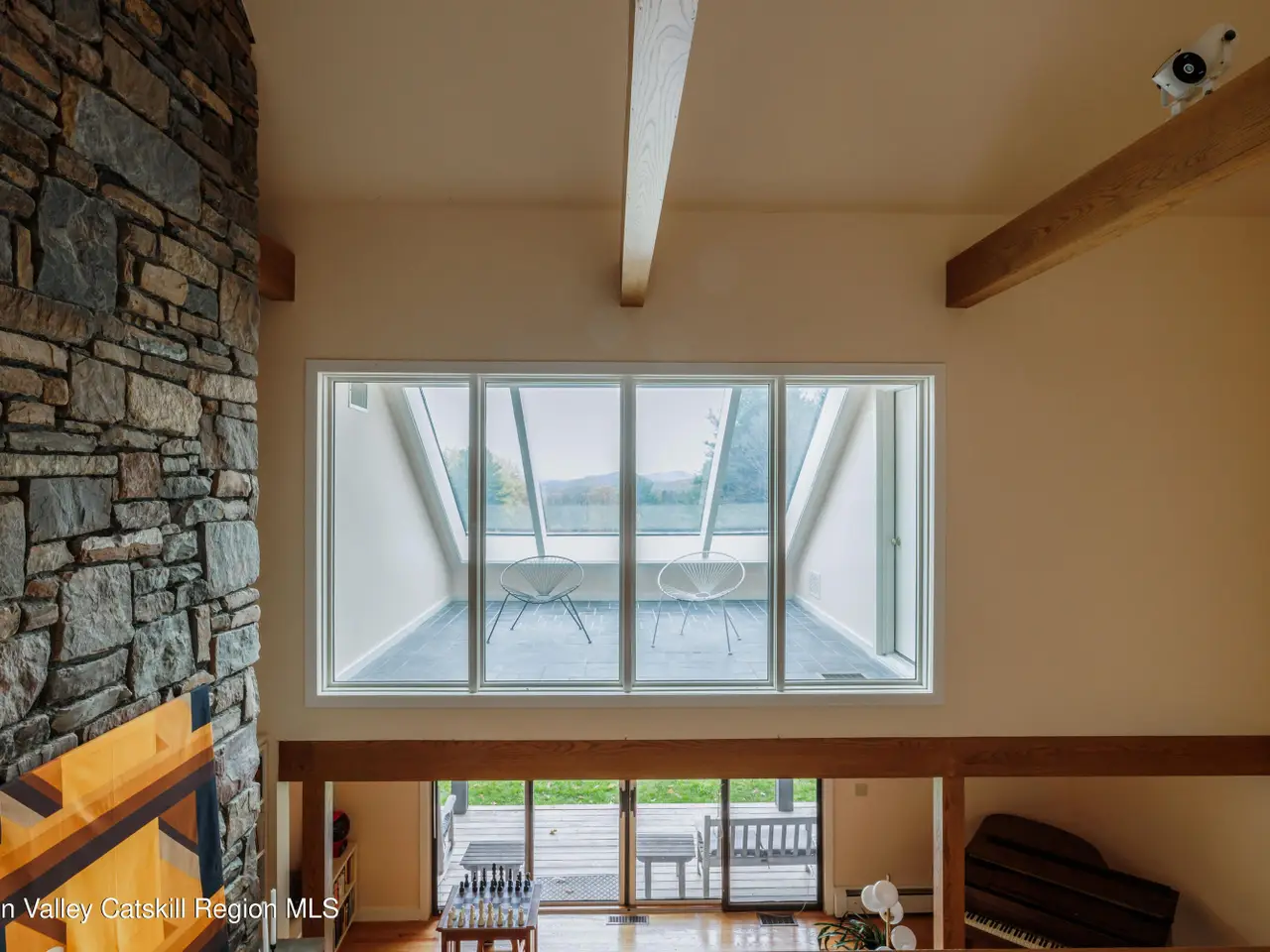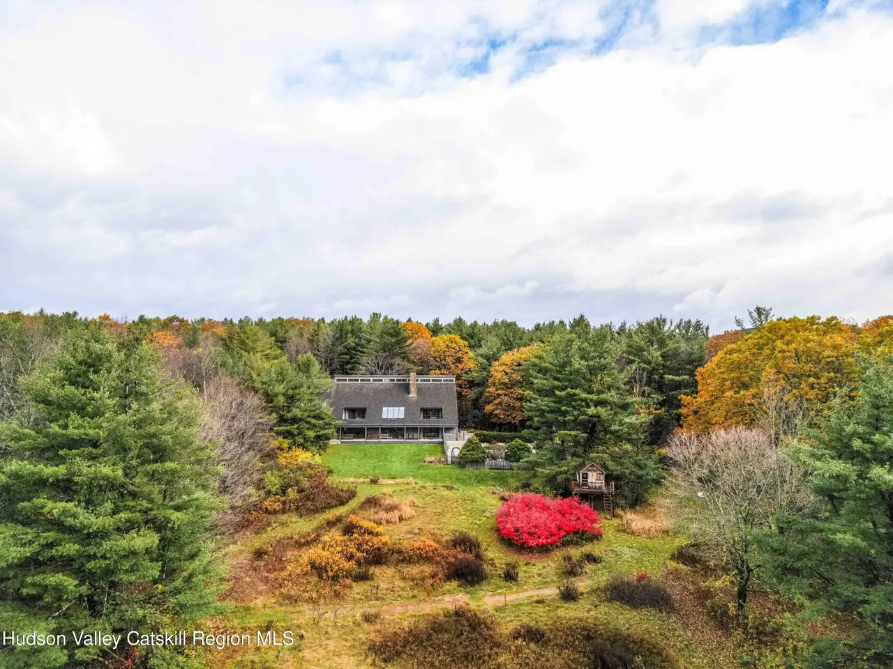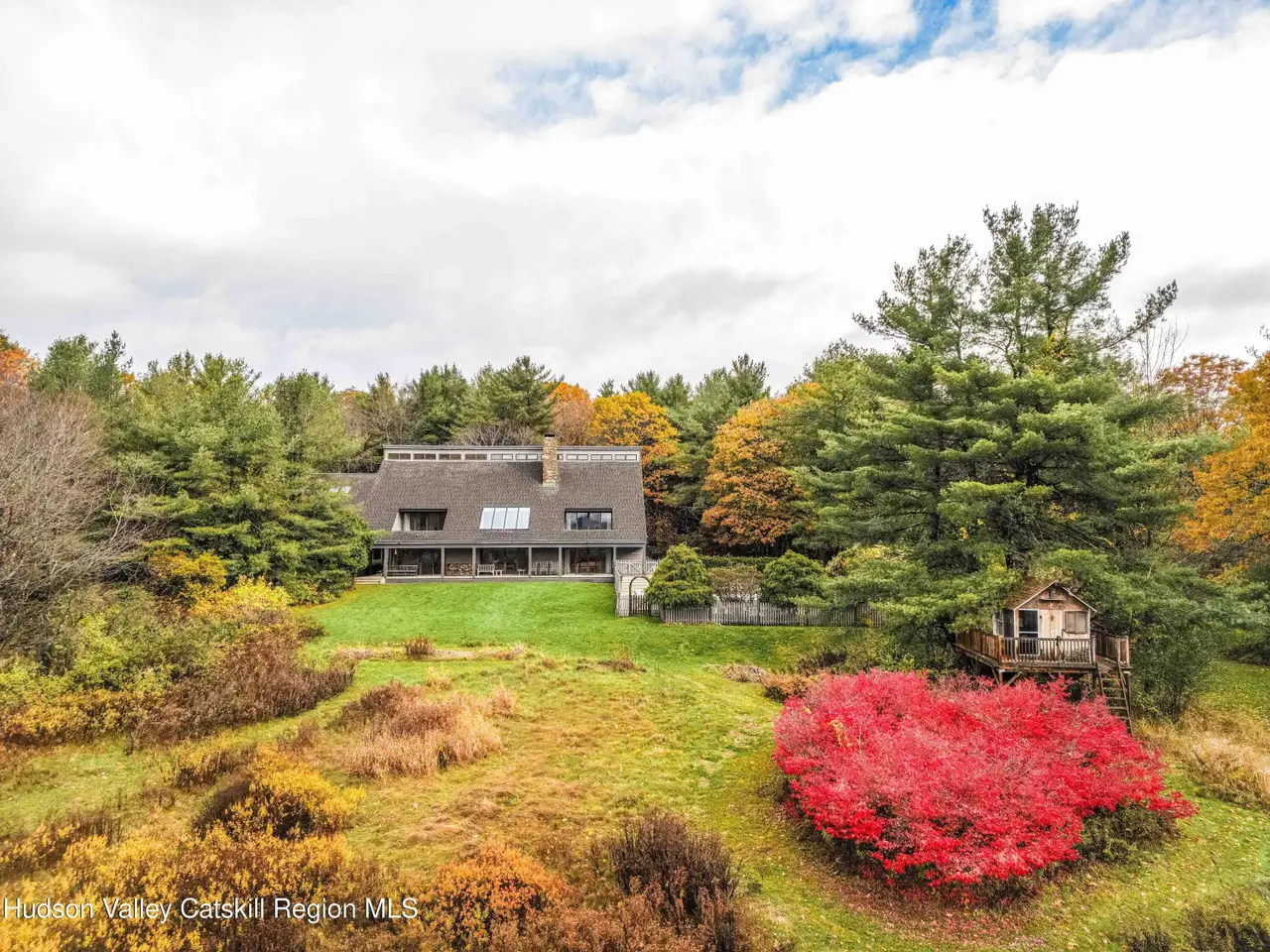 Welcome to Cannondale Compound. Set on 20 private acres with far-reaching mountain views, this 7,300-square-foot architectural retreat is ideally suited for large gatherings. Designed with soaring modernist lines and exceptional craftsmanship, the home offers multiple living and dining areas, seven bedrooms across two connected wings, expansive porches and balconies, and both indoor and outdoor pools. Outdoor highlights include a hot tub, pool house with bathroom, pavilion, garden, and a fully enclosed treehouse for summer overnights, along with deeded Queechy Lake rights for swimming and kayaking.The main wing of the home features a dramatic triple-height great room with a fieldstone fireplace, flanked by a wraparound deck. The stunning southeast-facing views of the Taconic and Berkshire Hills turn every sunrise and sunset into a cherished ritual. A large kitchen is designed for the serious home cook, with Sub-Zero refrigerator, professional hood, and dual pantries. The breakfast bar opens directly to a cozy living space with its own fireplace, dining area, and mountain views. Custom built-ins for books and LPs encourage everyone to slow down and savor life's quiet moments. On the second level are three bedrooms, including a primary suite with fireplace, walk-in closet, and private balcony, plus a solarium and office nook. A breezeway connects to the north wing, where an indoor lap pool provides a year-round spa-like retreat. This section offers four additional bedrooms, three bathrooms, a kitchenette, loft-like studio, workshop, and attached three-car garage. Recent upgrades include a new geothermal heating system, refinished decks, new flooring throughout the main wing of the house, fresh exterior paint, and a new roof on all structures. The property sits on one of the largest lots in the sought-after community of Shaker Ridge, whose residents enjoy private tennis courts and a peaceful, well-maintained community setting. Minutes from Chatham, PS21 Arts Center, the Berkshires, and within easy reach of Hudson, Albany, western Massachusetts, and five ski resorts, this is a rare opportunity to own a one-of-a-kind Hudson Valley estate with total privacy, inspiring architecture, and unmatched versatility for entertaining or multigenerational living.