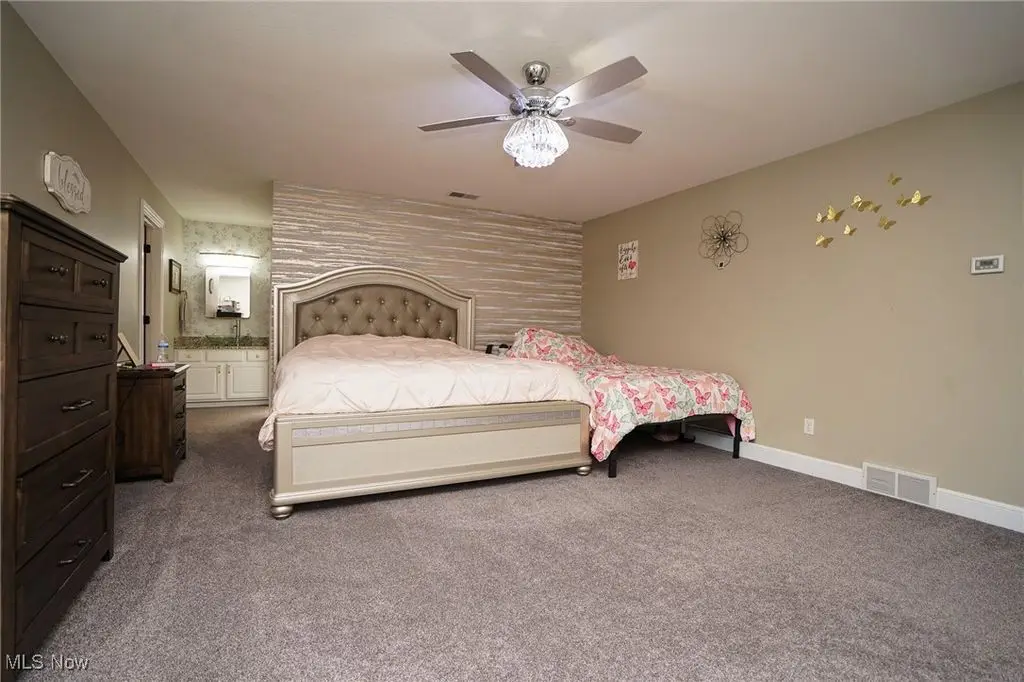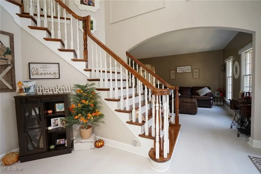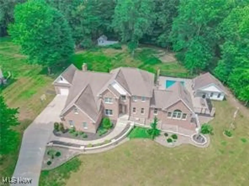 Welcome to this Luxurious Canfield Estate on Over an Acre! Roof only 3 yrs old. This stunning 4-bedroom, 5 full bath and one half bath home in the highly sought-after Canfield School District offers resort-style living inside and out. The property features an expansive deck overlooking a large paved patio, inground pool, pool house, and gas fire pit, outdoor built in grill, perfect for entertaining or relaxing in total privacy. Step inside to a grand two-story foyer that opens to a breathtaking great room with vaulted ceilings, a stone fireplace, and dual staircases leading to the upper level. The beautifully updated eat-in kitchen showcases quartz countertops, a large island with bar seating, a striking backsplash, and direct access to the deck for seamless indoor-outdoor living. The main floor also offers a large theater/game room, an additional family room, private office, and a formal dining room with arched entrances and elegant wainscoting. A convenient full bathroom on this level adds functionality for guests or those enjoying the main-floor entertainment spaces. The luxurious master suite is a true retreat with room for a lounge area, a massive walk-in closet with built-ins and an island, and a spa-like bathroom with dual shower heads and glass doors, a soaking tub beneath a chandelier, and a walk-in linen closet. Upstairs also includes three additional bedrooms and a full updated bath. The walkout lower level expands the living space with a full kitchen featuring quartz countertops and a walk-in pantry, a large matted gym, and another spacious living area. Two full bathrooms with tiled walk-in showers complete this level, one with direct access to the patio and pool area. A 3-car attached and 1-car detached garage with addition on back and walk up loft area. Every detail of this home blends luxury, comfort, and functionality for everyday living and grand entertaining. FYI walk out level can easily be a in-law suite.