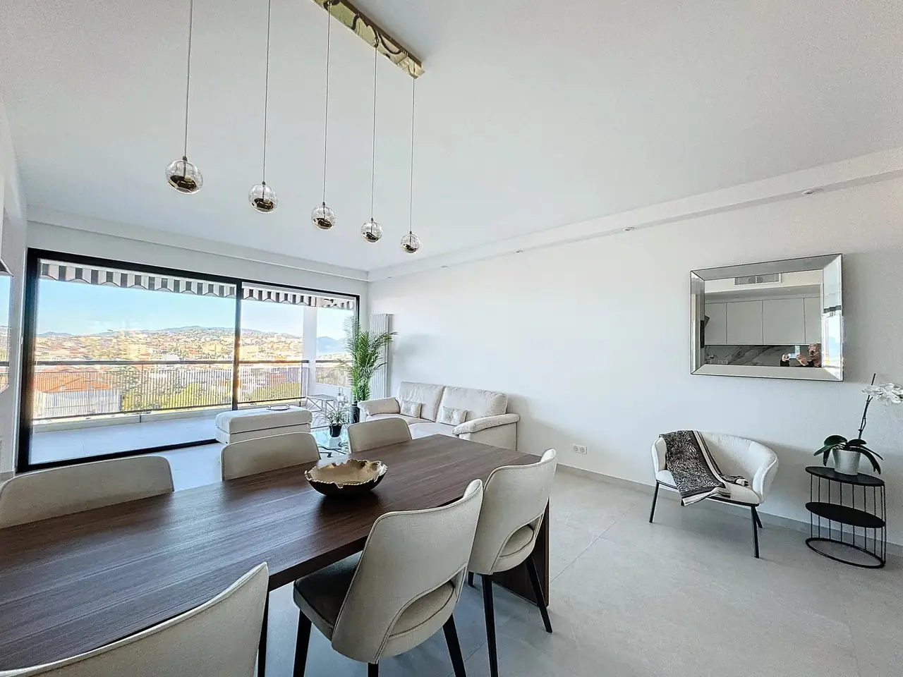 This exceptional 94 m² 3-bedroom apartment, in a quiet location with wonderful panoramic sea views, is on the top floor of a luxury residence in the Montfleury area in Cannes. The flat is in excellent condition and comprises: a large, bright living room opening onto a large west-facing terrace, an open-plan fitted kitchen, 1 bedroom with en-suite shower room, storage space and access to the terrace, a 2nd bedroom with en-suite shower room and a 3rd master bedroom with en-suite bathroom, plus shower and large dressing room. 3 toilets, including a guest one. Bonus: 90 m² roof terrace with 4 exposures. There is also an underground garage and a cellar.