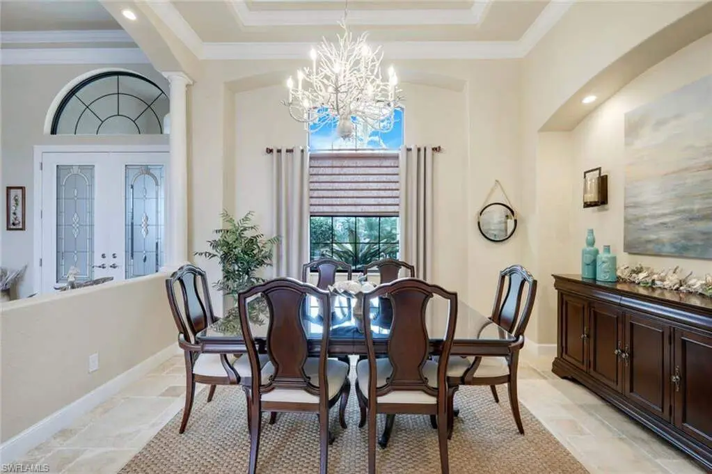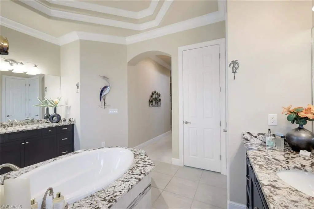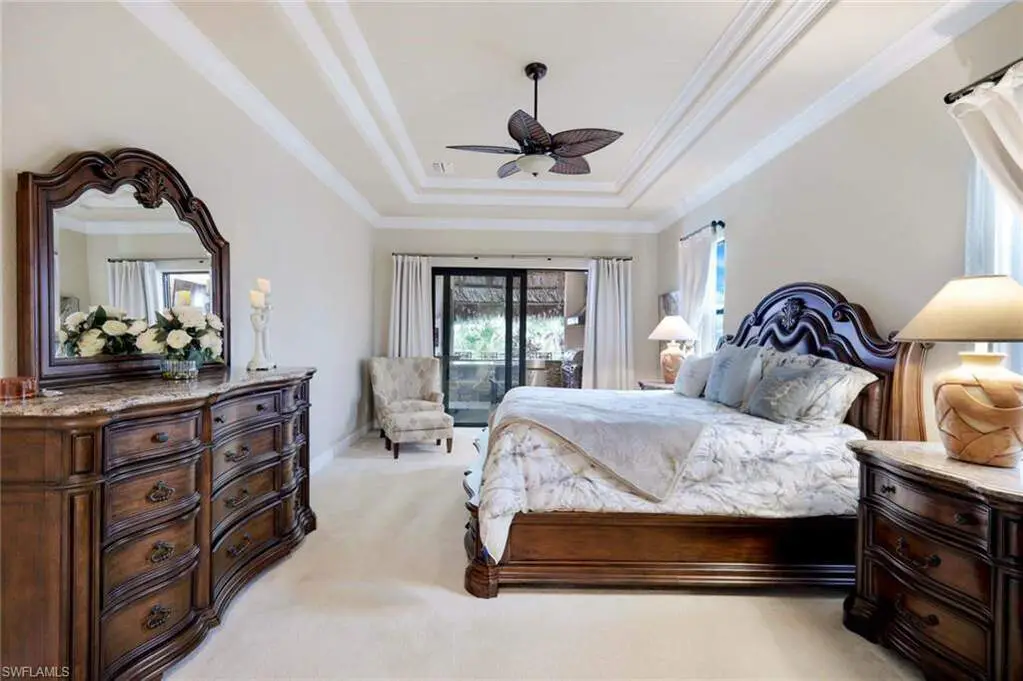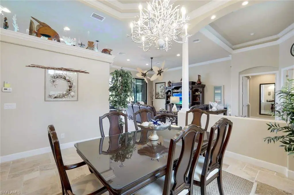 Experience the Ultimate Outdoor Lifestyle in Sunny Southwest Florida! Welcome to your personal tropical oasis! This stunning home features a tiki bar, outdoor kitchen, saltwater pool and spa, and a private dock with a tiki hut and boat lift offering direct Gulf access with no bridges or locks-just minutes to open water! As you arrive, you'll be greeted by a professionally landscaped yard filled with mature greenery, setting the tone for the beauty inside. Step through the elegant double-entry doors, and your eyes will be drawn to the sparkling pool with in-water seating, surrounded by a lush outdoor paradise. Inside, the home boasts tall ceilings, travertine flooring in the main living areas, crown molding, and tray ceilings. The chef in your family will love the dream kitchen, complete with custom wooden cabinetry, granite countertops, a breakfast bar, stainless steel appliances, and a large island with a wine fridge. The kitchen seamlessly flows into the living room, a casual eat-in area with pool views, and a formal dining space-perfect for entertaining. Slide open the glass doors to the expansive tiki bar, where you'll find a custom stone fireplace, charcoal and gas grills, an icemaker, dishwasher, pot filler, and outdoor burners, including a griddle. Relax by the heated (electric and solar) pool, grab a seat at the covered bar to catch your favorite sporting event, or enjoy your morning coffee on the canal-side dock. The primary suite is a serene retreat with access to the lanai, a spacious walk-in closet, and an ensuite bathroom featuring a separate tub and a walk-through shower. The home's split floor plan ensures privacy, with two guest bedrooms-one ensuite and the other adjacent to the pool bath-plus a versatile den/office currently set up as a fourth bedroom. This meticulously maintained home is being sold TURNKEY and exudes pride of ownership throughout. Live the vacation lifestyle every day with 5200 square feet of indoor/outdoor living! Built in 2014 by Frey & Sons, this home has not experienced any flooding. Call today to schedule your private showing and make this tropical retreat yours!