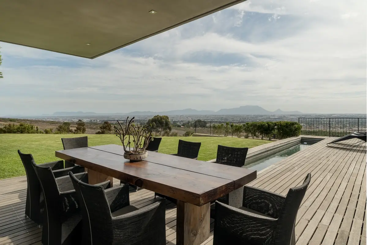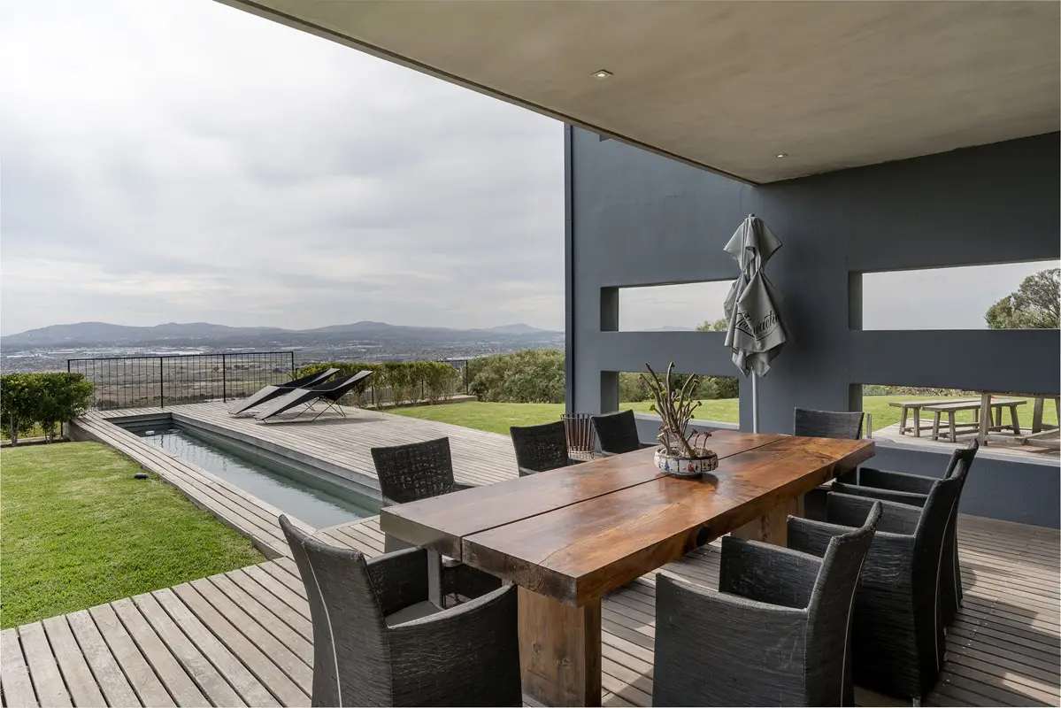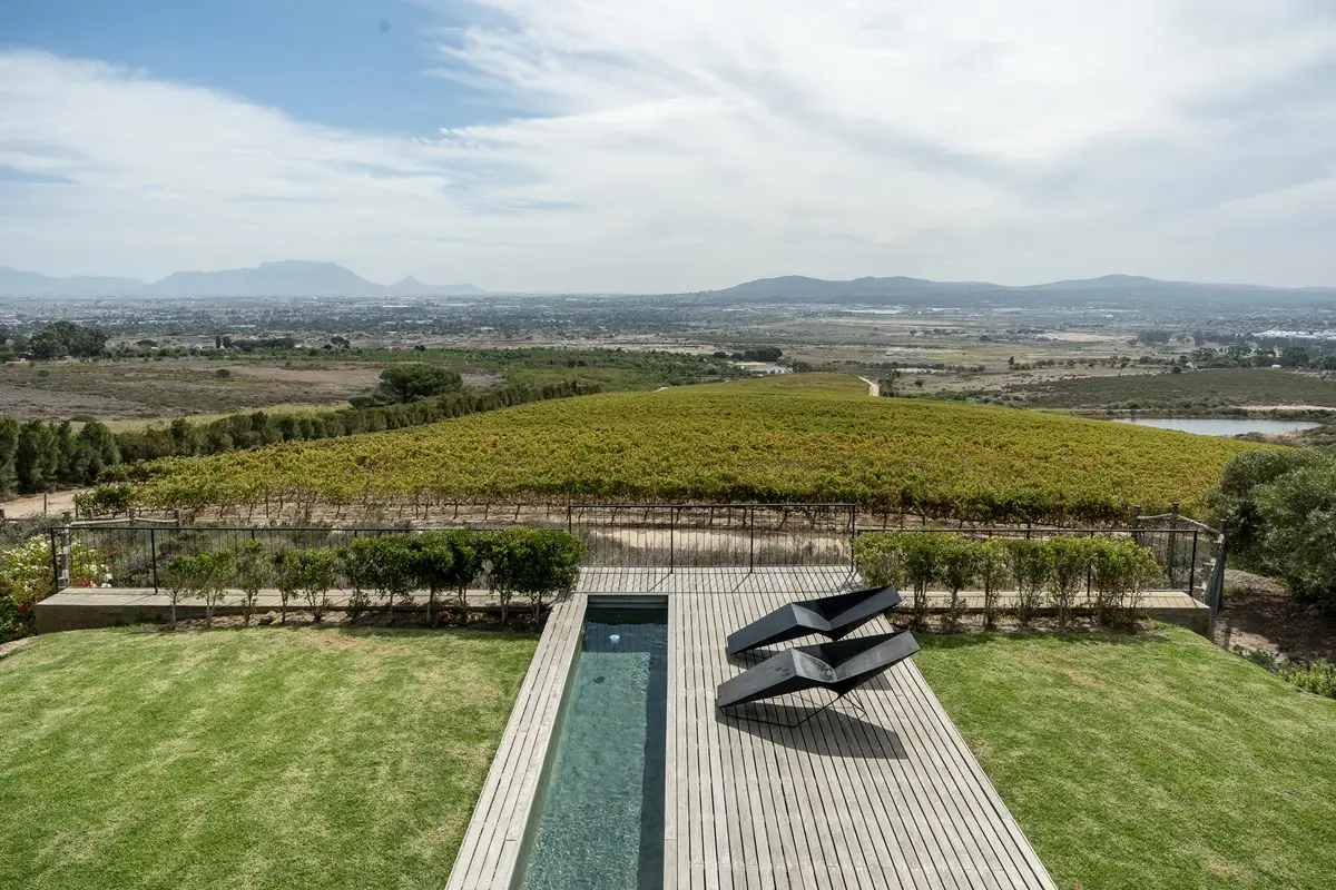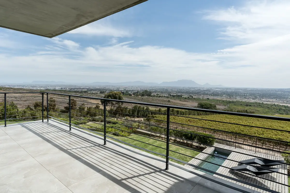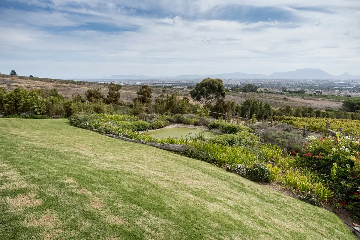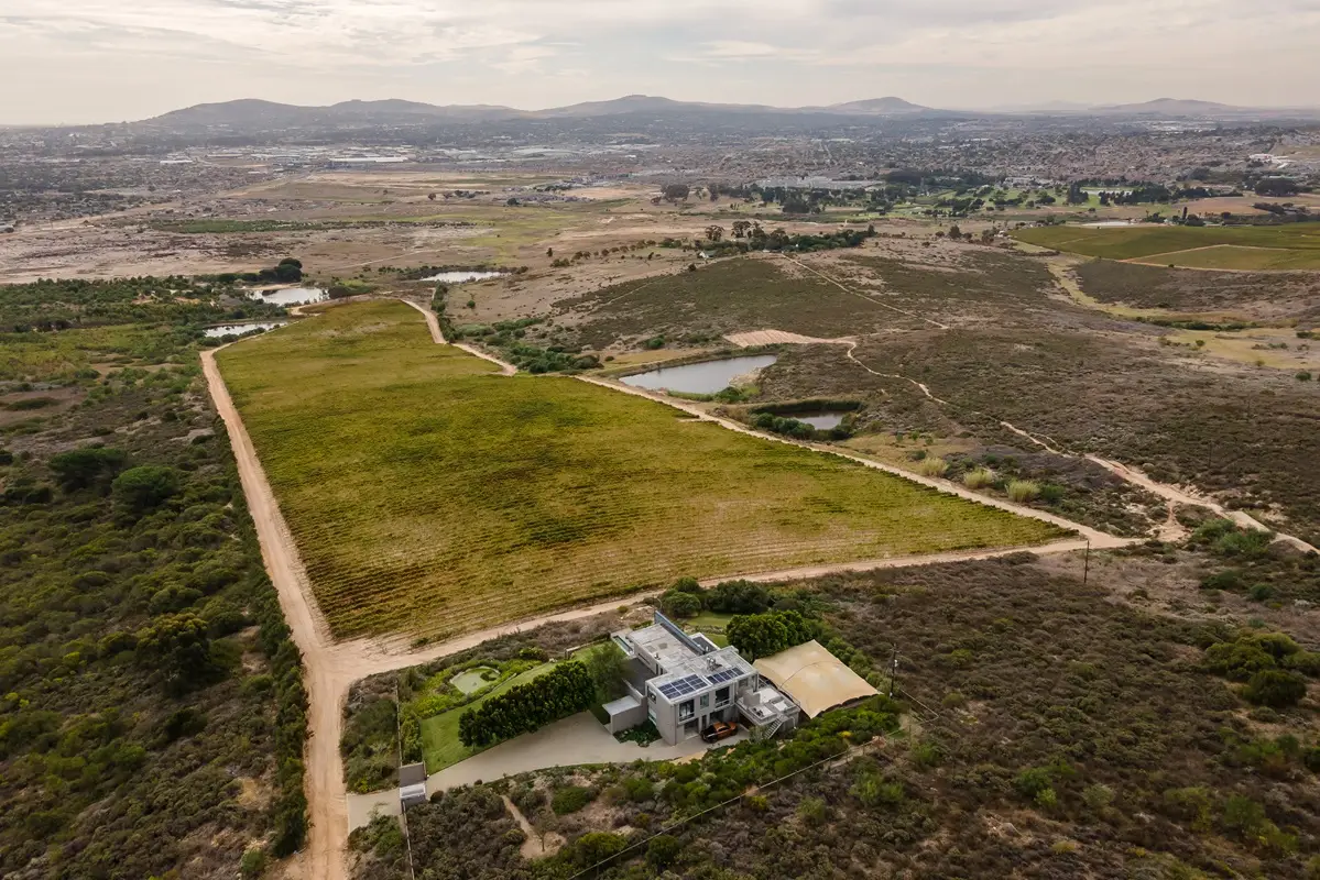 Situated on the urban edge of Stellenbosch, this property borders the Bottelary Hills Conservancy: 106 hectares of Potential Awaits you. Bottelary Hills is known as the sub region of Stellenbosch. Live the dream of the Winelands: This exceptional property offers an unique opportunity to own an expansive piece of land. Nestled on a hill, this agricultural zoned land boasts private, peaceful living with abundant possibilities, and a touch of luxury living. Vineyard Escape: Immerse yourself in the world-renowned Stellenbosch wine region. 10 hectares of established Shiraz vines grace the property, offering the potential to continue the legacy or explore new grape varietals. Envision rows of plump grapes ripening under the warm South African sun, ready to be transformed into exquisite wines. Luxury Living with a View: Ascend the gentle slopes and discover a masterpiece designed by WP Bosch. This sprawling 497 square meter, three bedroom residence defines sophisticated living. All bedrooms boast luxurious ensuite bathrooms, providing a private sanctuary for you and your guests. Imagine unwinding on the spacious entertainment area, soaking in the breath-taking sunsets as the iconic Table. Mountain paints the horizon with fiery hues. Sustainable Sanctuary: This forward-thinking property embraces sustainability principles with its off-the-grid design. Live lightly on the land while enjoying the ultimate in modern comforts. Endless Potential: Invest in the future and explore the rezoning possibilities. The vast expanse of land offers a blank canvas for development projects, catering to the ever-growing demand in Stellenbosch. Alternatively, expand the existing vineyard, solidifying your position within the prestigious Stellenbosch wine industry.