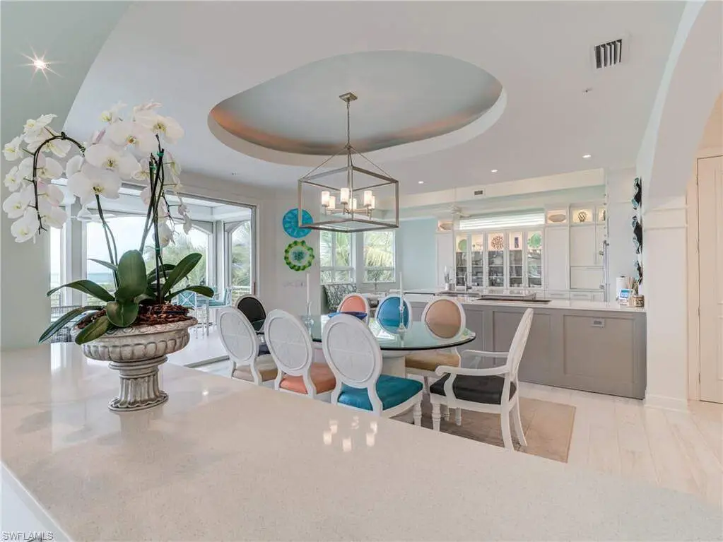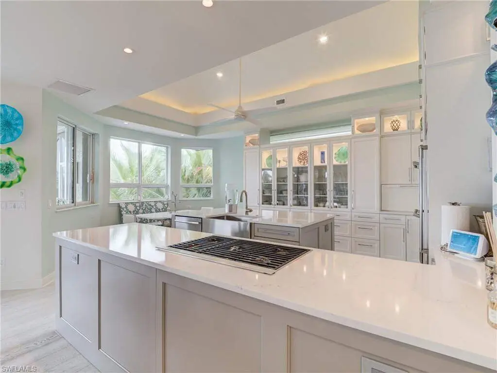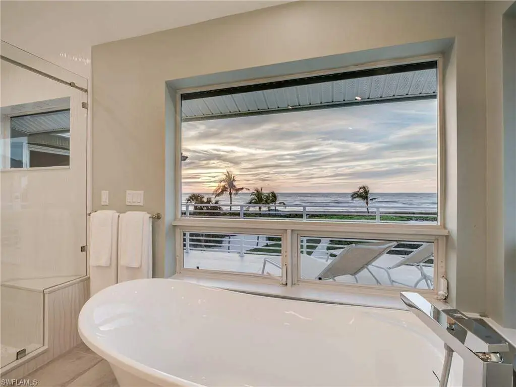 This meticulously refined Gulf-front estate embodies the essence of tropical luxury-where timeless craftsmanship meets modern elegance. Thoughtfully enhanced over time, SOUTH HAVEN blends comfort, sophistication, and functionality at every turn. Recent updates include a redesigned kitchen and dining area, a reimagined primary bath, and a new roof (2023), along with premium finishes and fixtures throughout. The main level welcomes you with a sun-filled foyer leading to multiple guest suites, including a dual guest wing for added privacy. The chef-inspired kitchen combines contemporary design with coastal warmth, opening to a bright dining alcove ideal for gatherings. The living room frames uninterrupted Gulf views, creating a serene backdrop for every moment. Upstairs, the owner's suite commands sweeping ocean vistas and features a stone-clad electric fireplace, woven flooring, and a tranquil, spa-like ambiance. The ground level includes a spacious garage, flexible-use spaces, and elevator access to all floors for effortless convenience. Outdoors, the estate is graced by towering Royal Palms, a resort-style pool with sun shelf, and covered lounging and dining areas designed for relaxed entertaining. Beyond the pool, a private beachside yard with manicured greens, a seaside walkway, and a charming shorefront cabana completes the coastal experience. From its refined architecture to its breathtaking sunsets, South Haven stands as a true Captiva masterpiece-where every detail celebrates the art of island living.