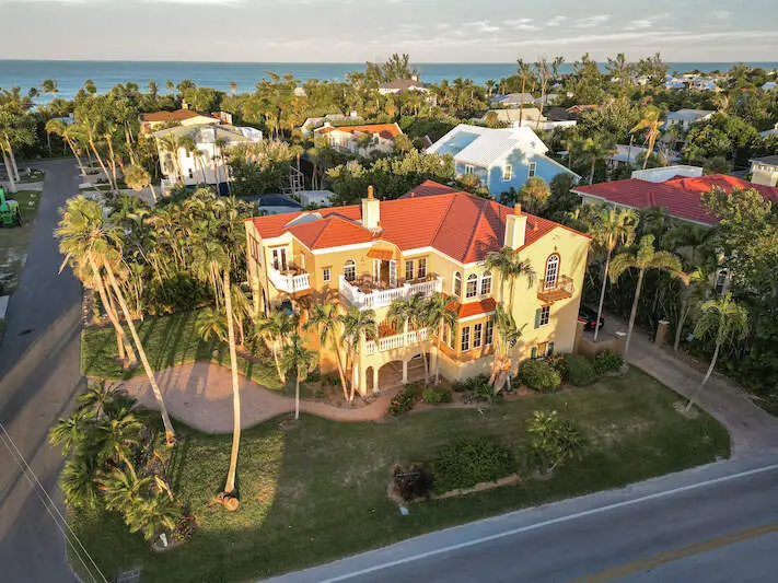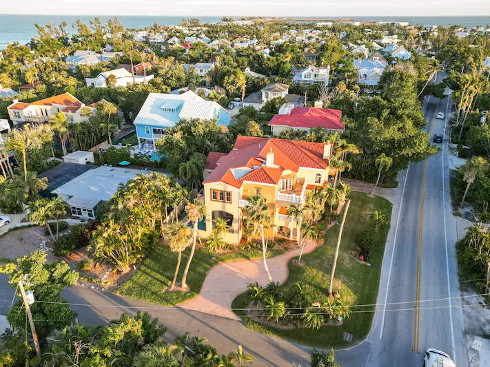 Experience the charm of Sandcastle, a stunning coastal estate with a unique reverse floor plan. This impressive 6-bedroom + den, 6.5-bath residence spans over 4,800 square feet, offering breathtaking bay views from its multi-level decks. Designed in Coastal Tuscan style, the home features luxurious touches throughout, including travertine floors in the living areas, wood floors in the bedrooms, and soaring 10-plus-foot ceilings with elegant crown molding. The spacious layout boasts multiple living rooms, en-suite bedrooms, an elevator, a morning kitchen, and a private in-law suite. The chef's kitchen is a culinary dream, featuring a gas stove, stainless steel appliances, granite countertops with a breakfast bar, a walk-in pantry, custom wood cabinetry, an oversized sink, and a dedicated bar area. Enjoy the #IslandLifestyle with your private pool and spa, multiple covered and open patios, or a short walk to the beach. Sandcastle is conveniently located near the Village, renowned restaurants, and plenty of shopping, offering everything you need to embrace the #CaptivaLifestyle.