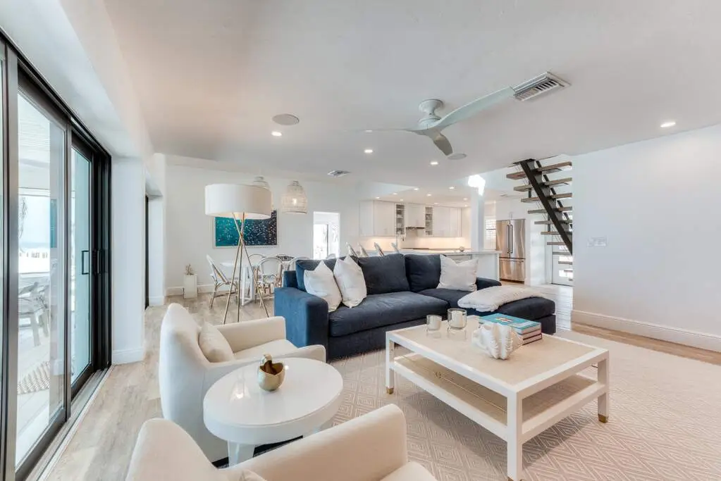Experience unparalleled luxury and coastal elegance at 19 Beach Homes, a stunning direct Gulf-front, elevated, 3 Bedroom + Den, 3 Bathroom residence situated within on the coastline of Captiva. Completely redesigned and renovated in 2022, this breathtaking home offers top-of-the-line finishes and modern upgrades that blend seamlessly with the serene, natural beauty of its beachfront setting. Step inside to discover an open-concept living space adorned with luxury vinyl flooring, setting the tone for both durability and sophisticated charm. The custom floating staircase serves as a striking architectural centerpiece, enhancing the home's modern aesthetic while maximizing space and light. Designed for both style and functionality, the kitchen boasts custom wood cabinetry, thick quartz cabinetry, high-end stainless steel appliances, and a gas cooktop...Gulf-front cooking at its finest! The coastal-inspired furnishings create a relaxed yet refined atmosphere, perfectly complementing the breathtaking views from nearly every room. Expansive impact-resistant windows flood the home with natural light while providing peace of mind and energy efficiency. Step outside onto the composite decking, where you can unwind and take in the gentle sea breeze or enjoy direct beach access just steps away. Nestled inside the gated South Seas Resort, this exceptional property offers unmatched privacy and access to pristine Florida beaches. Whether you're looking for a serene retreat or a luxurious investment opportunity, 19 Beach Homes is a rare gem that perfectly captures the essence of Gulf-front living on Captiva Island.