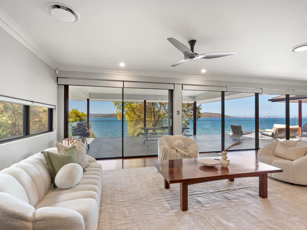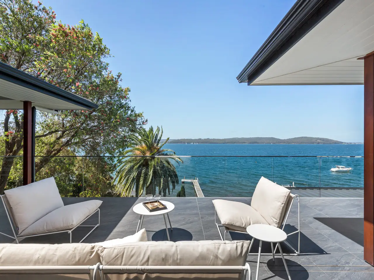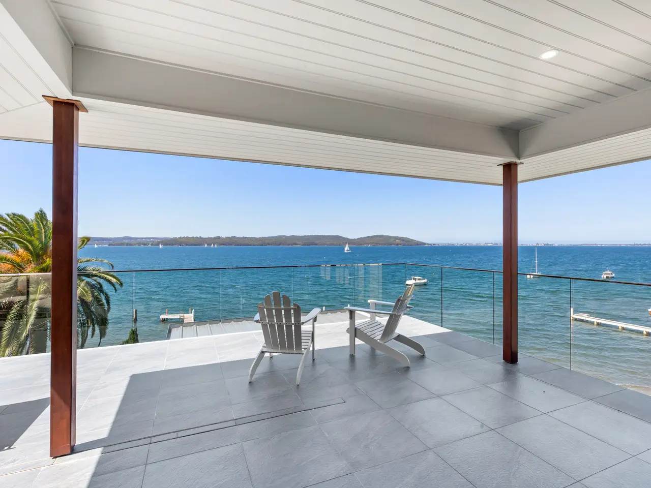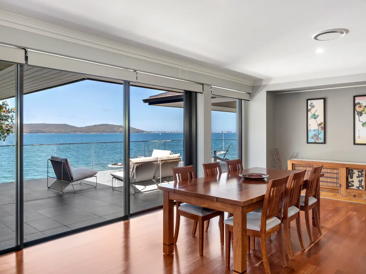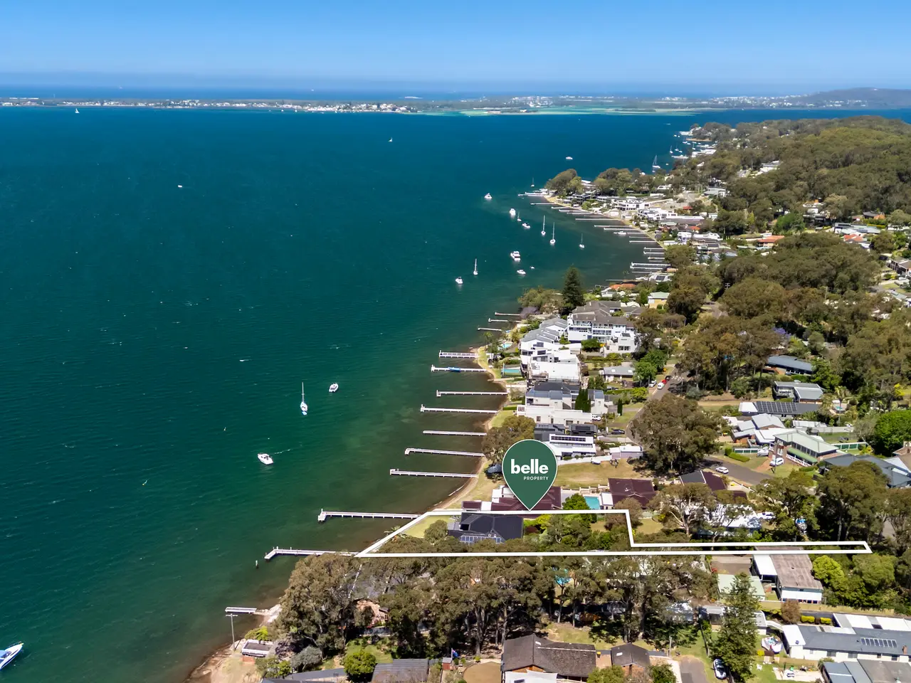 Privately positioned on absolute lakefront, the sensational Shougetsu House delivers exceptional everyday comfort over two expansive, elegantly appointed levels, delivering breathtaking 180-degree water views and effortless access to the lake with a private deep-water jetty. Within this serene oasis of privacy, life on the lake is a dream you will love to wake up to every single day. Throughout the home luxurious design, premium additions and thoughtful touches accentuate every space, filling you with calming energy as you go about your day. Much more than just a home, it's also a lifestyle. Surrounded by birdlife, it provides the perfect spot to watch the lorikeets feed as you drink your morning coffee, or catch the cormorants diving for their dinner as you unwind with a drink in hand, watching the skies change at sunset. On Christmas Eve, kids can watch Santa pass by at the end of the jetty, or catch the illuminated delights of Float Your Boat come winter. Whether you're watching the yachts race, powerboats roar, or shougetsu – the moon rising into the sky – over Belmont or Green Point, this is where you make those memories. With both balconies looking out over the lake, the home is fabulous for entertaining. The designer kitchen is another highlight, complete with butler's pantry and easy flow to the gorgeous Japanese gardens. Over winter, the rotating wood fireplace will keep you cosy in the open-plan, while downstairs, movie nights are sure to be a favourite. With a fully equipped workshop with an abundance of storage and temperature-controlled wine cellar also on this level, it's a home that really does have every box ticked. As for sleep space, the master is another standout, featuring Japanese shoji and fusuma sliding doors in the walk-in robe, and an onsen-style bathroom looking out over the gardens. Two further bedrooms complete the layout, where there are far too many other excellent additions to mention here. This is one property you absolutely need to see in person to truly appreciate, so call today and arrange your inspection. - Northeast facing 1,881sqm. battleaxe block with panoramic lake views - Beautiful red mahogany floors and refined neutrals enhance the simplicity of Japanese style - Commercial-grade windows frame stunning lake vista, heavy insulation throughout - Light-filled open-plan with high-quality Belgian rotating wood fireplace and stacker doors to balcony - Designer kitchen boasts stone counters, huge island, butler's pantry and premium appliances inc. Smeg six-burner gas stove and 900mm oven, plus an integrated pantry trolley allows you to transport food and drink through the home - Bi-fold doors lead to further alfresco living and established Japanese gardens - Master offers deck access, walk-in robe with Japanese screens, luxurious ensuite with dual vanity, freestanding tub and walk-in rainhead shower overlooking Japanese gardens - Lower-level media room with remote-controlled black-out curtains, projector screen and seven-speaker surround-sound - Stunning gardens front and back featuring auto irrigation and 90,000L onsite watering storage - 28-metre lake frontage, boathouse with slipway, private jetty, deep-water mooring - Workshop and temperature-controlled wine cellar with storage for more than 1,000 bottles - Ducted AC upstairs, split-system AC downstairs - Fully automated custom sheer and blockout blinds to all windows - Gallery picture hanging system throughout allows you to move and hang pictures with no holes - Sonos sound system throughout home, integrated smart home controls music, lights, curtains, media, fans, security, gate and garage door - Six-person lift and extra-wide wheelchair accessible doors throughout - 6kW solar panel and 15kW battery system - Five toilets throughout the home, inc. one in boat shed - Security: gated entry with intercom, Paradox alarm system, security cameras, sensor lights, wired smoke alarms - Tiled triple garage at end of long driveway offers privacy with auto gate We have obtained all information used in the preparation of this document from third party sources however, we cannot guarantee the accuracy or currency of this information. Prospective purchasers and their advisors are advised to carry out and rely on their own enquiries and investigations in relation to the information in this document and the property it concerns.