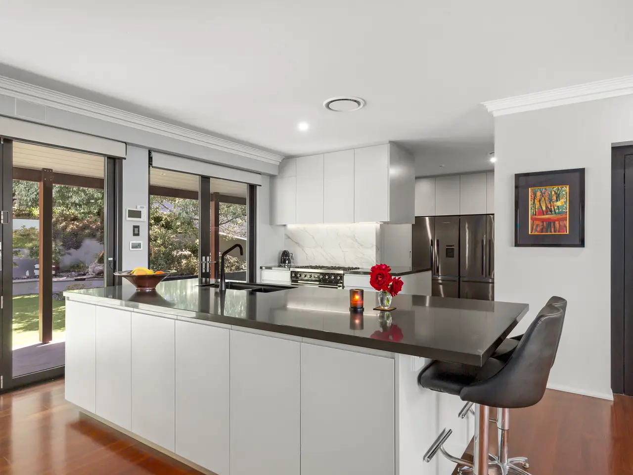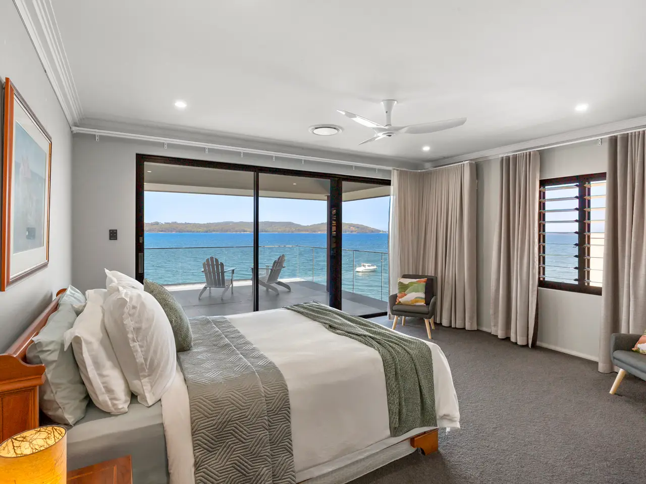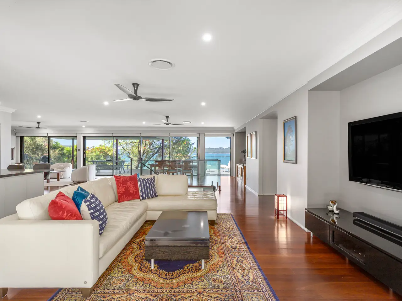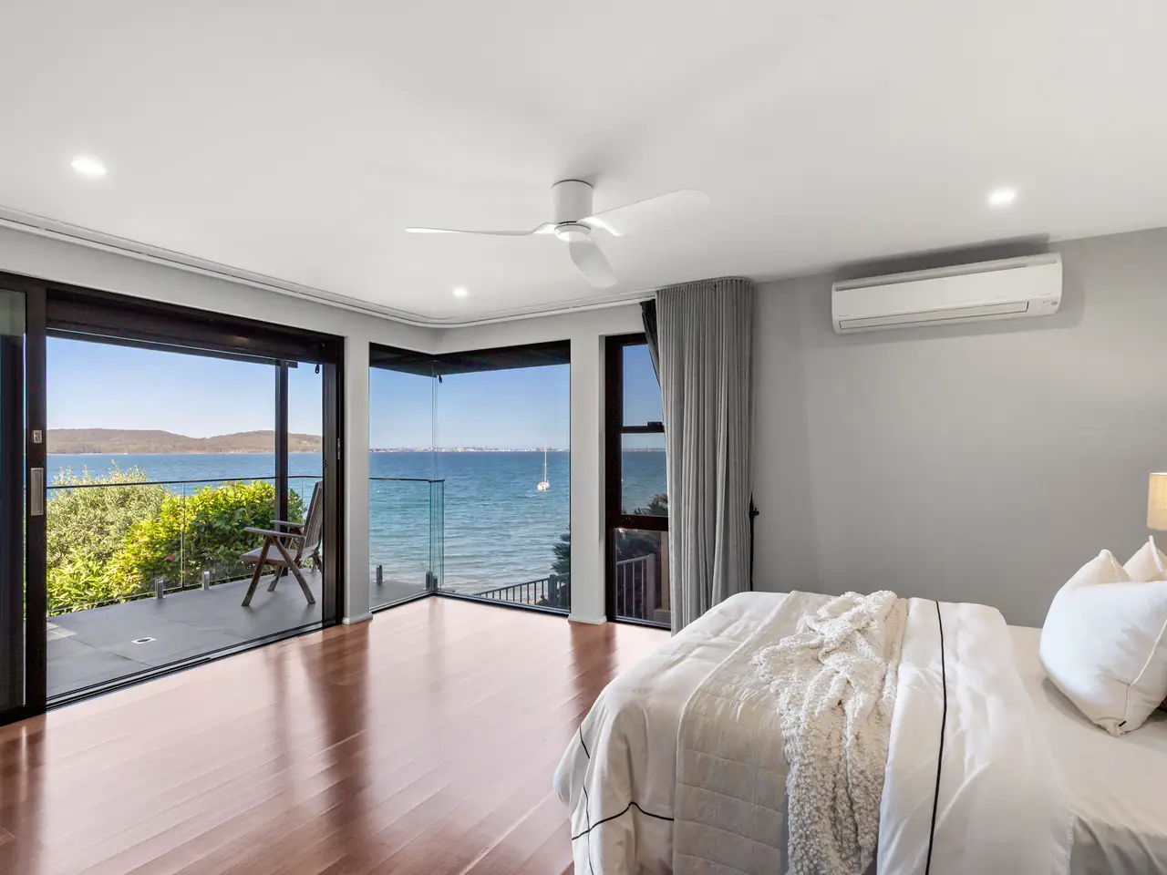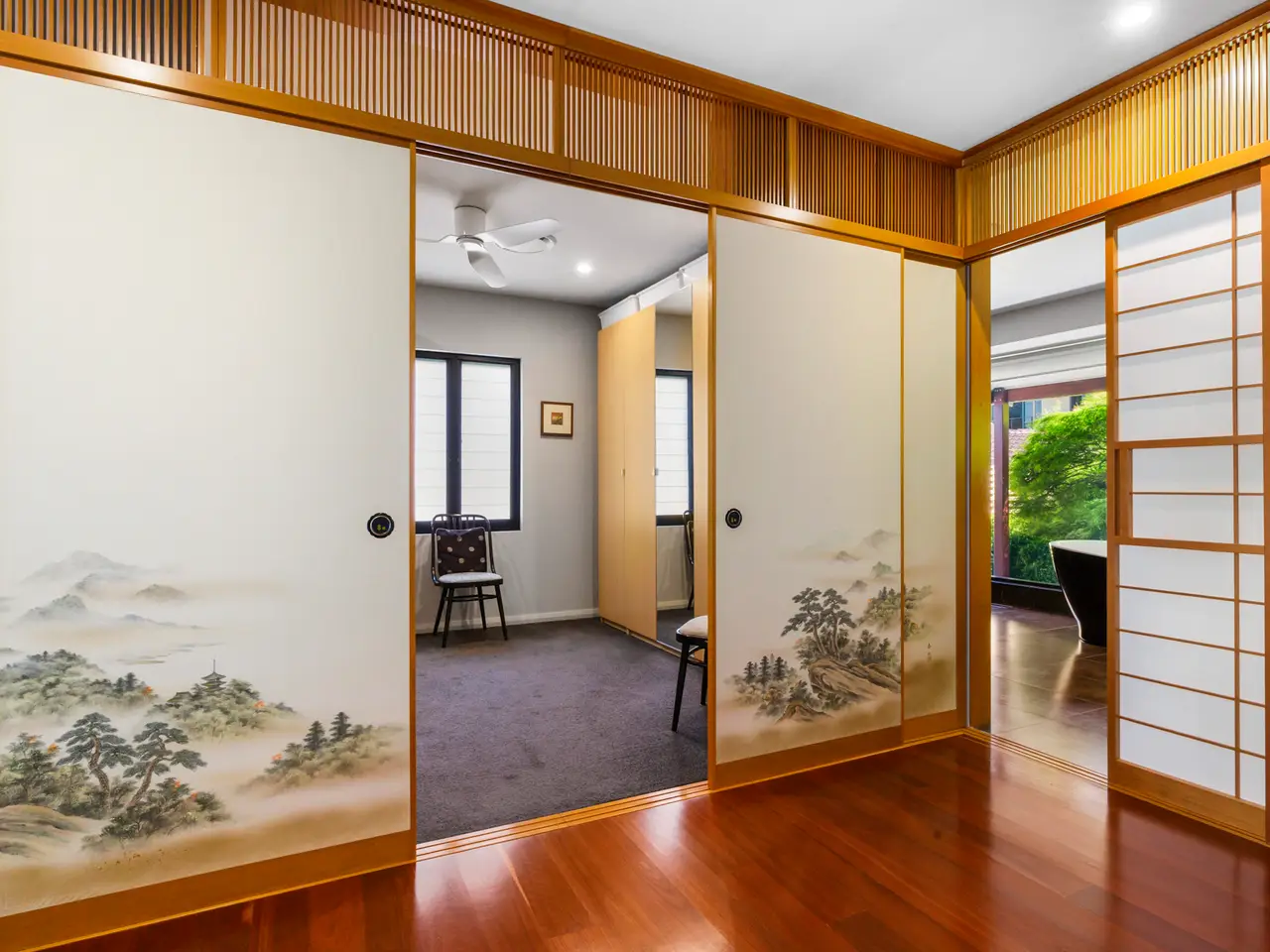 Privately positioned on absolute lakefront, the sensational Shougetsu House delivers exceptional everyday comfort over two expansive, elegantly appointed levels, delivering breathtaking 180-degree water views and effortless access to the lake with a private deep-water jetty. Within this serene oasis of privacy, life on the lake is a dream you will love to wake up to every single day. Throughout the home luxurious design, premium additions and thoughtful touches accentuate every space, filling you with calming energy as you go about your day. Much more than just a home, it's also a lifestyle. Surrounded by birdlife, it provides the perfect spot to watch the lorikeets feed as you drink your morning coffee, or catch the cormorants diving for their dinner as you unwind with a drink in hand, watching the skies change at sunset. On Christmas Eve, kids can watch Santa pass by at the end of the jetty, or catch the illuminated delights of Float Your Boat come winter. Whether you're watching the yachts race, powerboats roar, or shougetsu – the moon rising into the sky – over Belmont or Green Point, this is where you make those memories. With both balconies looking out over the lake, the home is fabulous for entertaining. The designer kitchen is another highlight, complete with butler's pantry and easy flow to the gorgeous Japanese gardens. Over winter, the rotating wood fireplace will keep you cosy in the open-plan, while downstairs, movie nights are sure to be a favourite. With a fully equipped workshop with an abundance of storage and temperature-controlled wine cellar also on this level, it's a home that really does have every box ticked. As for sleep space, the master is another standout, featuring Japanese shoji and fusuma sliding doors in the walk-in robe, and an onsen-style bathroom looking out over the gardens. Two further bedrooms complete the layout, where there are far too many other excellent additions to mention here. This is one property you absolutely need to see in person to truly appreciate, so call today and arrange your inspection. - Northeast facing 1,881sqm. battleaxe block with panoramic lake views - Beautiful red mahogany floors and refined neutrals enhance the simplicity of Japanese style - Commercial-grade windows frame stunning lake vista, heavy insulation throughout - Light-filled open-plan with high-quality Belgian rotating wood fireplace and stacker doors to balcony - Designer kitchen boasts stone counters, huge island, butler's pantry and premium appliances inc. Smeg six-burner gas stove and 900mm oven, plus an integrated pantry trolley allows you to transport food and drink through the home - Bi-fold doors lead to further alfresco living and established Japanese gardens - Master offers deck access, walk-in robe with Japanese screens, luxurious ensuite with dual vanity, freestanding tub and walk-in rainhead shower overlooking Japanese gardens - Lower-level media room with remote-controlled black-out curtains, projector screen and seven-speaker surround-sound - Stunning gardens front and back featuring auto irrigation and 90,000L onsite watering storage - 28-metre lake frontage, boathouse with slipway, private jetty, deep-water mooring - Workshop and temperature-controlled wine cellar with storage for more than 1,000 bottles - Ducted AC upstairs, split-system AC downstairs - Fully automated custom sheer and blockout blinds to all windows - Gallery picture hanging system throughout allows you to move and hang pictures with no holes - Sonos sound system throughout home, integrated smart home controls music, lights, curtains, media, fans, security, gate and garage door - Six-person lift and extra-wide wheelchair accessible doors throughout - 6kW solar panel and 15kW battery system - Five toilets throughout the home, inc. one in boat shed - Security: gated entry with intercom, Paradox alarm system, security cameras, sensor lights, wired smoke alarms - Tiled triple garage at end of long driveway offers privacy with auto gate We have obtained all information used in the preparation of this document from third party sources however, we cannot guarantee the accuracy or currency of this information. Prospective purchasers and their advisors are advised to carry out and rely on their own enquiries and investigations in relation to the information in this document and the property it concerns.