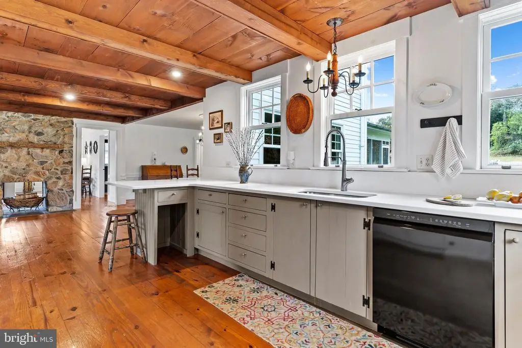 A picturesque long driveway highlighted by beautiful, mature sugar maple trees paves the way to this stunning home, formerly showcased in Country Living magazine. You're guaranteed to appreciate this beautifully designed modern Colonial, nestled upon 5 acres of serene countryside. Custom-built in 2003, this home blends timeless craftsmanship with current, and recent modern finishes throughout. Reclaimed, random-width pine flooring salvaged from a historic Connecticut barn, pairs seamlessly with painted knotty pine trim and woodwork and many period-inspired fixtures. The centerpiece of this home features a fantastic Kitchen and Dining Room, with solid wood cabinetry with inlaid doors, brand new quartz counters, and nearly brand new black stainless steel Refrigerator, Dishwasher, built-in Wall Oven, Cooktop, and deep, stainless steel country sink, all contiguous through a beautiful beamed ceiling. Adjacent keeping room with built-in cabinets and pantry with aesthetic double-sided wood burning fireplace, constructed with stone from the property. Fluid entertaining in the grand Dining Room, with chandelier and northern facing wall of windows. The Formal Living Room is a wonderful space to relax in abundant natural light, with mantle and built-in cabinets. Foyer and Entryway provide passage to the den or office to provide a flex space for homeowners. Spacious First Floor half bath and Mudroom with utility sink and shelving, too. Two options to access the comfortable 2nd floor with brand new Stainmaster carpet in all four Bedrooms, including the private Primary Bedroom with faux brick fireplace, walk-in closet and built-in drawers, complete with en-suite bath highlighted by double vanities, jetted soaking tub, and shower. The additional Bedrooms offer generous spaces, one with a wall of built-in cabinets and desk, and plenty of windows for light, complimented by a guest Bath with shower/tub combo and custom vanity. The convenient second floor laundry room with utility sink and folding table also provides pull down access to attic for additional storage. Enjoy company in the finished Lower Level, complete with a fantastic wet bar adjacent to the Family Room which is wired for sound, and Bonus area which provides a wonderful option for in-home fitness. The 5th Bedroom offers privacy for guests or the perfect space for the craftsperson with adjacent bath. A show-stopping screened in porch with brick floor, beadboard ceiling, and double fans provides a relaxing space and leads to the beautiful 20x40 foot in-ground concrete and slate pool with white picket fence - brand new pool pump and filter installed in June of 2025. The detached 3-bay Garage with 2nd story for additional storage has elevated space for larger vehicles or project cars. This property is complete with a new Atlas Signature Select roof on the house and garage, new Rheem Performance Plus Hot Water Heater, geothermal heatpump, water conditioning, sun tunnel skylights, and much much more. All this in Cumberland Valley Schools, Silver Spring Township, and a fantastic location to call home for future homeowners. Don't wait to appreciate all the blends of timeless history and modern elements that this one-of-a kind home has to offer.