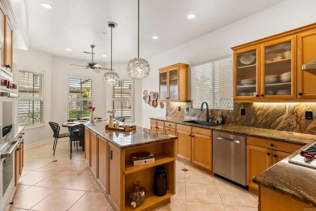Welcome to this beautifully upgraded 4-bedroom, 2.5-bath single-family home located in the exclusive gated community of Cristalla, just 2 miles from the beach in Carlsbad’s prestigious Aviara neighborhood. With 2,632 sq ft of thoughtfully designed living space, this home offers the perfect blend of sophistication, comfort, and easy coastal living. The primary suite is conveniently located on the main floor. It features a recently remodeled spa-inspired shower and private patio access, creating a peaceful retreat. At the heart of the home is a gourmet kitchen outfitted with premium appliances, including a Wolf gas cooktop, Wolf double ovens, and a Dacor refrigerator and microwave, ideal for entertaining and everyday cooking. The upper level features three spacious bedrooms and a full bath, offering flexibility for family, guests, or home office needs. Step outside to a serene, low-maintenance backyard, beautifully landscaped with lush plants and tur, perfect for relaxing or dining al fresco. A 2-car garage completes the package, providing ample storage and convenience. Enjoy the privacy and security of a gated community, just minutes from top-rated schools, scenic trails, golf, shopping, dining, and Carlsbad’s stunning coastline.