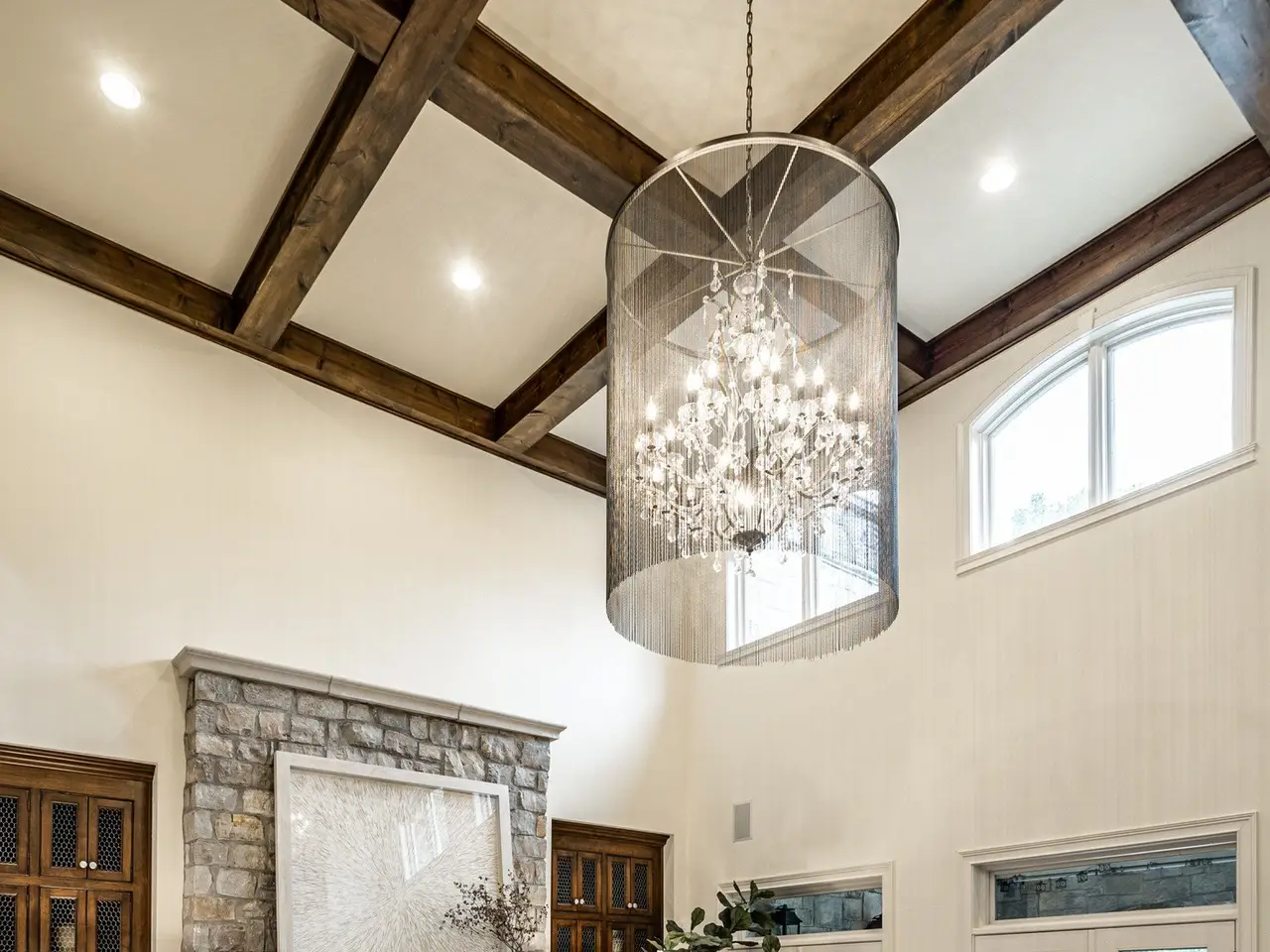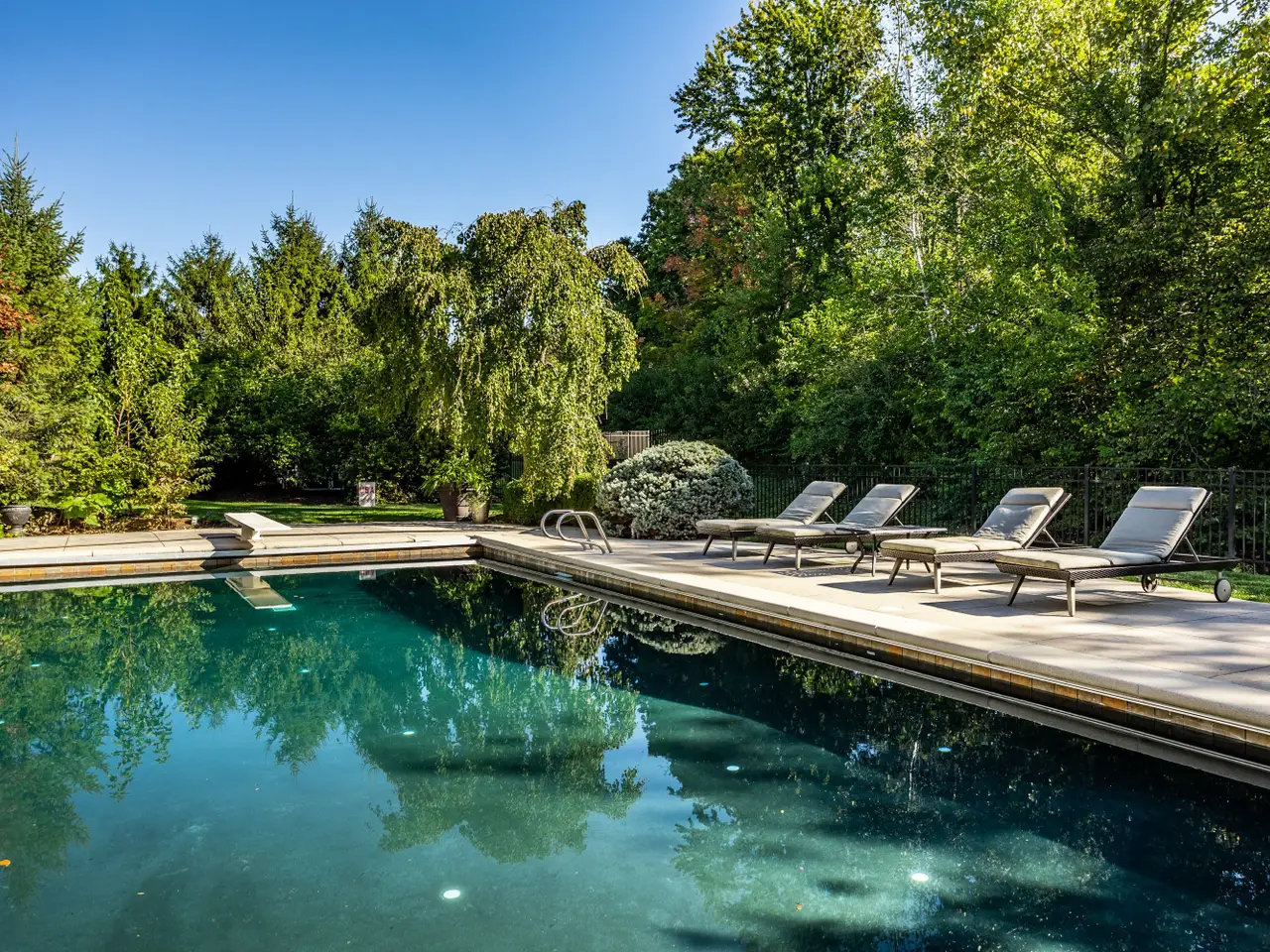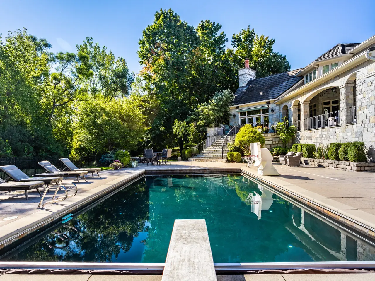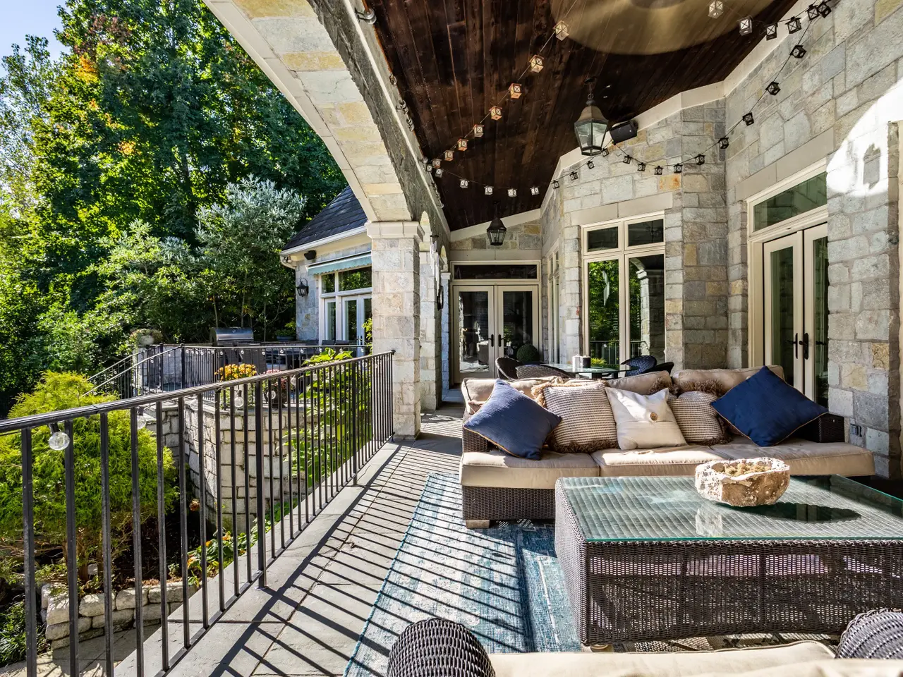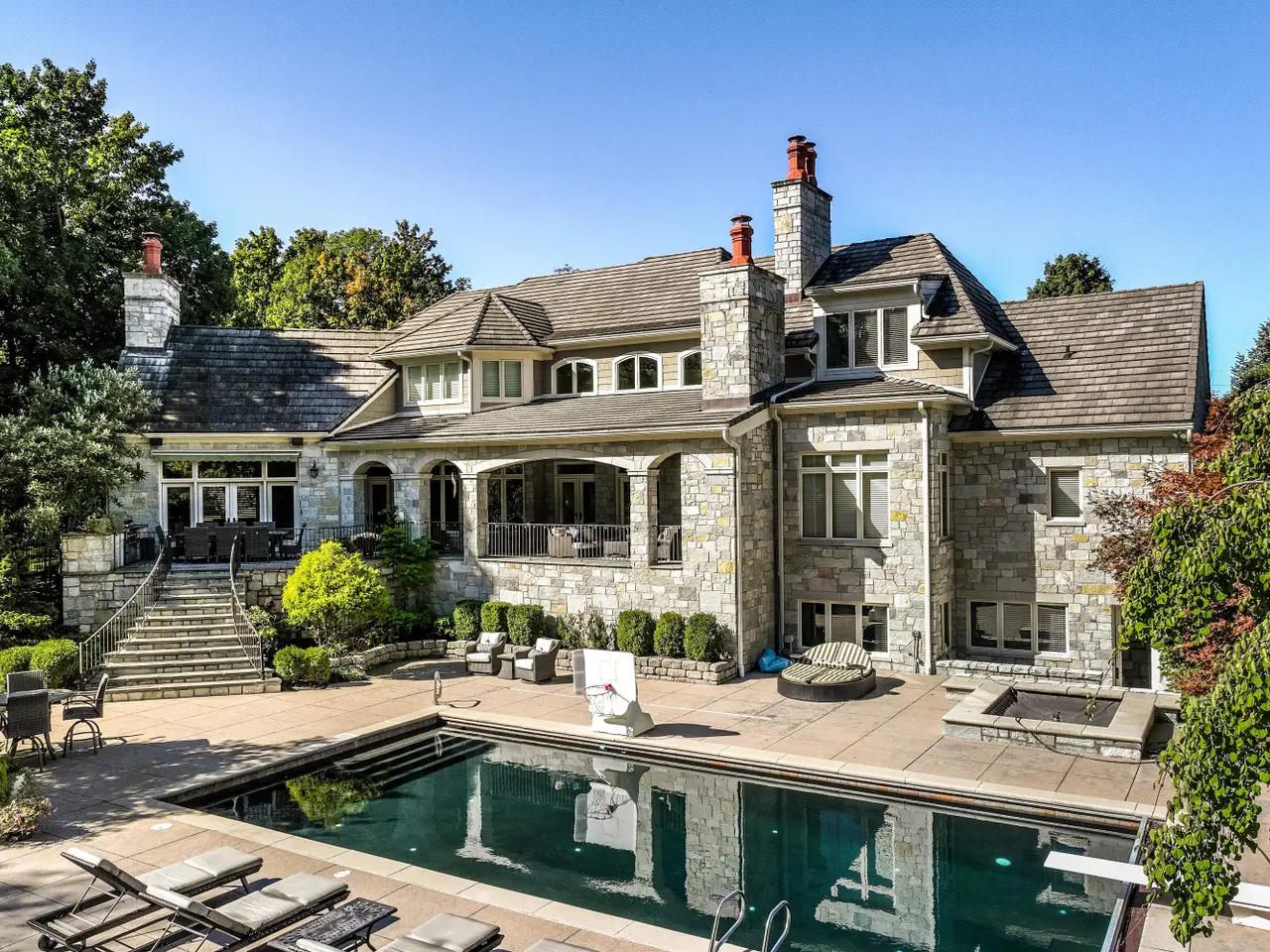 Beautifully situated on a private, lush, 2-acre fenced lot, this stunning estate offers an unparalleled lifestyle. Outdoor living is a true retreat with a 40x20 gunite pool, hot tub, and expansive veranda with fireplace and grilling center, perfect for entertaining or relaxing in privacy. Yard has ample room for tennis court or pickleball court! Inside, guests are greeted by a soaring great room with 20-foot ceiling and a stone fireplace flanked by built-ins. The world-class chef's kitchen is a true centerpiece, featuring Wolf and Sub-Zero appliances, a pizza oven, a Miele coffee center, and an office nook conveniently tucked away behind the kitchen. The adjoining family room showcases an exposed truss ceiling and beautiful stone fireplace, as well as direct access to the outdoor living spaces. The main-floor primary suite is an elegant retreat with a spa-inspired bathroom and veranda access, creating a luxurious and serene sanctuary. Upstairs hosts five spacious bedrooms with four beautifully remodeled bathrooms. The walk-out lower level is an entertainer's paradise offering every amenity imaginable including a theatre area, 24x20 built-in bar with beverage cooler and beer tap, billiard area, wine cellar, double-sided fireplace, exercise room, and home office. Completing this impressive residence is a generous 4-car garage with raised ceiling for half-court basketball.