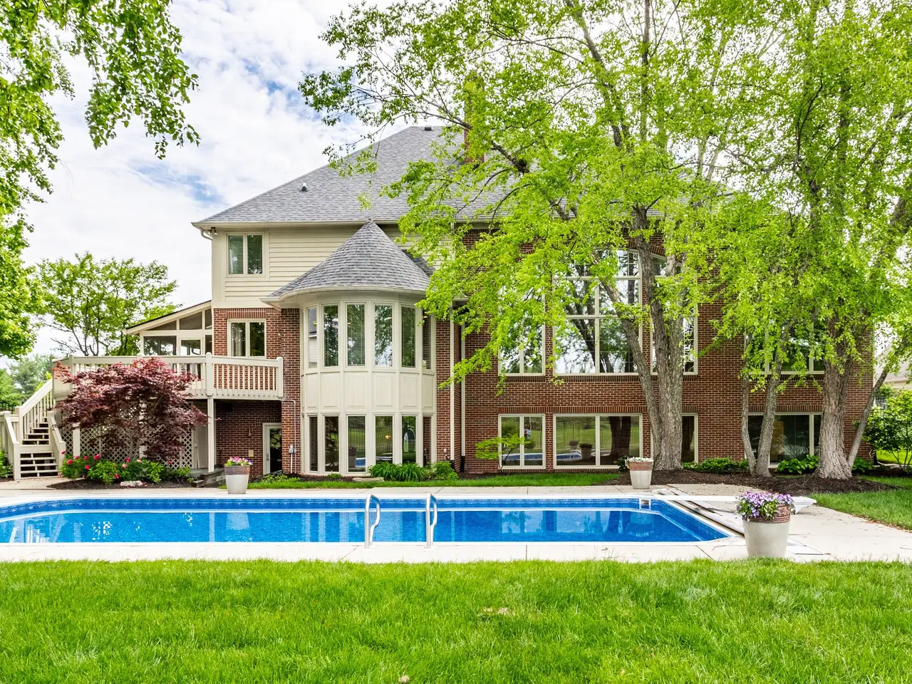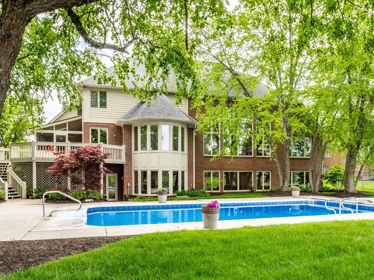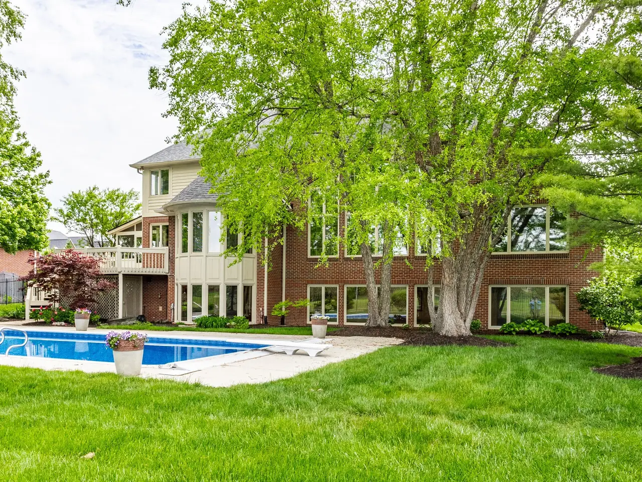 Situated on a premier water-view lot overlooking the pond and fountain inside the gates of prestigious Windermere in Carmel, this expansive custom home offers both luxury and versatility. From the moment you enter, you'll notice the attention to detail and fine finishes, from gleaming hardwood floors to beautiful crown moldings. The two-story great room is filled with natural light from a wall of windows and warmed by a two-sided gas fireplace, shared with the cozy hearth room. The kitchen is well equipped for any chef, featuring a center island, ample counter and cabinet space, and a breakfast room overlooking the pond and fountain, with access to the deck and screened porch. A formal dining room provides additional entertaining space. The main-floor primary suite is a serene retreat with vaulted ceilings, a relaxing ensuite bath, and a custom walk-in closet. Upstairs, three spacious bedrooms each include an ensuite bath and a walk-in closet. The walk-out lower level is designed for both fun and function, featuring a large family room with a wood-burning fireplace, a rec room equipped with a billiards table and a wet bar, guest quarters, an exercise room, a bonus/storage room, and an additional full bath that serves the pool. Accessibility is a highlight. The home offers elevator access and handicap-friendly features, including garage and pool area ramps. Outside, the fully fenced rear yard is complete with green space and a pool featuring a new liner and cover. This one-of-a-kind home blends timeless craftsmanship with thoughtful updates, all in an exclusive gated community on one of Windermere's most desirable water-view lots overlooking the pond and fountain.