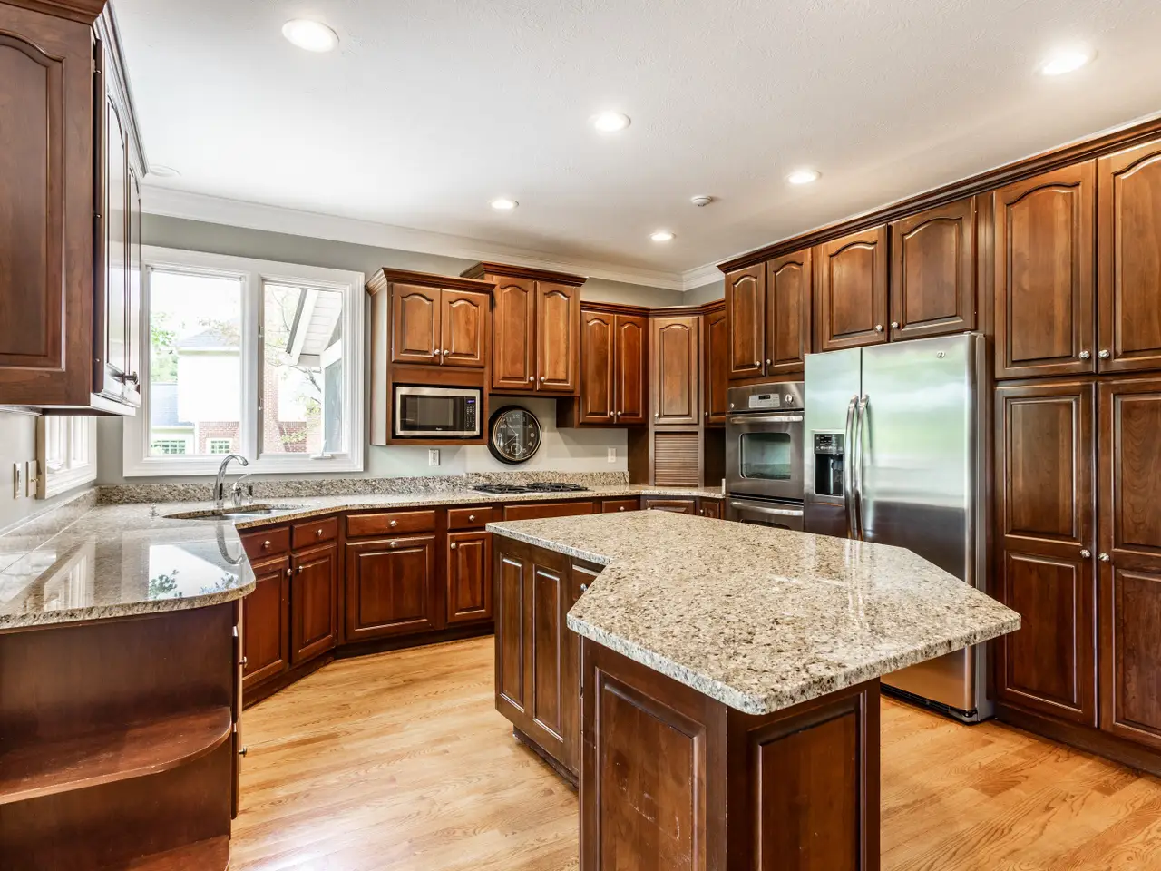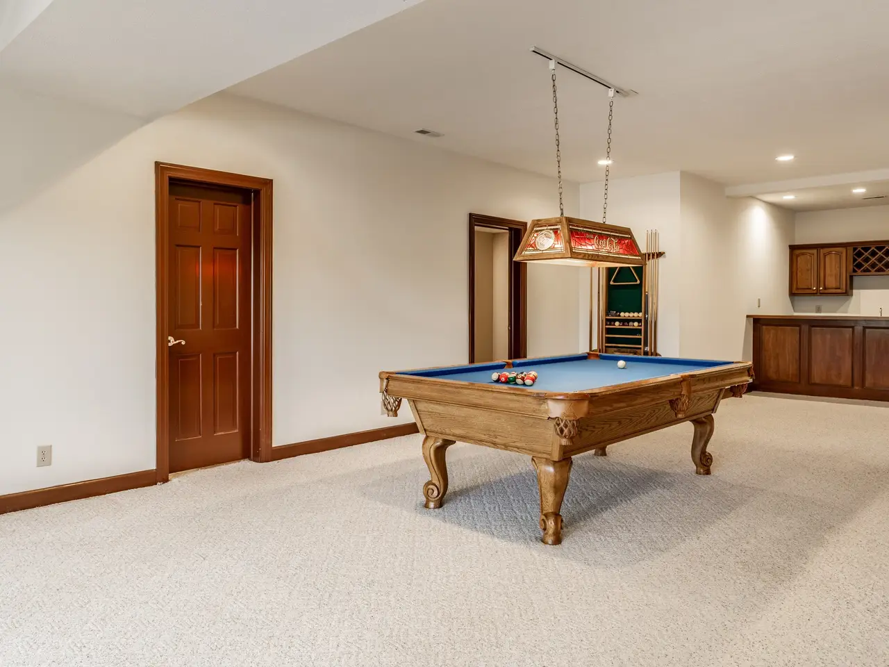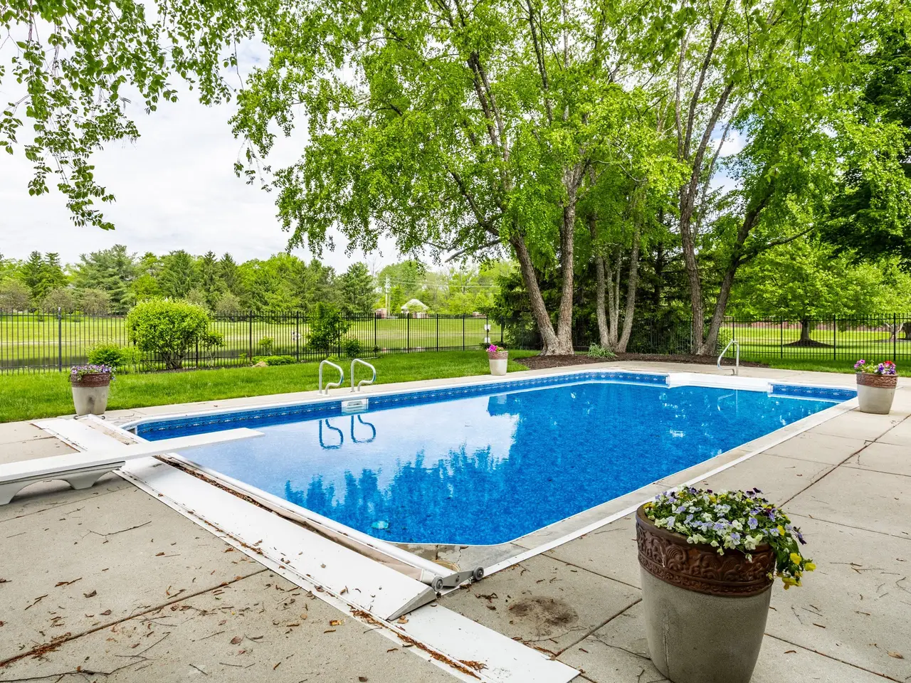 Situated on a premier water-view lot overlooking the pond and fountain inside the gates of prestigious Windermere in Carmel, this expansive custom home offers both luxury and versatility. From the moment you enter, you'll notice the attention to detail and fine finishes, from gleaming hardwood floors to beautiful crown moldings. The two-story great room is filled with natural light from a wall of windows and warmed by a two-sided gas fireplace, shared with the cozy hearth room. The kitchen is well equipped for any chef, featuring a center island, ample counter and cabinet space, and a breakfast room overlooking the pond and fountain, with access to the deck and screened porch. A formal dining room provides additional entertaining space. The main-floor primary suite is a serene retreat with vaulted ceilings, a relaxing ensuite bath, and a custom walk-in closet. Upstairs, three spacious bedrooms each include an ensuite bath and a walk-in closet. The walk-out lower level is designed for both fun and function, featuring a large family room with a wood-burning fireplace, a rec room equipped with a billiards table and a wet bar, guest quarters, an exercise room, a bonus/storage room, and an additional full bath that serves the pool. Accessibility is a highlight. The home offers elevator access and handicap-friendly features, including garage and pool area ramps. Outside, the fully fenced rear yard is complete with green space and a pool featuring a new liner and cover. This one-of-a-kind home blends timeless craftsmanship with thoughtful updates, all in an exclusive gated community on one of Windermere's most desirable water-view lots overlooking the pond and fountain.