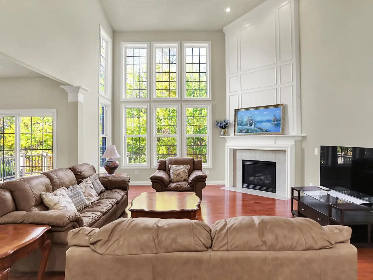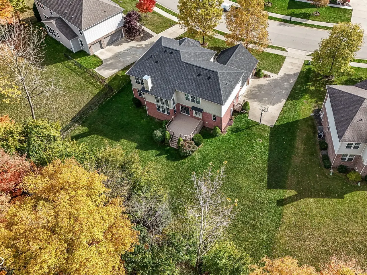 Welcome to this beautifully maintained one-owner home in highly sought-after Long Ridge Estates. Situated on one of THE BEST lots in the neighborhood, this 4 bed/4.5 bath home backs to mature woods for privacy and serene natural views. Inside, you'll find solid hardwoods throughout the main level, elegant crown molding, a two-story entry, and a striking two-story great room with a gas fireplace and wall of windows overlooking the wooded setting. The kitchen offers granite countertops, a center island, stainless steel appliances, double oven, 42" cabinets, butler's pantry, and walk-in pantry. The main level also features a formal dining room with wainscoting and a charming bump-out window, a cozy living room, and a private office with French doors. Upstairs, the primary suite is a true retreat with vaulted ceilings, a spa-like bath, and a spacious walk-in closet. Two additional bedrooms share a Jack-and-Jill bath, while the fourth bedroom enjoys its own en-suite bath. The full finished basement offers 9' ceilings, a full bath, and generous space for a home theater, gym, and entertaining. Enjoy peaceful outdoor living on the maintenance-free composite deck, perfect for gatherings or quiet mornings surrounded by nature. BRAND NEW ROOF! New battery backup sump pumps (2024) and New water softener (2021). Residents of Long Ridge Estates enjoy fantastic community amenities, including a pool, playground, basketball and tennis courts, along with access to top-rated Carmel Schools.