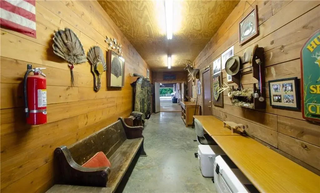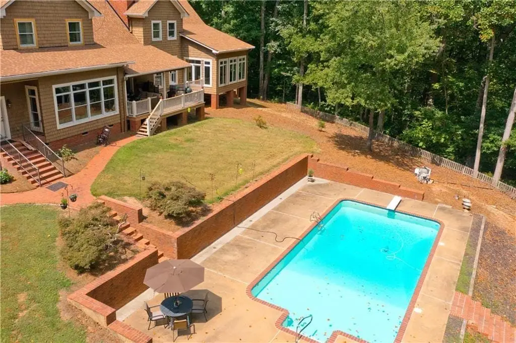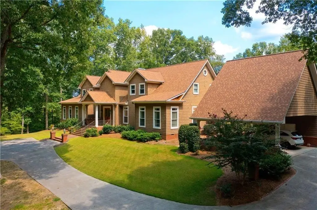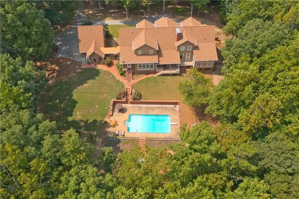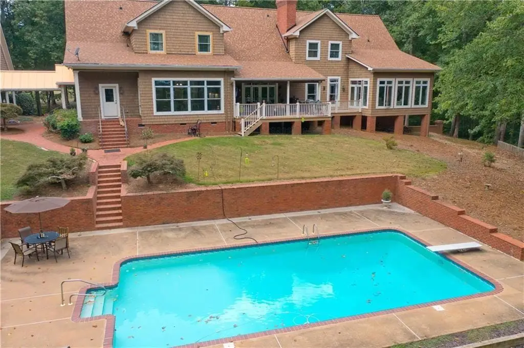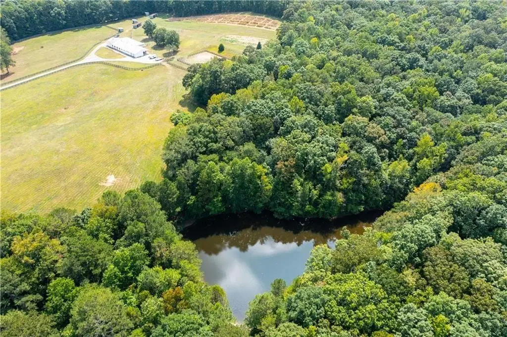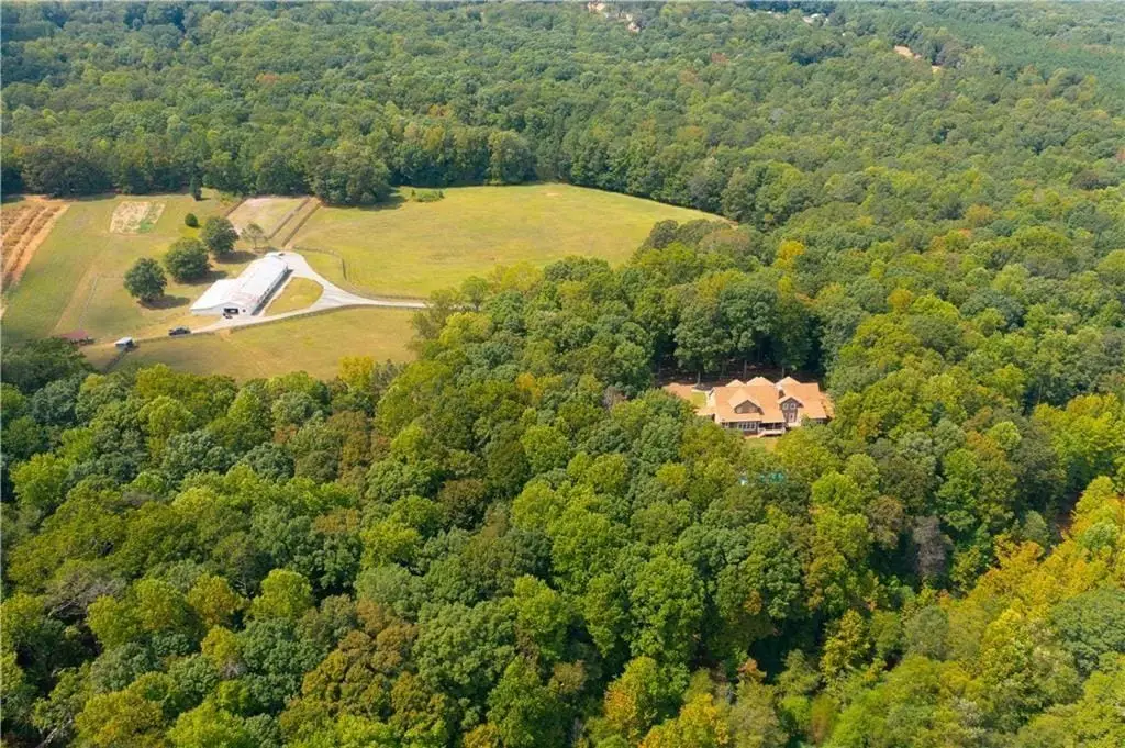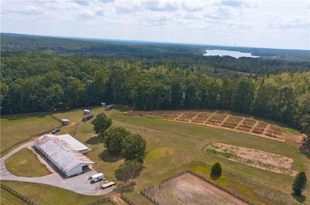 Oak Ridge Farm - A Private Luxury Estate on Lake Seaton. Oak Ridge Farm, a rare and remarkable legacy property blending refined Southern architecture with serene natural beauty. Constructed in 1999 by master builder Stanley Crews, this custom brick and cedar shake estate sits on a sprawling tract of land with over 4/10 mile of shoreline on the 700-acre Lake Seaton Reservoir, just 45 miles west of Atlanta. Crafted with rich textures and natural materials, the 10-foot ceilings, heart pine flooring, and river-recovered cypress front doors set a tone of understated elegance from the moment you enter. A dramatic two-story foyer leads to expansive living spaces, including a family room with floor-to-ceiling windows and built-in bookcases, a library paneled in walnut with a wood-burning fireplace, and a formal dining room adorned with white judges paneling and seating for 12+. The chef’s kitchen is equally impressive, featuring custom walnut-stained cabinetry, granite countertops, Dacor double ovens, 6-burner gas cooktop, warming drawer, Sub-Zero refrigerator, large island, walk-in pantry, and eat-in bar, tile flooring and direct access to a cedar-ceiling deck overlooking the lake, woods, and saltwater pool. The main level also includes a Primary suite with sitting area, sunroom access, and deck access, Luxurious master bath with steam shower, garden tub, dual vanities, and custom walk-in closet, Dedicated home office, mudroom with pecky cypress paneling, library, living room with custom cabinets and fireplace, and two half baths, Zoned HVAC, Pella windows, surround sound system, and 5G Spectrum Internet ,Attached carport with storage and breezeway. The second floor features Two large bedrooms with Jack-and-Jill bath, Third bedroom with private en-suite. Additional office/study/bedroom, Front and back staircases, Cedar-lined closet. The full finished basement includes Custom bar with sink and mini fridge, Wood-burning fireplace, Half bath, Mechanical/storage room, Exterior entrance. Oak Ridge Farm is a sanctuary for both relaxation and recreation: 20 x 40 saltwater pool with bathhouse,8 x 12 private dock on Lake Seaton Reservoir, spring-fed, two-acre stocked pond with bass and bream, 50 acres of mature hardwoods and pines with trails and food plots, rolling pastures, high bluffs, and abundant wildlife: turkey, deer, duck, and dove. The equestrian and farm features Four horse stalls, vet room, office, storage, and half bath, Bedroom and four dog kennels with fenced exercise yard, Two fenced pastures (approx. 10 and 4 acres) with water access, riding ring, BBQ cooking area, firepit. Multiple open sheds for farm equipment. Located 39 miles to Hartsfield-Jackson Atlanta International Airport, 45 miles to Atlanta, 7 miles to Tanner Medical Center and within minutes of shopping and dining. Oak Ridge Farm offers a rare combination of elegant living, private waterfront access, and fully functional equestrian and farming facilities - all in a location that balances convenience and seclusion. Whether you envision it as a full-time residence, weekend retreat, or legacy family estate, this property is truly one-of-a-kind.