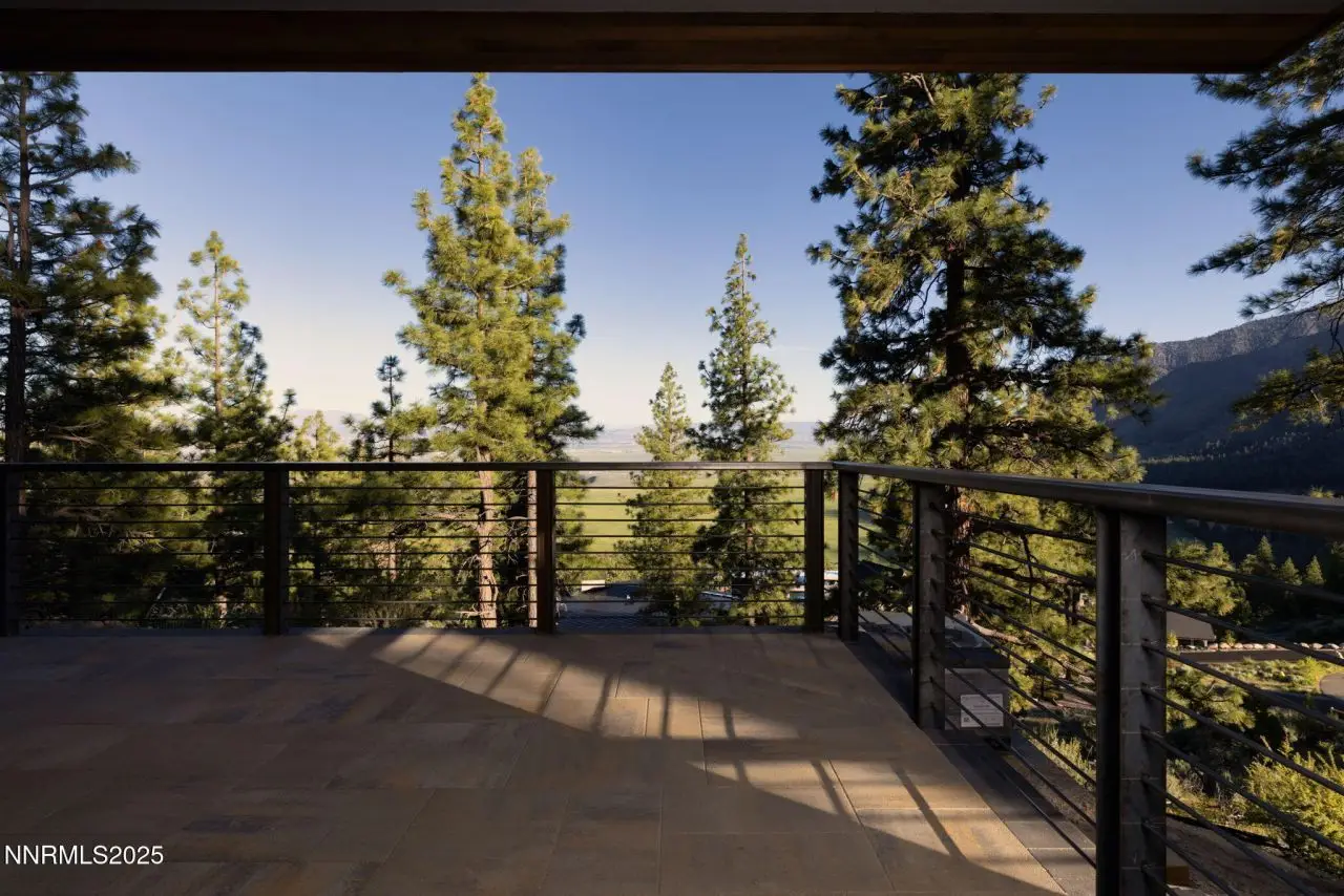 This exceptional property is truly one of a kind. Perched on a knoll high above Carson Valley, it offers breathtaking panoramic views in nearly every direction. Situated on one of Clear Creek Tahoe's premier view lots, the unique shape and topography of the land ensure unparalleled privacy. From the moment you drive along the winding driveway, a profound sense of serenity and seclusion envelops you. The main residence is gracefully positioned at the rear of the property, commanding a dramatic vantage point., The 3,587 square foot mountain contemporary home features an open floor plan and expansive walls of windows that frame the majestic scenery. Designed with feng shui principles in mind, the home showcases clean lines, spacious interiors, and abundant natural light to highlight the beauty of its surroundings. An oversized garage provides ample space for recreational vehicles, boats, or tandem parking. Additionally, the property includes a generous 1,800 square foot guest house, complete with a one-car garage, two bedrooms, a large living area, and a deck. Perfect for long-term guests, caretakers, or a tranquil workspace away from the main residence. At Clear Creek Tahoe, their vision is bringing together physical amenities creating a stage for a magnificent life experience. The nationally acclaimed golf course is fully mature and ranked number one residential course in Nevada. The Lake and Ski House allow members to enjoy 180' of sandy beach, water sports and shuttle service to Heavenly Ski Resort, and our newly completed Summit Camp offers swimming tennis, hot tub, water slide, bocce and more. Additional amenities include a spacious Clubhouse with workout/wellness facility open year-round.