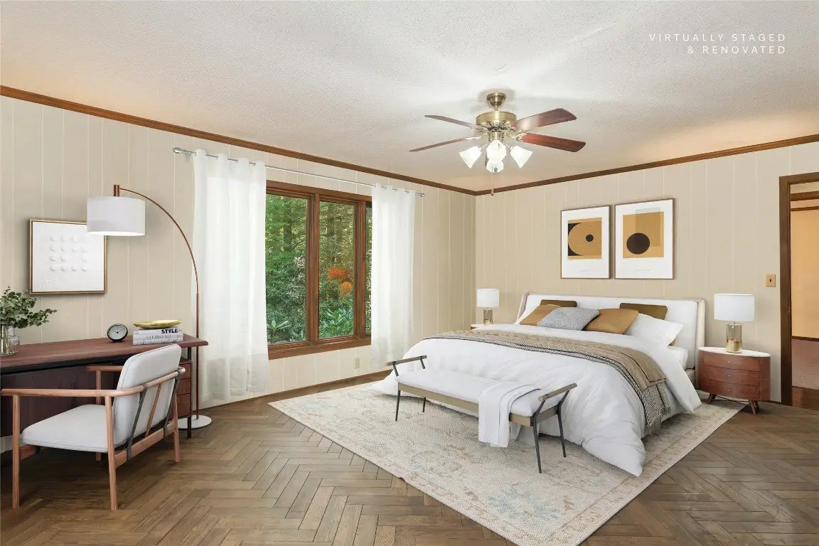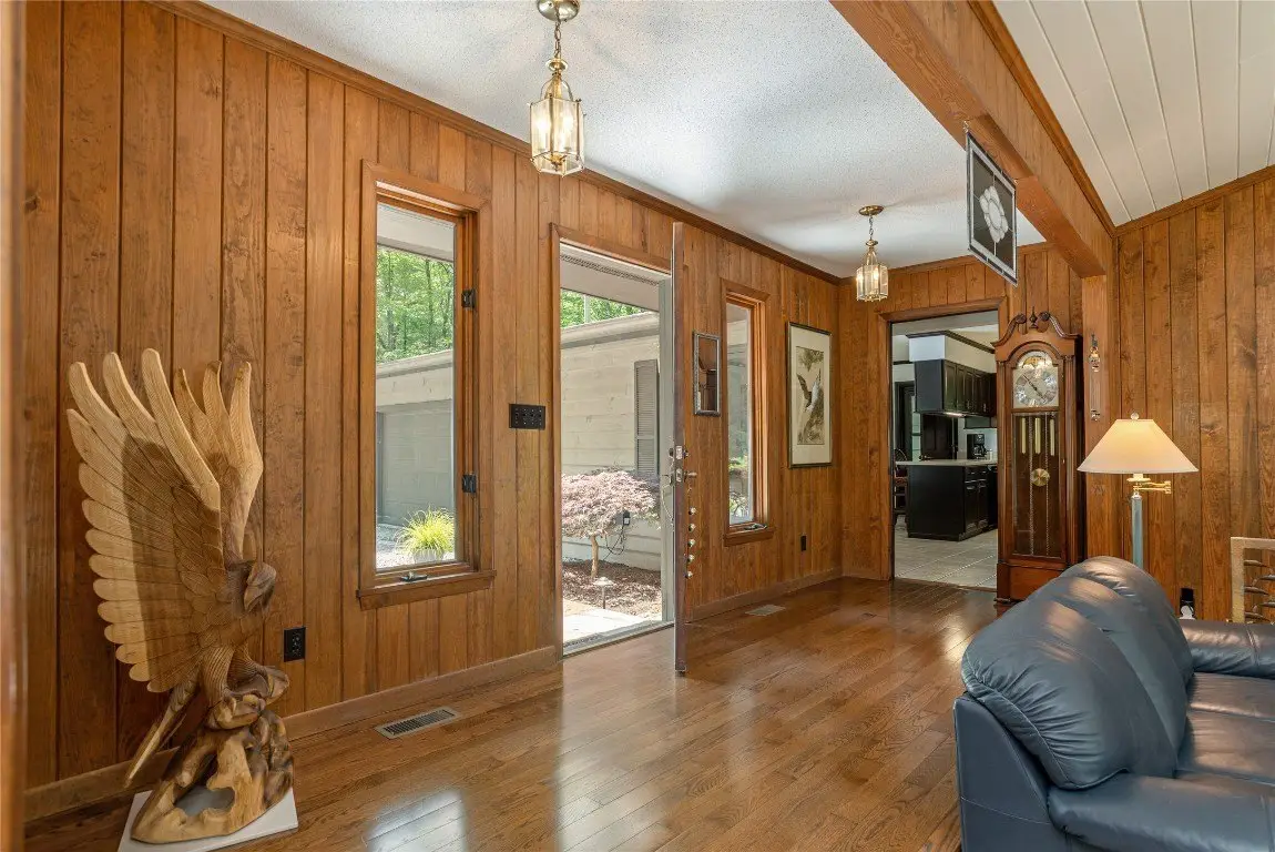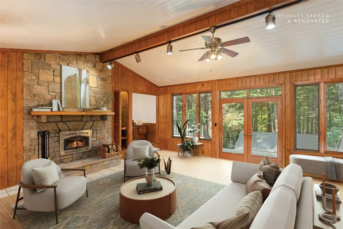 Discover the charm of mountain living in the peaceful Stillmont neighborhood, perfectly positioned along the coveted Highlands-Cashiers corridor. This captivating home sits on 2.9 wooded acres that border a conservation easement, providing both privacy and the natural beauty of the Plateau. A circular driveway and a charming water feature lead the way to this meticulously maintained mountain retreat, enhanced in 2025 with fresh interior painting that brightens and modernizes the space. Inside, the home retains its midcentury character while offering endless potential to blend classic appeal with contemporary updates. The main level is designed for easy living, featuring a spacious primary suite with a walk-in closet, a guest bedroom, an office, and generous storage. The cozy living area — anchored by a rustic stone fireplace — is an inviting space to unwind with a book or gather with family and friends. The kitchen and adjoining dining area are perfect for both casual meals and festive gatherings. Step outside to enjoy the expansive deck, ideal for soaking in cool mountain breezes, or gather in the screened gazebo for unforgettable evenings of alfresco dining. Modern comforts abound, as the fiber optic internet, generator, encapsulated crawl space, and 2024 dehumidifier and sump pumps ensure year-round comfort and peace of mind. Whether it’s the vibrant fall foliage, snowy winter landscapes, or lush spring blooms, this home offers a front-row seat to the natural beauty of The Plateau. Embrace the timeless appeal of mountain living in Stillmont, where every detail reflects care and the true spirit of a cozy, alluring mountain getaway — just minutes from Cashiers and Highlands. Virtually staged and renovated photos are included to showcase the potential of the property.