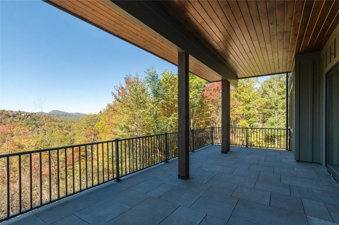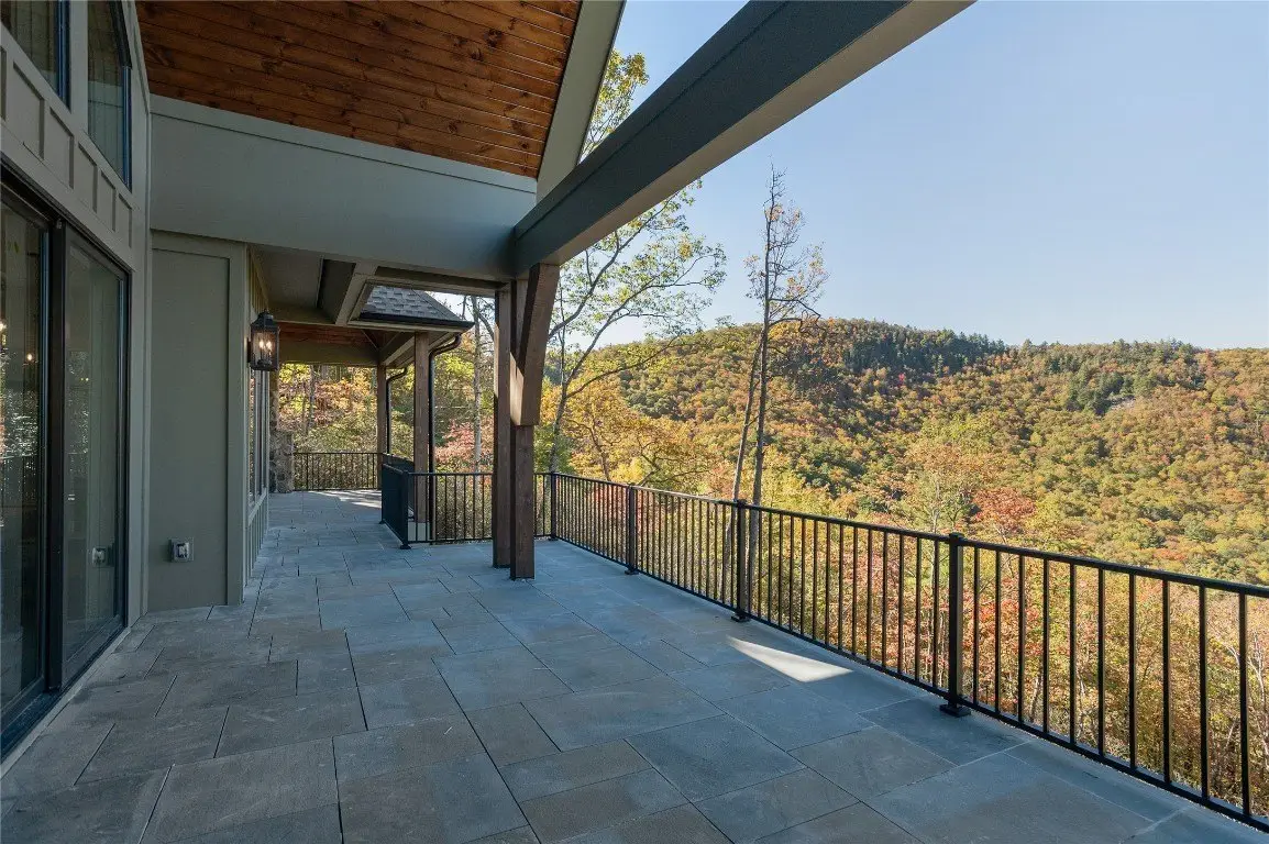 This newly constructed, custom designed residence is nearing completion in Cedar Hill, one of the Highlands Cashiers Plateau’s most desirable gated communities. Perfectly situated just minutes from both Cashiers and Sapphire, this thoughtfully crafted home offers a fresh architectural approach and a seamless floor plan designed for luxurious yet comfortable mountain living. As you arrive, curated landscaping, clean architectural lines, and a welcoming presence set the tone. Expansive windows and glass doors fill the interior with natural light and frame sweeping views across the valley, with Big Sheepcliff mountain rising as a dramatic backdrop. The main level features an open living area with soaring vaulted ceilings and a striking stone fireplace, seamlessly connected to the chef’s kitchen and adjacent gathering spaces—ideal for both entertaining and everyday living. Two distinct outdoor living areas extend the main level. A screened covered porch with a wood burning fireplace allows for year round enjoyment, while a separate covered veranda deck offers a serene space to relax and take in the cool mountain breeze. The primary suite on the main level is spacious and elegantly appointed, offering privacy, comfort, and convenience. On the lower level, a generous family room with a wet bar opens to two additional covered decks—one featuring another wood burning fireplace—creating the perfect setting for guests to gather and unwind. This level also includes three guest bedrooms and a dedicated bunk room, providing ample accommodations for extended family and friends. A two car garage adds architectural character and everyday functionality. For those seeking a brand new mountain retreat in a well established and private community, this home offers timeless design, panoramic views, and the best of life on the Highlands Cashiers Plateau.