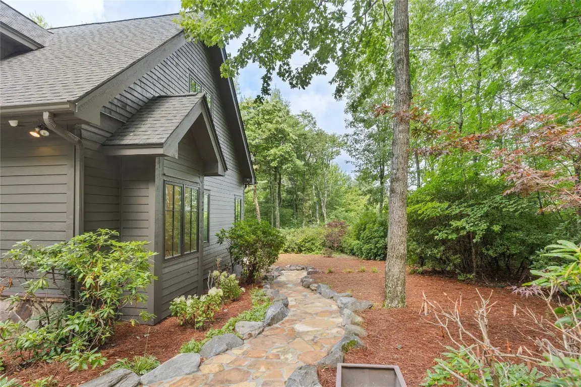 First Time Offering in Cedar Hill – Newly Renovated Luxury with Big Sheepcliff Views Nestled within the prestigious gated community of Cedar Hill, just moments from the fine dining, boutique shopping, and recreational offerings of both Cashiers and Sapphire, this exceptional mountain home is being presented for the first time since undergoing a comprehensive and thoughtful renovation. A sweeping circular driveway welcomes you and your guests, offering an immediate sense of arrival and privacy. Step inside to find a dramatic two-story great room featuring a soaring stone fireplace and a wall of glass that captures breathtaking views of Big Sheepcliff Mountain. Natural light floods the space, creating a warm and inviting ambiance that flows effortlessly into the adjacent dining area and brand-new chef’s kitchen. Designed with entertaining and everyday living in mind, the kitchen features a large central island with additional casual seating, custom cabinetry, and top-of-the-line finishes. A full wall of windows and folding glass doors open seamlessly to a covered porch with a second stone fireplace—perfect for enjoying cool mountain evenings or hosting intimate gatherings year-round. Just below, the gently sloping topography of the lot leads to a thoughtfully placed firepit area, offering yet another space to relax and connect under the stars. The main-level primary suite serves as a true retreat, complete with a fully updated bath that boasts a large walk-in shower, elegant stonework, and luxurious finishes. A cozy den with a full bath provides flexibility for additional guests or a home office, while the conveniently located laundry room enhances main-level living. Upstairs, an open loft overlooks the great room and serves as a central hub between two generously sized guest suites, each with its own private ensuite bath—ideal for family and friends. Tucked above the garage, the spacious media room offers a private escape, perfect for movie nights, quiet reading, or working remotely. Impeccably remodeled and move-in ready, this elegant mountain home is the perfect blend of comfort, luxury, and timeless design—all set within one of the Highlands-Cashiers Plateau’s most sought-after communities.