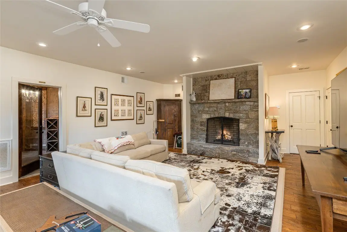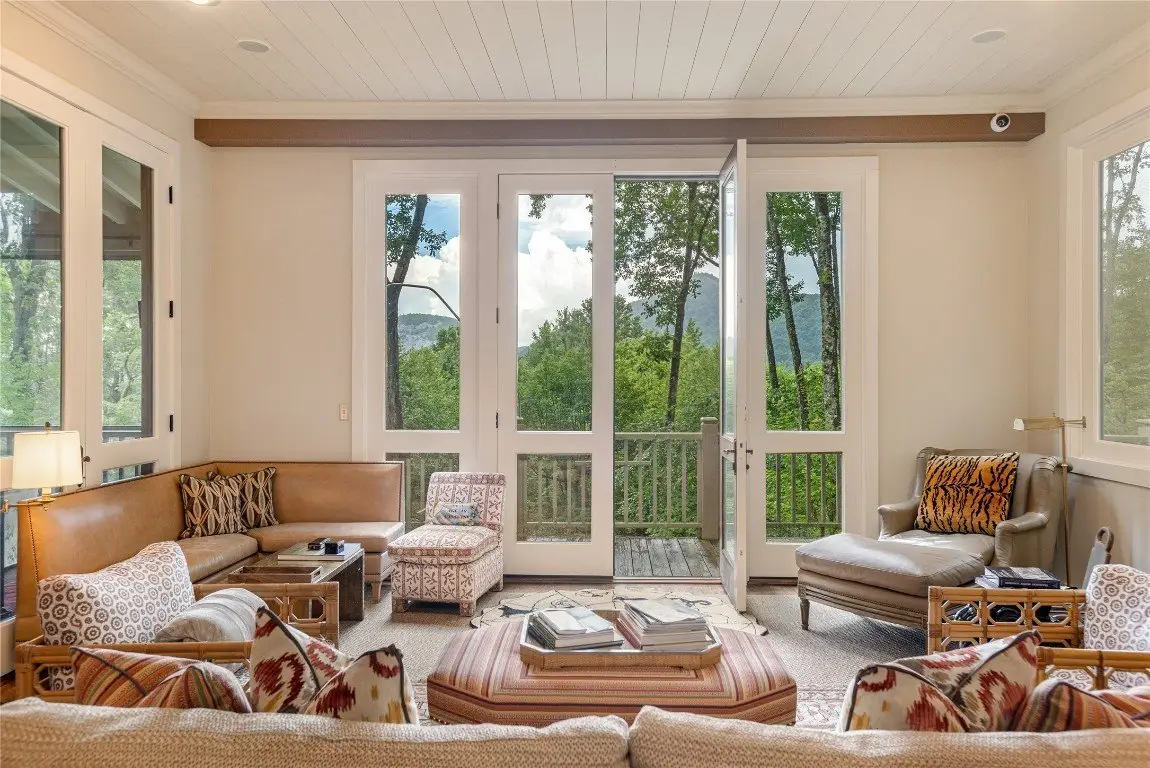 Enjoy peace and privacy on 1.87 acres of secluded forest in the gated Chattooga Club neighborhood. This property boasts a stunning stone entryway and immaculately manicured paths that lead to the most comfortable living on the Plateau. The great room offers a space to relax with a stacked stone fireplace and long-range views of Chimney Top and Rock Mountains, while the expansive screened-in deck is an ideal spot to enjoy the sights and sounds of nature with family and friends. The spacious kitchen features an island that’s perfect for entertaining with top-of-the-line appliances and modern cabinetry. On the main level, the luxurious primary suite features a fireplace, an attached sunroom, and a generous ensuite bathroom with a walk-in shower, a walk-in closet, and its own laundry space. Upstairs, there are two guest bedrooms with ensuite bathrooms, a cozy sitting room, and a bonus room. The lower level features a bedroom with an ensuite bathroom and an additional living space with a wet bar that connects to the wine cellar. There is also a detached guesthouse over the garage with a cozy sitting room, a kitchenette, and a private bedroom with bathroom, providing privacy for family members or guests and connecting to the main house via a short covered walkway. Along with its breathtaking views, the property comes with a vacant lot that backs up to the house, a waterfall, picturesque grounds, a screened-in standalone pavilion with a fireplace, a grill, and ample space to relax and enjoy the sounds of the running water. Located just two miles — a 5-8-minute drive — from the crossroads and all the shopping and dining amenities, this exquisite home offers everything that’s needed to enjoy a refined mountain lifestyle.