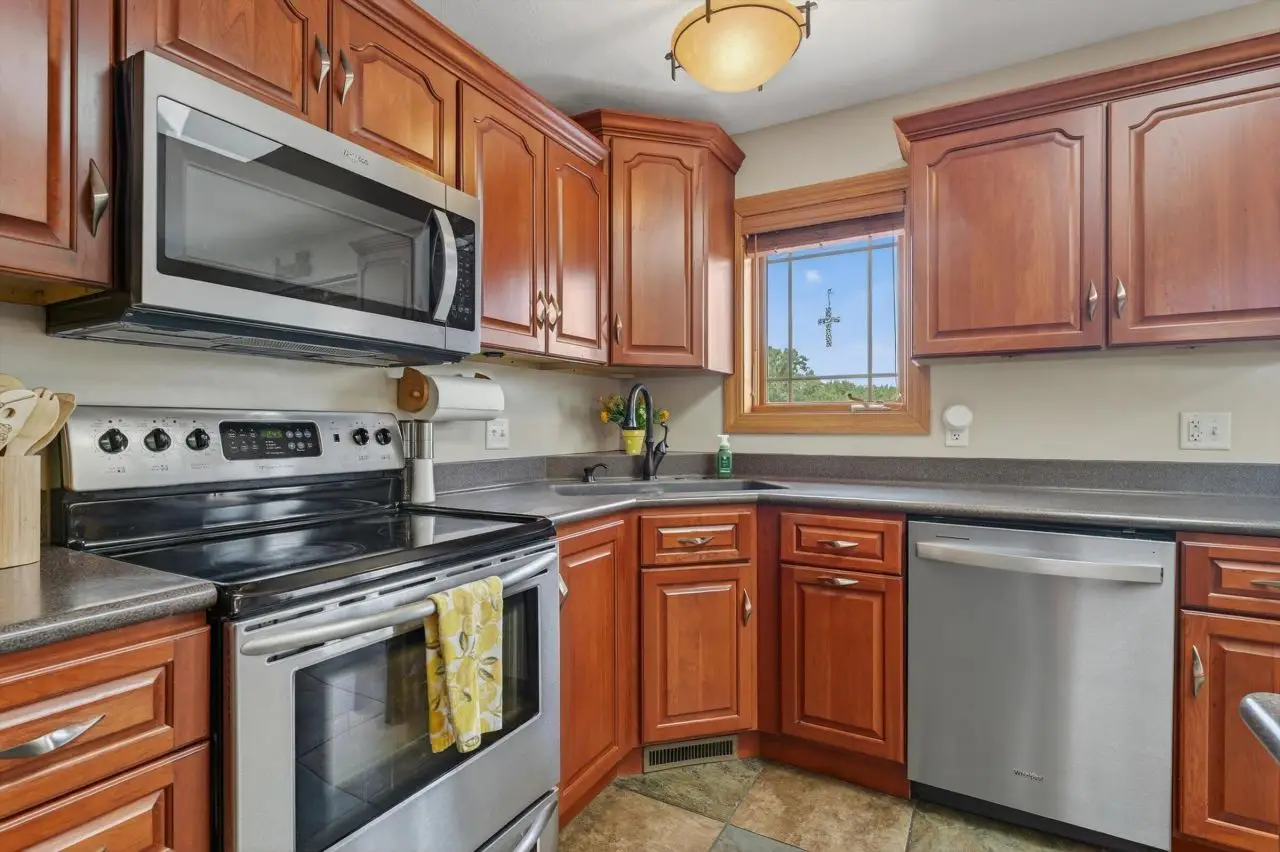 Sitting on 14 acres, this modern ranch with Craftsman flair features, vinyl shake and stone siding, cedar accents, and a welcoming arched entry with a 9x24 covered porch. Inside, enjoy a main floor office, spacious kitchen and dining area, and a vaulted 15 living room ceiling with a gas log fireplace. The 15x20 primary suite includes a private deck, updated bath, and oversized walk-in closet. A spacious 2nd bedroom and full bath. The finished lower level offers a large family room, kitchenette, two bedrooms, full bath, and poolside half bath with changing area. Outside features 2 new composite decks, one is a private deck from the Primary bedroom the other is off the eating area both have beautiful views of the acreage and wildlife that abounds. a 20x40 inground pool, covered patio wit a new hot tub, impressive boulder retaining wall, and 40x60 barn with 2 oversized doors and a 15 sliding door, cement floors and electric. There is a mixture of land, some flat, some wooded and some lowland. Wood boiler heat or propane.