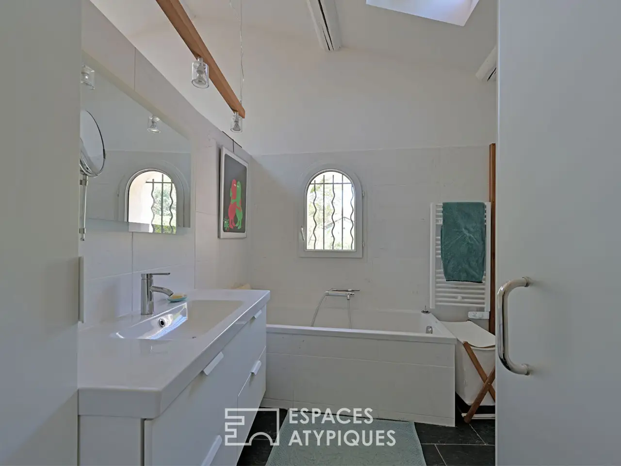 On the outskirts of Montpellier, in a unique bucolic setting, this former 1900 sulfur mill, fully renovated, offers over 255 sqm of living space.This characterful property features an intimate garden, a swimming pool, and a vast terrace.The 85 sqm living room, the true heart of the house, impresses with its high ceilings, exposed timber framing, and monumental library. This open space interacts with a functional kitchen, delimited by a workshop glass roof that preserves perspectives and light.Spread over two levels, the sleeping areas consist of six bedrooms, including a beautiful master suite. Each offers a unique atmosphere, combining exposed stone walls, whitewashed beams, and attic spaces, where every decorative detail has been carefully considered to create a unique universe.Hidden from view, the terrace invites relaxation and overlooks a lush garden featuring a swimming pool, a promise of absolute tranquility. The murmur of the Lez River completes this soothing atmosphere.A garage and a large workshop located on the ground floor complete this rare ensemble.Ideally located, this unexpected haven of peace contrasts with the bustle of the city, yet so close. The center of Castelnau-le-Lez and the tramway to Montpellier are only a few steps away, offering a rare living privilege.More than a family home, this place is a true expression of character where the soul of the old blends with a bold contemporary renovation. The excellent energy performance of the property testifies to a high-quality restoration.ENERGY CLASS: B - 70 / CLIMATE CLASS: A - 2Estimated average annual energy expenditure for standard use, based on 2021 energy prices: between EUR1,250/year and EUR1,760/year.Information on the risks to which this property is exposed is available on the Georisques website for the areas concerned.REF. 11989Additional information* 8 rooms* 6 bedrooms* 2 bathrooms* 2 shower rooms* Outdoor space : 575 SQM* Property tax : 4 391 €Energy Performance CertificatePrimary energy consumptionb : 70 kWh/m2.yearHigh performance housing*A*70kWh/m2.year2*kg CO2/m2.yearB*C*D*E*F*GExtremely poor housing performance* Of which greenhouse gas emissionsa : 2 kg CO2/m2.yearLow CO2 emissions*2kg CO2/m2.yearA*B*C*D*E*F*GVery high CO2 emissionsEstimated average annual energy costs for standard use, indexed to specific years 2021, 2022, 2023 : between 1250 € and 1760 € Subscription IncludedAgency feesThe fees include VAT and are payable by the vendorMediatorMediation Franchise-Consommateurswww.mediation-franchise.com29 Boulevard de Courcelles 75008 ParisInformation on the risks to which this property is exposed is available on the Geohazards website : www.georisques.gouv.fr