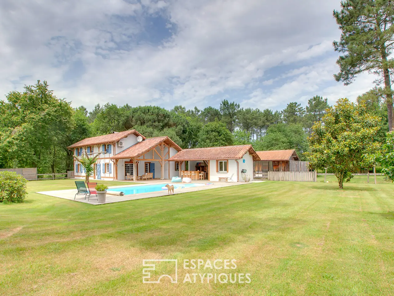 Nestled in a green setting, sheltered from view, this property located in Castets offers a peaceful and confidential living environment, combining nature and comfort. The complex consists of a main house and a separate gite, set on a wooded plot of over 4,700 sqm with a swimming pool and large garage. Upon entering, the generous volumes and exposed timbers create a warm and authentic atmosphere. The light-filled living room opens onto a vast terrace with unobstructed views of the garden. The open-plan kitchen, dining area, and six bedrooms spread between the two dwellings offer ideal flexibility for welcoming family and friends, or developing a seasonal rental business. The fully equipped gite benefits from independent access and excellent privacy, while the exteriors are designed for relaxation: a sunny swimming pool, shaded terrace, landscaped areas, and more. A living space in harmony with nature, ideal for convivial moments. This rare property seduces with its layout, its preserved environment, and its diverse potential. A unique address, ideal for those seeking an art of living combining authenticity and comfort, in a privileged setting in the Landes. ENERGY CLASS: C / CLIMATE CLASS: A Estimated average amount of annual energy expenditure for standard use, established from 2015 energy prices: 839 euros/year. Contact: Stephan DE VALK at 06 33 03 98 65 RSAC: 533 152 955 Dax REF. 11481EALD Additional information * 9 rooms * 6 bedrooms * 2 shower rooms * Outdoor space : 4759 SQM * Property tax : 1 832 € Energy Performance Certificate Primary energy consumption c : 101 kWh/m2.year High performance housing