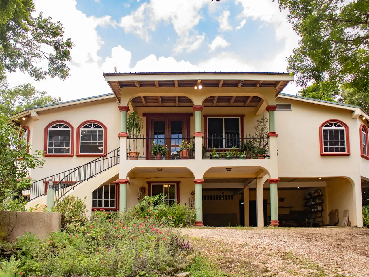 Perched atop a lush 50-acre mountaintop estate in Western Belize, Kan-Iik Mountain is a private sanctuary of elegance, history, and modern comfort. Just fifteen minutes from San Ignacio and Santa Elena, the 7,500+ sq. ft. three-story residence blends timeless craftsmanship with smart technology, surrounded by manicured gardens, exotic flowers, and pristine jungle. The hilltop home commands breathtaking views of valleys, mountains, and landmarks like Cahal Pech and Baldy Beacon. Inside, soaring hardwood ceilings, carved details, and expansive verandas set the stage for refined living. Highlights include a grand great room, chef’s kitchen, formal dining room, library, two master suites with Jacuzzi baths, guest quarters, and a self-contained apartment with additional studio units—ideal for hosting or rentals. Leisure spaces abound, from a billiards and entertainment floor to outdoor patios cooled by mountain breezes. Practical luxuries include rainwater catchment with filtration, a Generac generator, voice-controlled lighting, high-speed internet, and a two-vehicle garage. The estate also features a second, prepared hilltop, cleared for future development—perfect for an infinity pool, boutique lodge, or another residence—with panoramic 360° views across Cayo. With its trails, landscaped grounds, and unmatched vistas, Kan-Iik Mountain is more than a home—it’s a private Belizean kingdom where history, nature, and luxury converge.