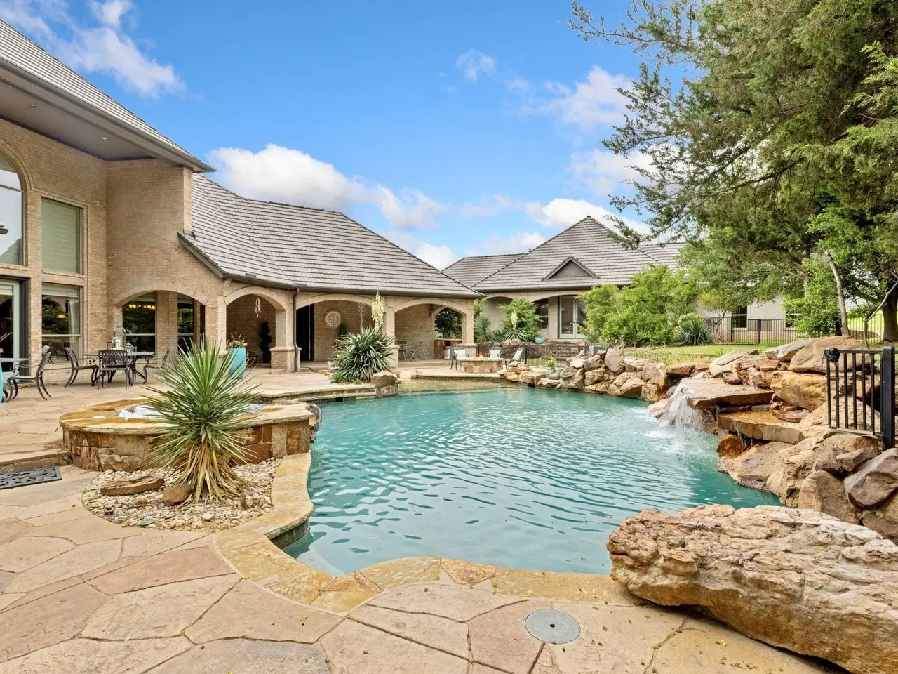 A Private Oasis in Twelve Oaks Estates: Your Yellowstone-Inspired Ranchette! This one of a kind Luxury Custom and Guest House - Peaceful and Private living in Twelve Oaks, situated on 3.45 acres with a private pond & fountain. Spectacular drive- up, as the main home, is perched over a beautiful private pond with fountain, a park-like setting surrounded by trees. From the full circle driveway, a hitch for your horses and stone steps lead up to the full covered porch and commanding double doors. Multi-Generational w Full Guest House in Twelve Oaks Estates on 3.45 acres. The Best of Both Worlds- living in south Celina and in Prosper ISD. Designed for Entertaining with a 1st Floor MEDIA includes screen, projector & stadium seating. The Living has 2 story high tall windows, stacked stone fireplace, flanked with stone shelves and a full bar. Appointed with custom millwork, moldings & polished concrete floors. Primary suite has a fireplace, exercise room. The spa-like Bath has vessel sinks, granite counters, huge shower, & sauna. The 2nd Bedroom down has a full bathroom. Upstairs leads to an amazing landing & balcony with two split Bedrooms each w ensuite baths,+ a fun Flex-living space. Resort living-lagoon Pool, Spa, Firepit, Octagonal covered Gazebo with a stone mantled fireplace and hearth Multiple patios, space for Horses to roam, kids to play soccer & fish at your private pond. MECHANICS: DaVinci 50 yr Roof Class IV Rating installed 2019, Foam Insulation for energy efficiency - main house. New Spa Heater installed - 2025, the private Pond- recently upgraded deep well for outdoor irrigation- a huge savings on water. Lot -3.45 acres - dimensions-374 ft x 383 ft, City Water and Sewer service for the home.*Where else can you find a near square interior lot with 3.45 acres, with both a Luxury Home, Separate Guest House, Resort Pool, Spa Gazebo, plus allow Horses? It's all about the Land Celina & Prosper ISD - Walnut Grove High.