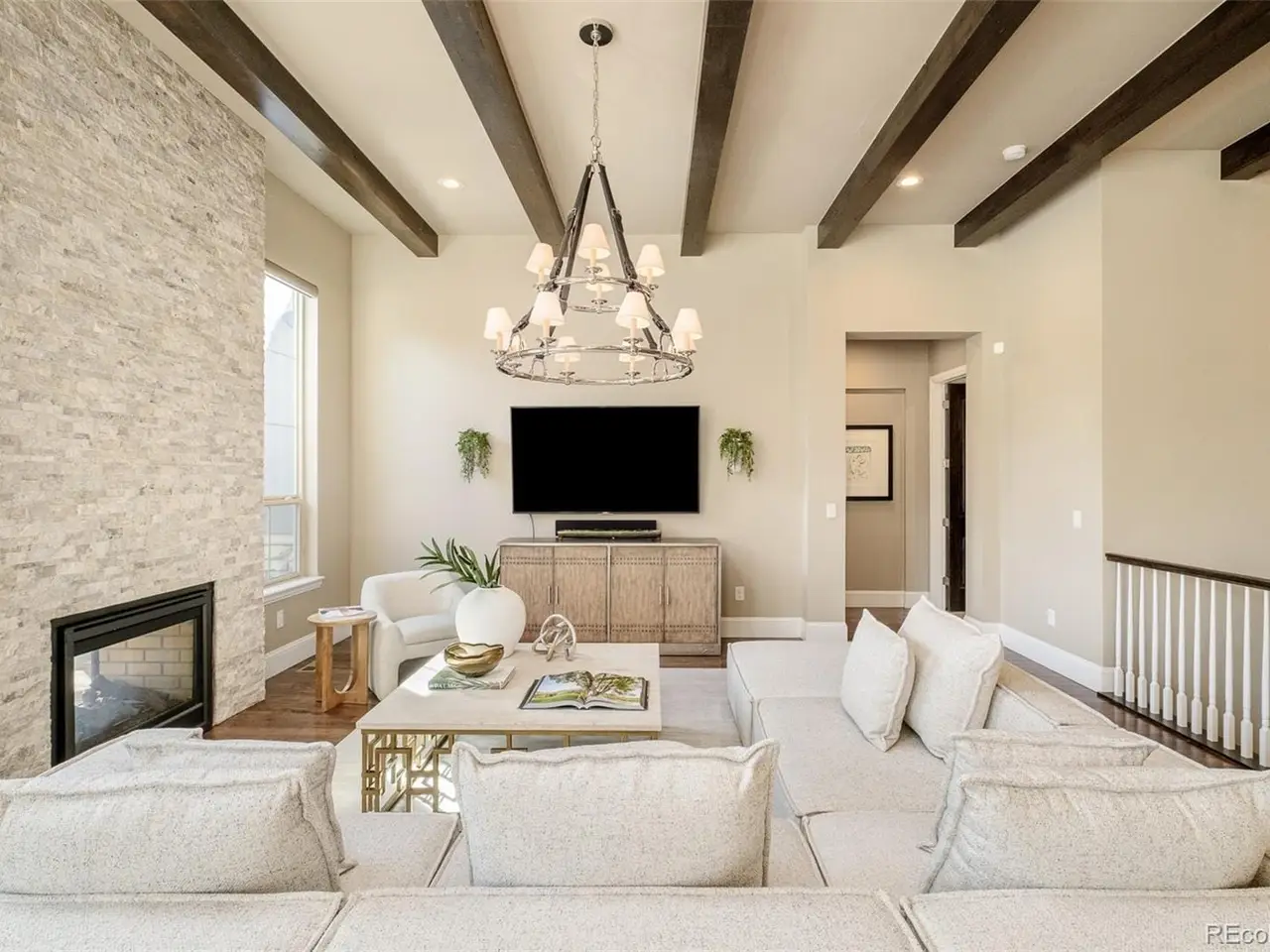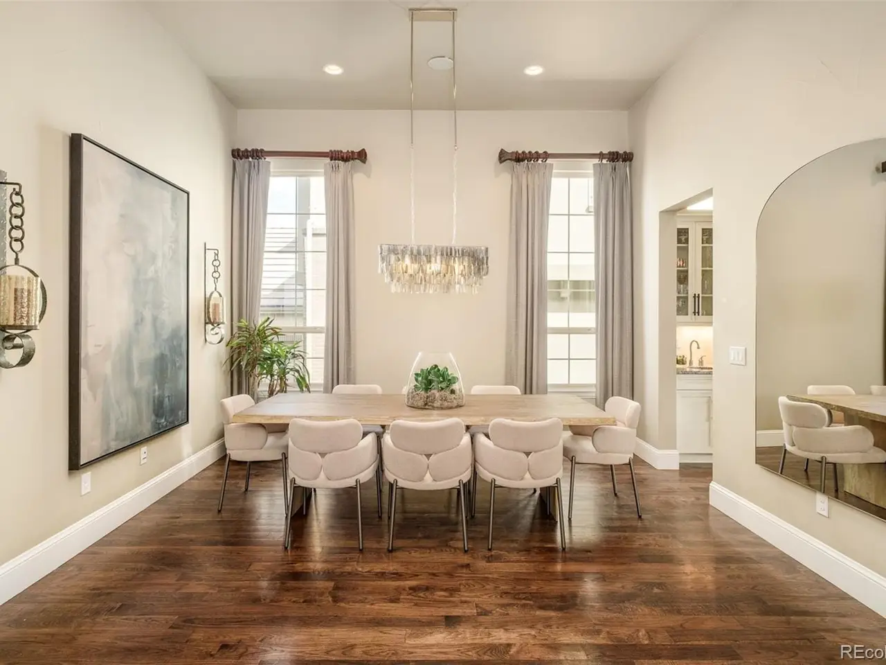 Discover this stunning three-bedroom, four-bathroom home in the highly sought-after Marvella community, where luxury living meets modern convenience. With designer finishes throughout and a thoughtful floor plan, this home is truly move-in ready. The main level showcases a spacious primary suite complete with a spa-like five-piece bathroom and an impressive custom walk-in closet featuring built-ins and a center island. For added convenience, the primary closet connects directly to the main floor laundry room, outfitted with abundant cabinetry and storage. The inviting living room and chef's kitchen form the heart of the home, complemented by both a breakfast nook and a formal dining room. The secondary bedroom on the main level features an en-suite bathroom and walk-in closet for your guest's convenience. A dedicated main-level office makes working from home effortless. Step outside to a private backyard retreat with a custom bench and a cozy double-sided fireplace for year-round enjoyment. Downstairs, the finished basement is an entertainer's dream, which is ideal for a game room or media space. It seamlessly flows into a wet bar and tasting room, complete with a striking wall of wine racks for your collection. This level also offers a bedroom, bathroom, and a versatile oversized bonus room with built-in cabinetry - perfect for a gym, playroom, or creative space. Nestled in a prime Centennial location, this home provides easy access to top-rated schools, shopping, dining, and recreational amenities.