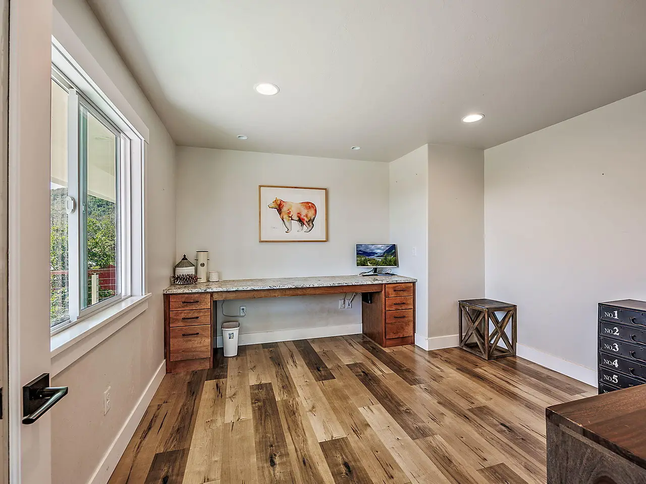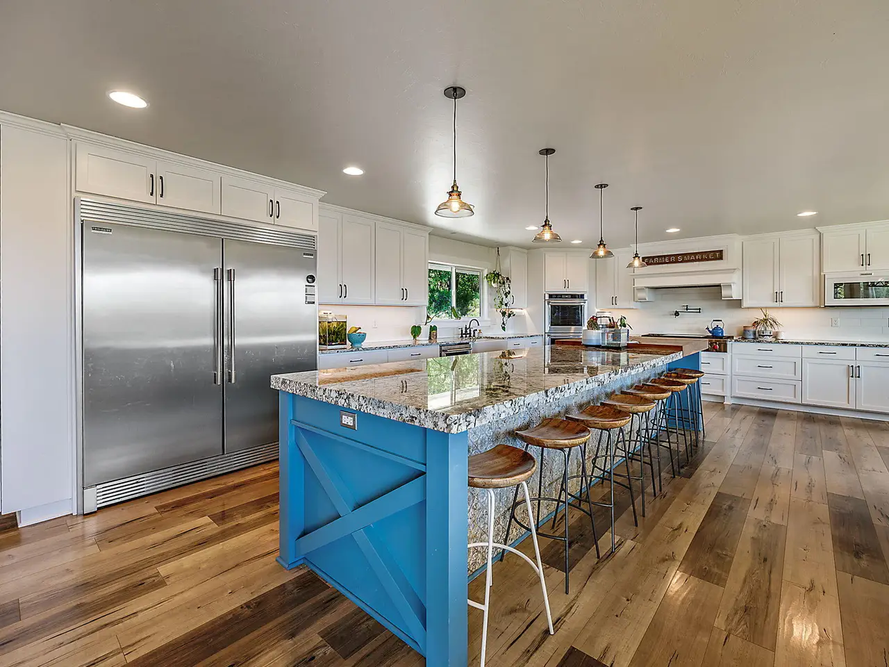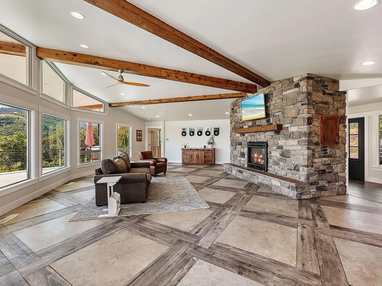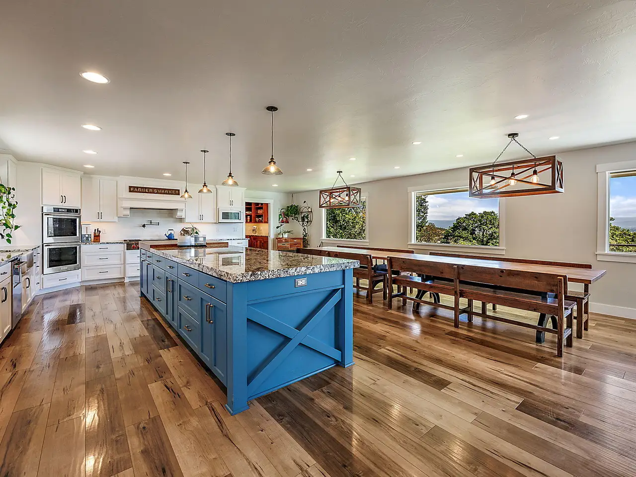 Amazing two view homes and two tax lots with a total of 22.39 acres. Perfect two-family set up or keep the second home as a rental. Main home is 6,237 square feet with major updates. It's beautiful with a farm house feel. New baths, kitchen, sheetrock, exterior siding, flooring, decking, windows, sliders, stone on gas log fireplace and more. Open beams and floor to ceiling windows in great room, large dining room opens to gorgeous kitchen with 14-foot granite island and eating bar, butler pantry with desk and wine refrigerator, designer cabinets. Primary suite is large with Carrrera marble shower with three heads. Safe room and theater room. Year round pond with cabin/bunk house. Large shop and barn and RV parking. Second home is manufactured with two car garage and shop area, three bedroom/two baths, 1,782 square feet. Two wells plus 10,000 gallon holding tank.