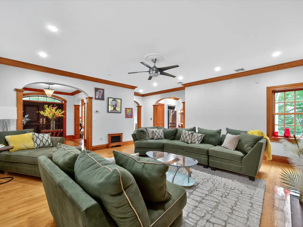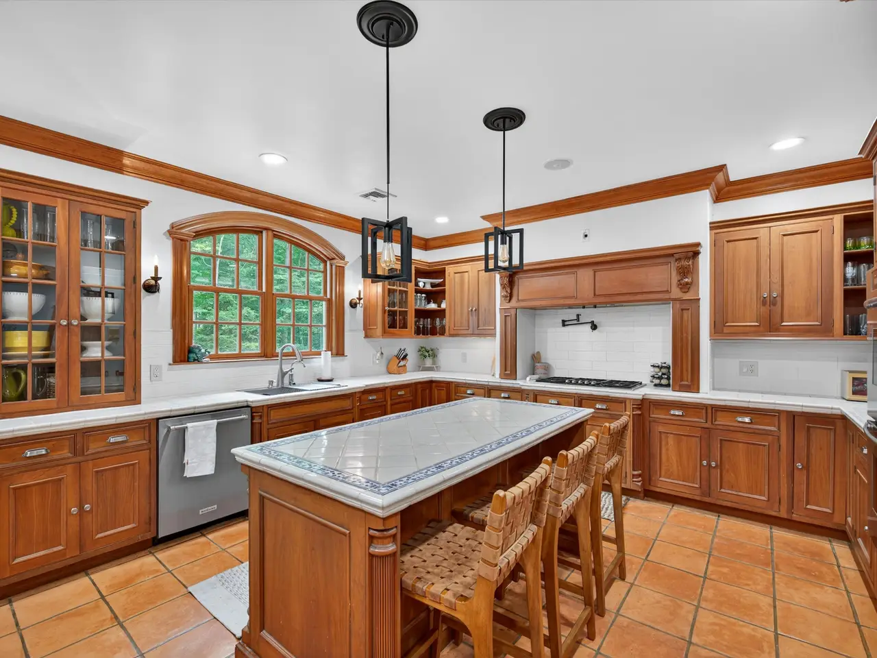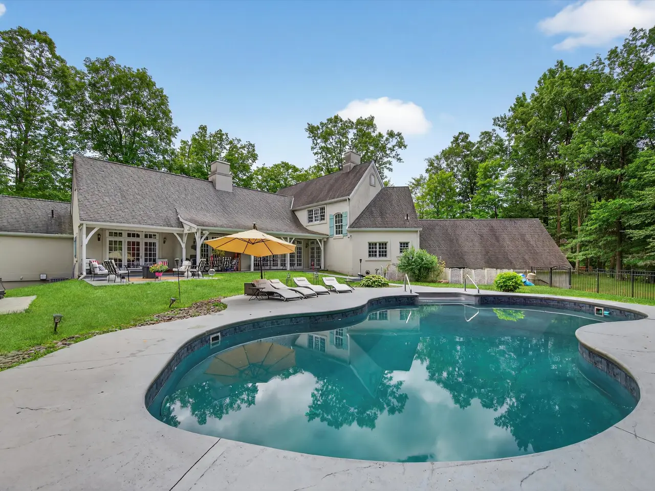 Welcome to "LE CHATEAU des VERTS" – Lives like a ranch, entertains like a castle. Discover a slice of the French countryside, perfectly perched in the Hudson Valley. Inspired by the rolling hills of Provence and meticulously crafted with timeless elegance, this one-of-a-kind home is known to its neighborhood residents as "The Castle on the Hill." It's more than a house; it's a tranquil retreat for those seeking an escape from the city, without sacrificing style or convenience. Nestled on over an acre of serene, maturely landscaped grounds, Le Château des Verts offers a true sanctuary just 30 miles north of Manhattan. The design immediately captivates you as you arrive, with a grand two-story turret and custom arched windows accented by slate-blue shutters—a nod to the classic beauty of French architecture. Step through the double front doors into an inviting foyer. The radiant floors guide you through the sprawling first-floor living area, where natural light pours in from every window, creating a warm, airy atmosphere. To the left, the formal dining room is perfectly positioned for memorable gatherings, with east-facing windows that capture the beauty of the Hudson Valley sunrise. The heart of the home is the French-Country eat-in-kitchen. Here, custom cabinetry and woodwork, along with pull-out spice drawers on either side of the five-burner stove, blend practicality with elegance. The turret space provides the ideal nook for a circular breakfast table, while the center island offers additional seating and prep space. For unwinding or entertaining, the home features two elegant living rooms, each with its own fireplace. Walls of French glass doors illuminate these spaces, offering seamless views and access to your backyard oasis, complete with a heated, in-ground saltwater pool. This is where you'll find yourself on summer afternoons, soaking in the sun and enjoying a peaceful moment. The North Wing of the home, or the "Owner's Wing," is a private escape. A nearby second bedroom, ideal for a nursery or home office, features its own set of French glass doors leading to the garden. The Owner's suite is a haven of relaxation, with high ceilings and another set of French doors that amplify the natural light. It leads to an ensuite bathroom with dual vanities, a luxurious jacuzzi tub, and a custom shower. A walk-in closet with built-ins completes this wing. Continuing to the west wing of the home, a half-bathroom, laundry room, and a spacious bonus room offer flexibility—perfect for a billiards room, library, or secluded living area. Upstairs, two generous guest bedrooms share a full bathroom, ensuring comfort and privacy for visitors. An unfinished space also leaves room for additional quarters. The walkout lower level provides a versatile living space with a full bath. A large room, currently used as a walk-in closet, has endless potential for a jaw-dropping hobby space—from a private wine cellar to a state-of-the-art recreation room with a golf simulator. A full gym and an attached three-car garage complete this incredible home. This is more than a property; it's a lifestyle you've been dreaming of.