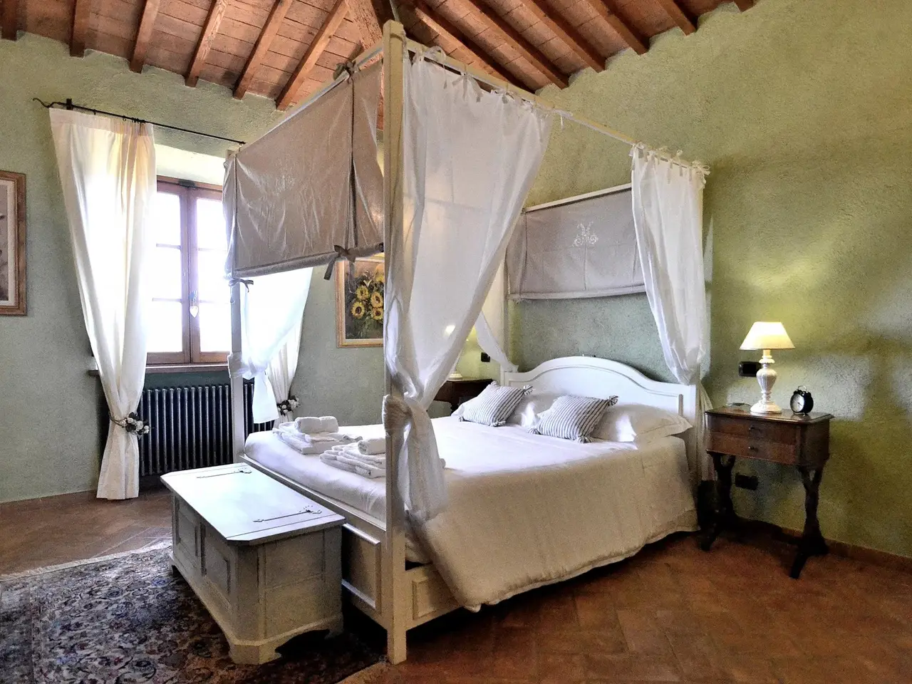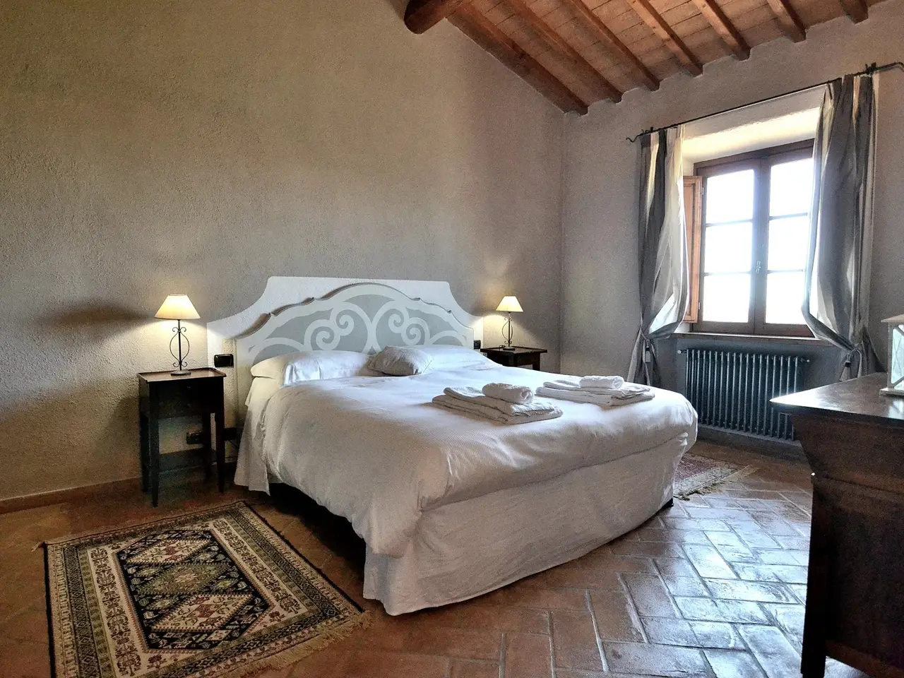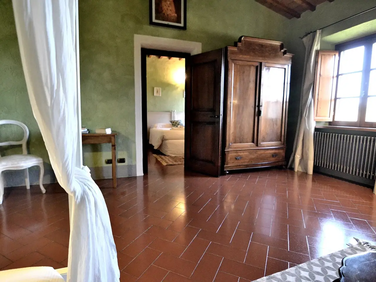 Exclusive villa completely renovated, in a panoramic position on all sides of the property. Large infinity pool equipped with sunbeds for all guests, umbrellas and a large gazebo with table and chairs. Veranda, large garden and parking area. The villa is ideal for up to 14 guests. 7 bedrooms and a total of 9 bathrooms. Air conditioning, Wifi, mosquito nets on the windows. Heated jacuzzi. 4 km from all services. Quiet and safe area, strategic for visiting all of Tuscany! Excellent and suggestive location on top of a small hill covered in vineyards and olive groves. 360 degree panoramic view. The sun sets almost in front of the veranda, furnished with a heated jacuzzi and sofas, and the swimming pool. The villa is located between Florence and Siena a few kilometers from medieval villages such as Certaldo, San Gimignano and Monteriggioni. Even the main villages of Chianti can be reached in a short time. Nearby there are also many wineries and farms where you can taste local wine and other typical products. Florence and Siena can both be reached in 30 minutes by car. You can also reach the center of Florence in 40 minutes by train from the small station of Certaldo (just 6 km from the villa, with free parking to leave your cars). The property has a large plot with a parking area inside the electronic gate. The villa is on two floors. On the ground floor you will find: - A Tuscan-style living room with sofas, fireplace, large satellite TV and table for 14 people. - A service bathroom with toilet and sink, accessible from the living room itself. - A large bedroom with comfortable queen size bed, sofa, wardrobe and private bathroom with shower, toilet, bidet, sink. The sofa located in this room can be transformed into a double bed if necessary. - A laundry room with washing machine, dryer, separate waste collection, etc. - The veranda, adjacent to the living room, is on a higher level than the pool area. Here you will find sofas to relax while enjoying the magnificent panorama and also a bathroom with shower, toilet, sink, also ideal for when you use the pool. Under the veranda we have recently (January 2022) installed a jacuzzi for up to 4 people. The roof of the veranda is waterproof, as is that of the gazebo located in front of the kitchen, on the side of the garden. - The swimming pool is 12 x 6 meters, infinity model. To reduce the amount of chlorine, the pool has a latest generation salt disinfestation system. In addition, a corner of the pool has a hydromassage (which can be activated by the special plug). The pool area is also bordered by a net that divides it from the rest of the garden, without impacting the aesthetic aspect, and is accessible via a small gate that can be closed in order to safeguard the safety of any children in your group. On the first floor: - 4 DOUBLE BEDROOMS each with large private bathroom inside. All rooms with large queen or king size bed, wardrobe, chairs or armchairs, mosquito nets on the windows, air conditioning. - 2 CONNECTING ROOMS (one double, the other twin): These two rooms are connected by a door that can be closed, since both rooms have a private door to the "common" corridor. The master bedroom also has a private bathroom, like all the others inside. The twin room, where you will find two single canopy beds, does not have a private bathroom inside. However, a large bathroom is located in the same corridor where the bedrooms are located, so twin guests can use the bathroom.