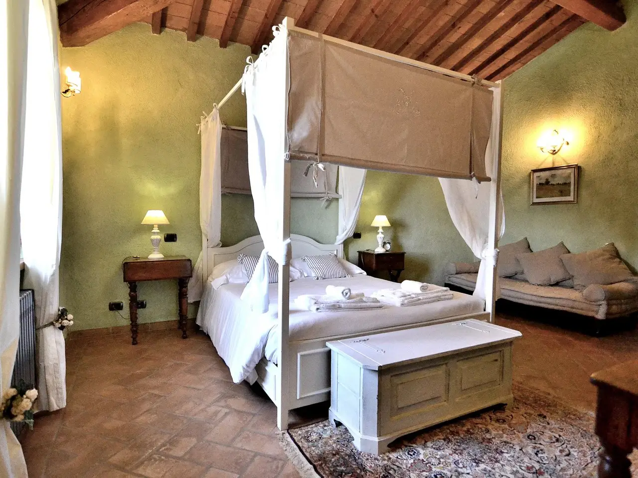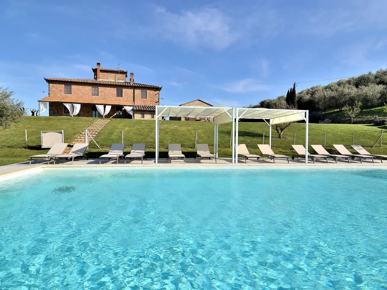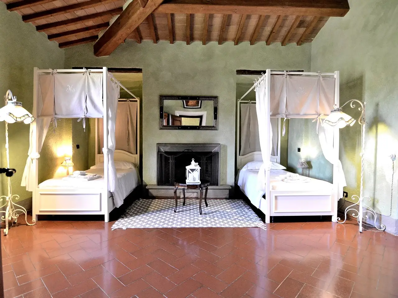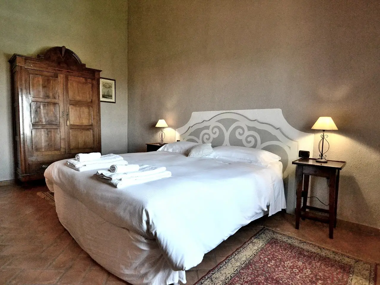 Exclusive villa completely renovated, in a panoramic position on all sides of the property. Large infinity pool equipped with sunbeds for all guests, umbrellas and a large gazebo with table and chairs. Veranda, large garden and parking area. The villa is ideal for up to 14 guests. 7 bedrooms and a total of 9 bathrooms. Air conditioning, Wifi, mosquito nets on the windows. Heated jacuzzi. 4 km from all services. Quiet and safe area, strategic for visiting all of Tuscany! Excellent and suggestive location on top of a small hill covered in vineyards and olive groves. 360 degree panoramic view. The sun sets almost in front of the veranda, furnished with a heated jacuzzi and sofas, and the swimming pool. The villa is located between Florence and Siena a few kilometers from medieval villages such as Certaldo, San Gimignano and Monteriggioni. Even the main villages of Chianti can be reached in a short time. Nearby there are also many wineries and farms where you can taste local wine and other typical products. Florence and Siena can both be reached in 30 minutes by car. You can also reach the center of Florence in 40 minutes by train from the small station of Certaldo (just 6 km from the villa, with free parking to leave your cars). The property has a large plot with a parking area inside the electronic gate. The villa is on two floors. On the ground floor you will find: - A Tuscan-style living room with sofas, fireplace, large satellite TV and table for 14 people. - A service bathroom with toilet and sink, accessible from the living room itself. - A large bedroom with comfortable queen size bed, sofa, wardrobe and private bathroom with shower, toilet, bidet, sink. The sofa located in this room can be transformed into a double bed if necessary. - A laundry room with washing machine, dryer, separate waste collection, etc. - The veranda, adjacent to the living room, is on a higher level than the pool area. Here you will find sofas to relax while enjoying the magnificent panorama and also a bathroom with shower, toilet, sink, also ideal for when you use the pool. Under the veranda we have recently (January 2022) installed a jacuzzi for up to 4 people. The roof of the veranda is waterproof, as is that of the gazebo located in front of the kitchen, on the side of the garden. - The swimming pool is 12 x 6 meters, infinity model. To reduce the amount of chlorine, the pool has a latest generation salt disinfestation system. In addition, a corner of the pool has a hydromassage (which can be activated by the special plug). The pool area is also bordered by a net that divides it from the rest of the garden, without impacting the aesthetic aspect, and is accessible via a small gate that can be closed in order to safeguard the safety of any children in your group. On the first floor: - 4 DOUBLE BEDROOMS each with large private bathroom inside. All rooms with large queen or king size bed, wardrobe, chairs or armchairs, mosquito nets on the windows, air conditioning. - 2 CONNECTING ROOMS (one double, the other twin): These two rooms are connected by a door that can be closed, since both rooms have a private door to the "common" corridor. The master bedroom also has a private bathroom, like all the others inside. The twin room, where you will find two single canopy beds, does not have a private bathroom inside. However, a large bathroom is located in the same corridor where the bedrooms are located, so twin guests can use the bathroom.