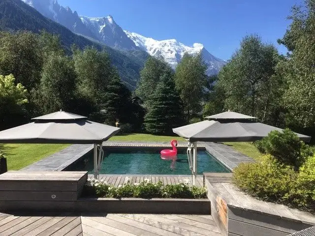 This exceptional property, carefully hidden from prying eyes, consists of a sumptuous chalet with 438 m² of living space and a charming 29 m² mazot. Nestled in a privileged location facing Mont Blanc and the Drus, it offers breathtaking views of the Chamonix Valley. With a total of 610 sqm of total surface, surrounded by over 2,000 sqm of wooded parkland, this residence welcomes guests in an atmosphere where refinement and intimacy are perfectly combined. Every detail of the property is designed for well-being, featuring amenities such as a pool, hammam, sauna, a home cinema and a fitness room, as well as a double garage. To enhance this unique haven, the golf course is just steps away, the Flégère ski area is only five minutes away, and Chamonix unfolds around it, offering a stunning natural setting. An ideal inspiration for a truly exceptional chalet.