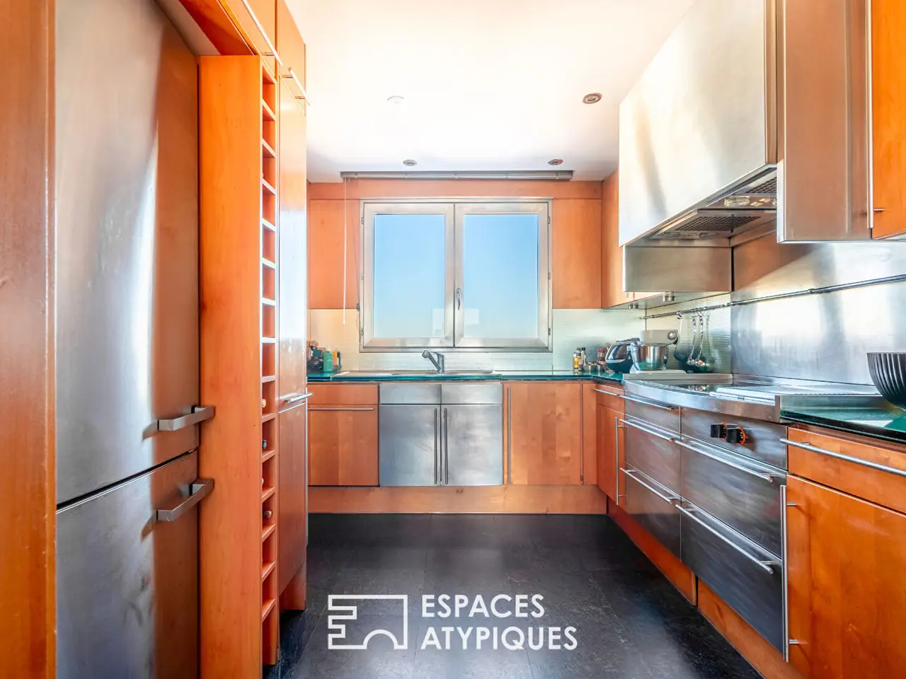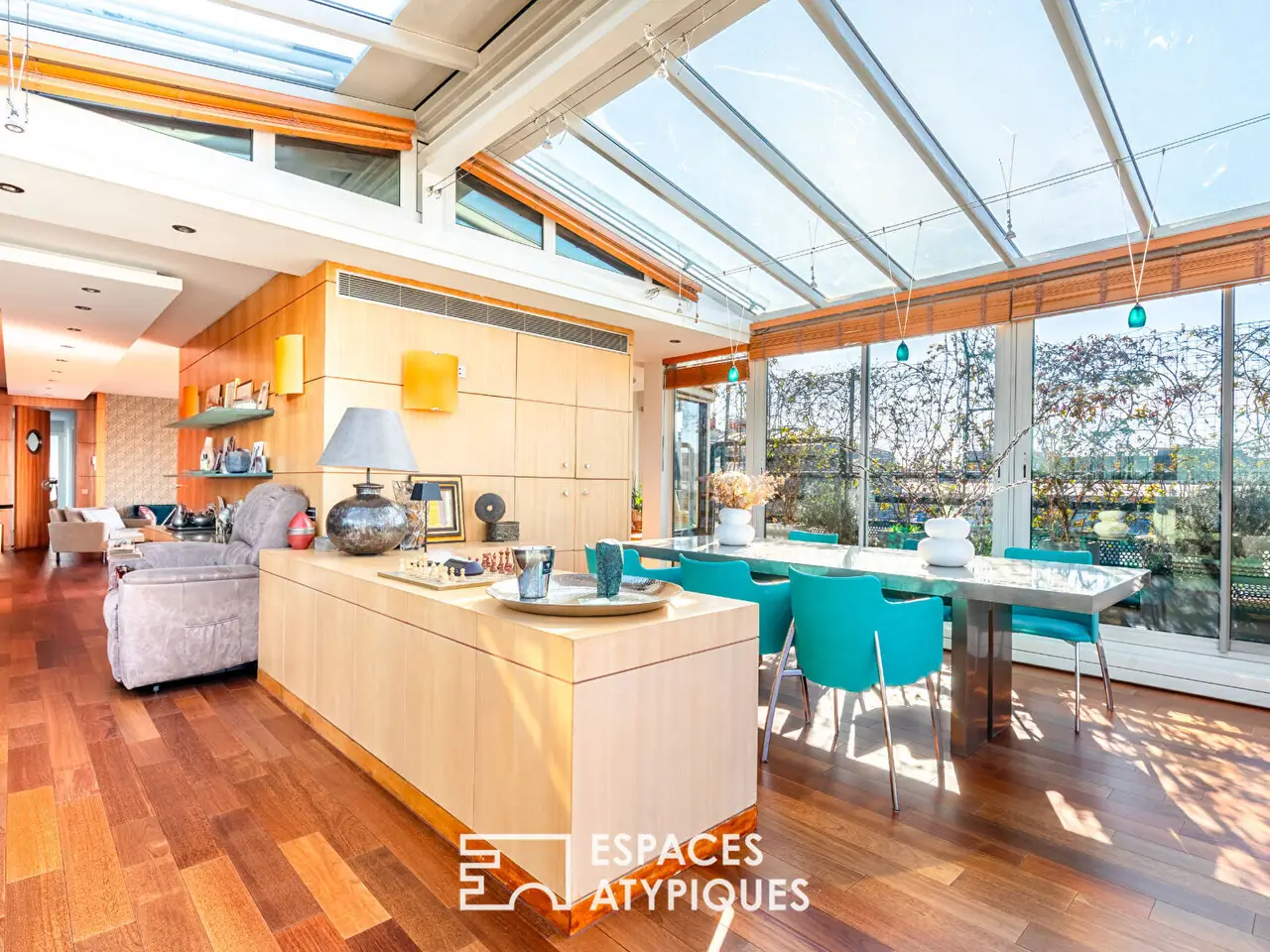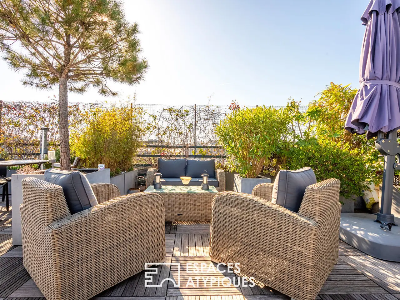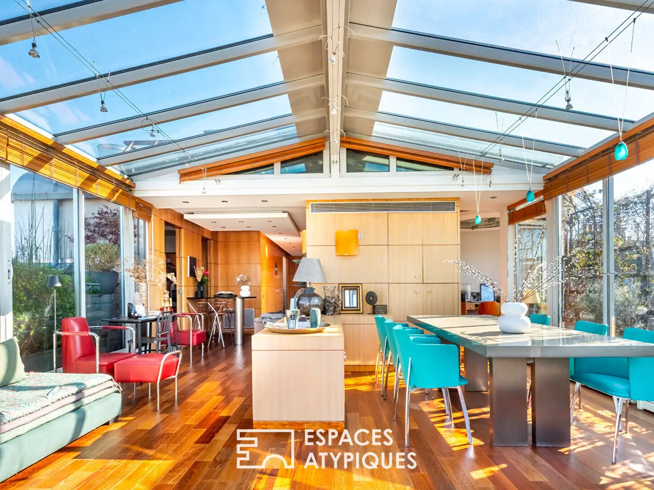 Located in Charenton-le-Pont, in a contemporary building, this 171 m2 high-rise inverted duplex boasts bold architecture and remarkable outdoor spaces, including a 101 m2 open-air terrace and two balconies. Spread over two levels, it comprises five rooms, including three bedrooms on the upper floor and a separate master suite on the lower level. Upon entering the 6th floor, a first intimate space opens up, consisting of a vast, custom-designed hall and a light-filled master suite with a dressing room and private bathroom, generous storage space, and unobstructed views of the rooftops. This level, designed like a cocoon, offers a perfect separation between the sleeping and living areas. The sculptural staircase made of solid wood and glass walls then leads to the upper floor, the true heart of the apartment. On the 7th and top floor, the spaces open onto a vast, dual-aspect living room, enhanced by a glass roof that extends the light at every hour of the day. The dining room and the fully equipped kitchen interact in a warm atmosphere, enhanced by custom woodwork and meticulous finishes. Three additional bedrooms are located here, two of which have balconies, as well as a separate laundry room, a rare and practical solution for everyday use. The terrace, facing the sky and completely unoverlooked, stretches out like a hanging garden, perfect for relaxing or entertaining. The panoramic view reinforces the exceptional character of this property. The property is located in a quiet setting, just steps from shops, schools, and metro line 8. A double underground parking space and a large 8m2 cellar complete this property, which is subject to co-ownership status. Metro 8: Liberte: 1 min walk Shops: 1 min walk Schools - Colleges: 1 to 10 min walk REF. 10349 Additional information * 6 rooms * 4 bedrooms * 2 bathrooms * Floor : 6 * 7 floors in the building * Parking : 2 parking spaces * 91 co-ownership lots * Annual co-ownership fees : 8 200 € * Property tax : 3 485 € * Proceeding : Non Energy Performance Certificate Primary energy consumption d : 204 kWh/m2.an High performance housing