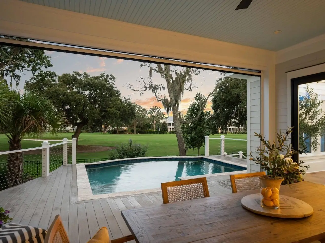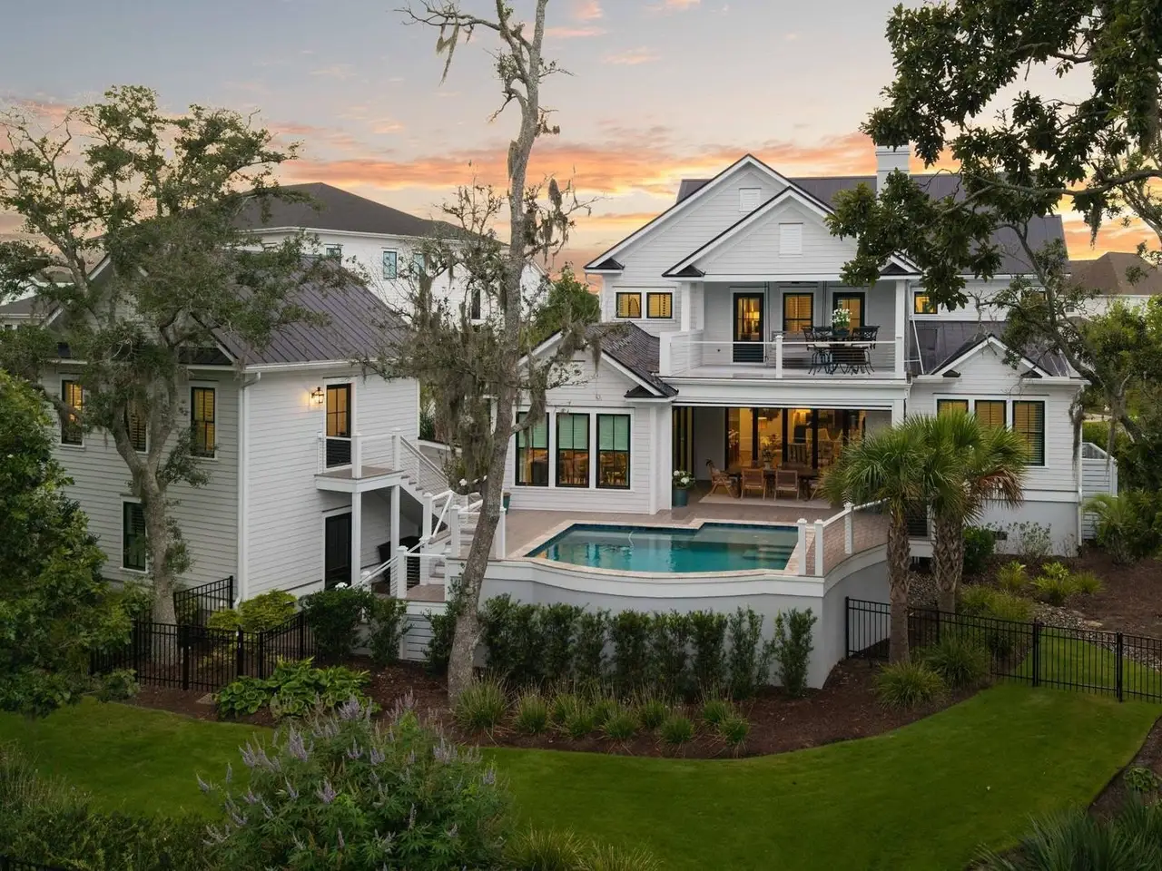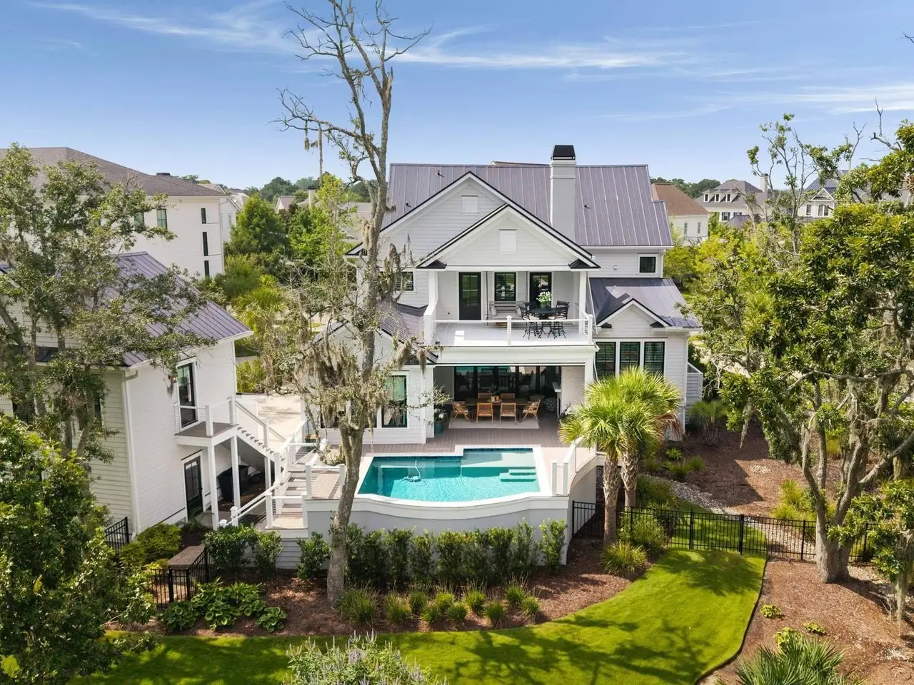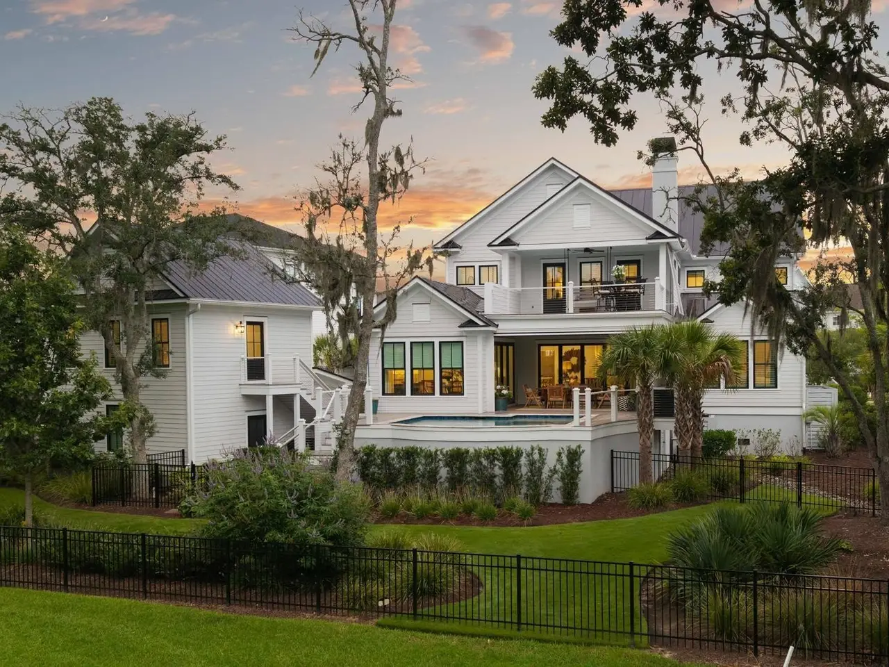 Rare true six bed, 6.5 bath Parkside home with FULL GOLF attached. Enjoy spectacular Daniel Island golf course views from multilevel porches and the elevated pool. The home has newly refreshed high-design touches throughout. Quality and craftsmanship are at the forefront with Wolf and Sub-zero appliances in the gourmet chef's kitchen and butler's area with walk-in pantry. A luxurious first floor master suite leaves you with endless areas for relaxation including a large custom closet and soaking tub in the marble bath. Upstairs you will be wowed with a huge media room flowing to a rear porch and three en-suite bedrooms while laundry is a breeze with two laundry spaces (up and down). Venture to the third floor space/suite or descend to the large detached in-law residence. The home lives both intimately and LARGE. You will be in awe of the entertaining space and elevated pool off the living room with large concept open flow NANO door that brings the outside in - auto screens and a porch fireplace keep everything comfortable through all seasons. Do not miss a moment of luxury coastal living in one of the most spectacular locations in Charleston.