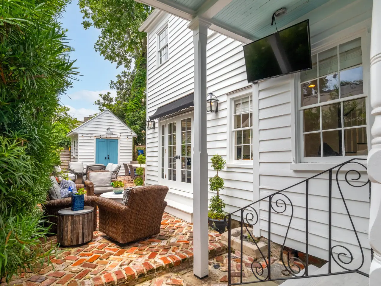 Timeless Elegance Meets Modern Luxury in the Heart of Historic Charleston on the highly desirable Warren Street. Step into the perfect fusion of Charleston's rich heritage and contemporary sophistication with this masterfully renovated 1800s Charleston Single home. Nestled one of the most idyllic and walkable locations on the Peninsula, this residence offers the rare combination of serene city living with immediate access to celebrated shops, restaurants, and cultural landmarks. From the moment you arrive, the home exudes Southern charm. A handcrafted wrought iron gate(a striking piece from the legendary blacksmith Philip Simmons) welcomes you to a spacious lot with coveted off-street parking, framed by lush landscaping and shaded piazzas ideal for enjoying breezes year-round. Inside, historic character and refined finishes abound. Original hardwood floors and antique fireplaces echo the home's storied past, while a fully reimagined open floor plan offers effortless modern living. Custom-built cabinetry, refined lighting fixtures, and curated architectural details create an ambiance that is both elegant and inviting. The main level features a formal living room AND a gracious great room complete with a stylish wet bar and built in mini fridge-perfect for entertainingand seamlessly flows into a show-stopping chef's kitchen outfitted with natural stone countertops, high-end stainless steel appliances, a gas range, built-in water filtration system, and a generous central island with counter seating. Thoughtful upgrades such as new custom built-ins add functional beauty throughout. Hidden pantries and storage are cleverly constructed in the staircase for a surprising surplus of storage. Ascend one of the two staircases to discover a luxurious primary suite that rivals the finest boutique hotels. The spa-like ensuite bath is a tranquil retreat, showcasing a two separate vanities and a stylish spa tile design. Spacious closets and storage with integrated laundry adds convenience and style. Two additional bedrooms offers flexibility for a home office, guest suite, or media room. Designed for both intimate daily living and elegant entertaining, the home is bathed in natural light thanks to custom-crafted French entry doors. Additional highlights include a tankless water heater, updated plumbing and electrical, and multiple staircases enhancing flow and accessibility. Outdoor living is elevated to an art form with a bespoke brick patio and full outdoor kitchen, complete with built-in grilling station, ideal for hosting alfresco dinners or relaxing under the stars. A private fenced yard and charming garden shed complete this outdoor oasis. Located just blocks from Marion Square, the Medical District, and Charleston's finest dining destinations, and only minutes from The Battery, Sullivan's Island, and Charleston International Airport, this extraordinary home offers a lifestyle of unmatched convenience, history, and refinement. This is more than a home - it's a piece of Charleston's soul, beautifully reimagined for modern living. Don't miss this rare opportunity.
