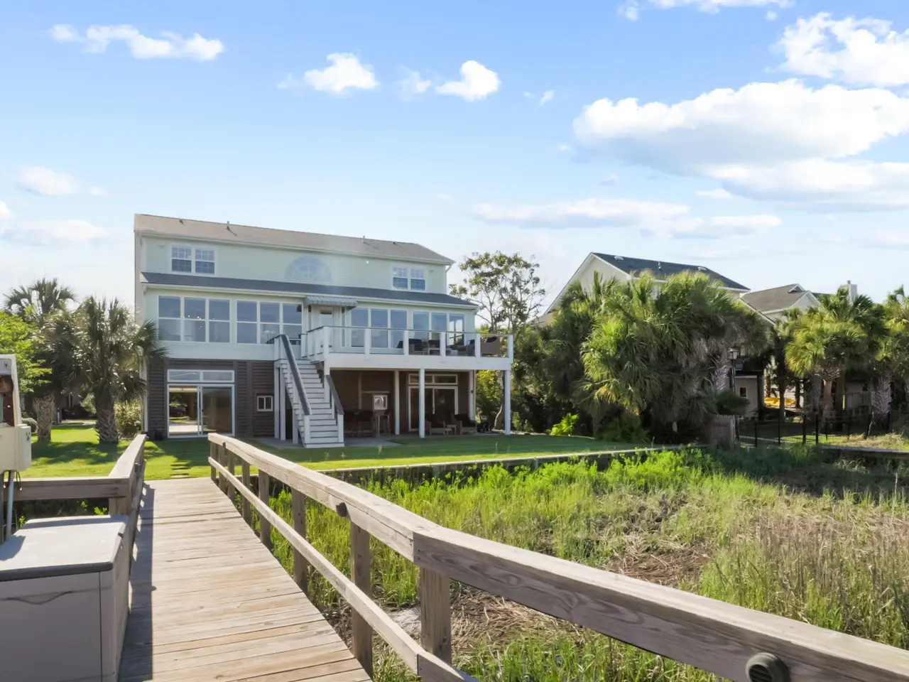 2363 Palmer Creek Bend is a remarkable single-family home located in the peaceful and highly desirable Oak Island neighborhood on James Island in Charleston, SC. This waterfront retreat effortlessly combines comfort, elegance, and coastal charm, offering an exceptional lifestyle in the heart of the Lowcountry. Spanning approximately 2,689 square feet, the residence features 3 spacious bedrooms and 3.5 bathrooms. Set on a generous lot along Oak Island Creek, the property boasts a private covered dock complete with a floater and 7000lb boat lift, granting direct access to the Folly River--just a short boat ride away--perfect for exploring or unwinding. Meticulously updated by the current owner with thoughtful attention to detail, the home centers around a chef's kitchen, equipped with top-of-the-line Wolf appliances. A massive quartz island serves as both a stylish focal point and functional space for casual dining or entertaining. The kitchen flows seamlessly into the main living area, ideal for gatherings. One of the standout features is the sunroom, stretching the full length of the back of the home. With breathtaking panoramic views of the creek, it's the perfect spot to watch dolphins play, boats ride by, or simply enjoy the serene surroundings. The primary suite also takes full advantage of the waterfront setting, with sweeping views and a spa-like en-suite bath featuring a glass-enclosed Italian-tile shower, floating vanity, and modern, upscale finishes. Upstairs, two additional bedrooms each offer private en-suite bathrooms, creating comfortable accommodations for guests or family members. The expansive 4-car garage includes generous storage and a heated and cooled office, perfect for remote work or a creative studio. An elevator with a recently replaced motor offers convenient access to the main living level. Additional highlights and upgrades include: New roof (2016), IPE decking with stainless steel railings, Irrigation system, Landscape and exterior lighting, Marsh-side retaining wall, Bahama shutters, Tankless water heaters, Whole-house generator, Outdoor shower & fountain feature, Remote-controlled sunroom shades, Garage door openers (2019), Plantation shutters. Just minutes from Folly Beach, residents enjoy easy access to sandy shores, surfing, and a vibrant beachside restaurant scene. Folly also offers a public park with a playground, basketball court, and pickleball courts, ideal for active lifestyles. Located only 8 miles from historic Downtown Charleston, this home offers the perfect blend of natural beauty and urban convenience. It's zoned for James Island Elementary, Camp Road Middle, and James Island Charter High School. Travel is a breeze with Charleston International Airport (CHS) just 18 miles away. According to Charleston County, the home is possibly eligible for short-term rental (72 or 144 days per year), adding excellent flexibility for future owners. The Oak Island community is known for its scenic setting and outdoor activities like kayaking, fishing, and birdwatching. Tucked away in nature yet close to city amenities, this location offers the best of both worlds. 2363 Palmer Creek Bend isn't just a home - it's a lifestyle. Don't miss this rare opportunity to own a slice of waterfront paradise in Charleston's Lowcountry.