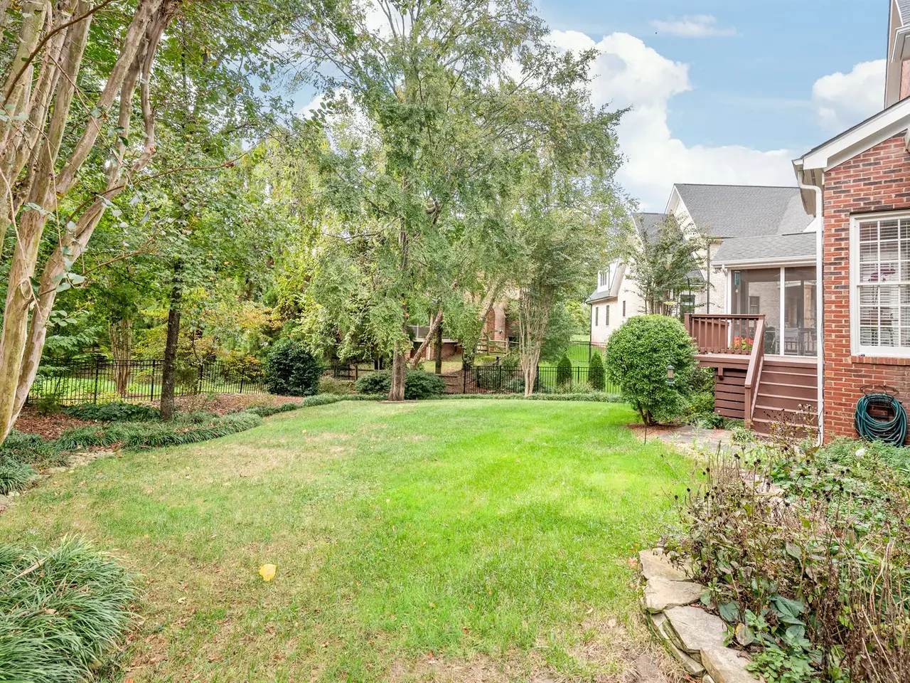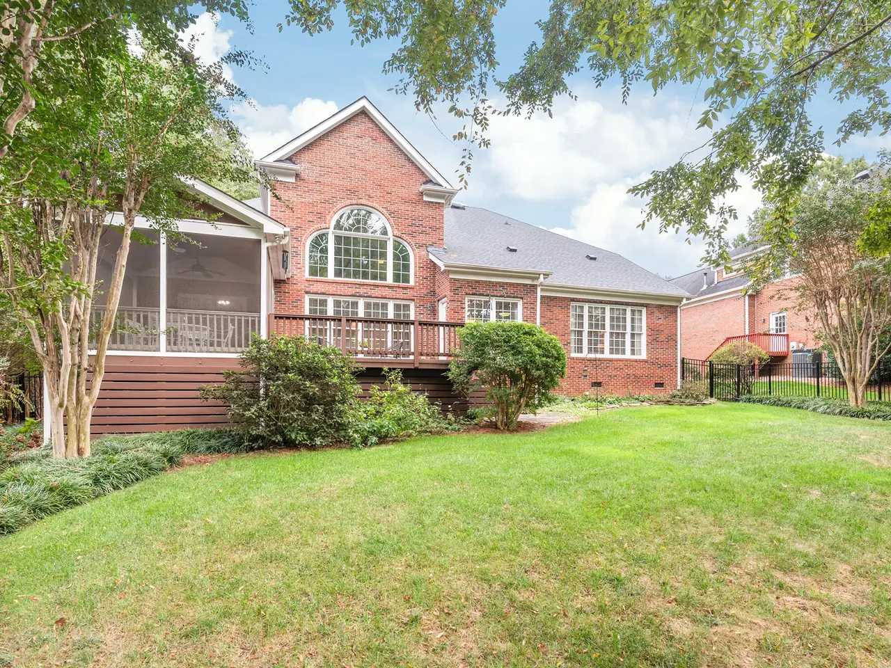 A PREMIUM LOT in the "VINEYARD" in the heart of BALLANTYNE, Tucked away on a private cul-de-sac right next to Ballantyne Country Club in a FULL BRICK NEIGHBORHOOD! 5 BRS, 3.5 BATHS, 2-story Foyer and Family room with Fan and a COZY Fireplace, KITCHEN with GRANITE COUNTERTOPS, Breakfast Bar, tiled Backsplash and CABINETS Galore with DISPLAY GLASS DOORS on the right with a built in kitchen DESK for LAPTOP right below, PRIMARY SUITE DOWN with soaking tub, separate shower and dual vanities with two WALK-IN CLOSETS, a 2nd BEDROOM down used as a HOME OFFICE, a versatile UPPER OFFICE or Study right next to the stairs, Upper level features 3 additional Bedrooms, a RECREATIONAL ROOM or FLEX ROOM with NEUTRAL DECOR, TWO 2nd Floor ATTIC WALK-IN STORAGE AREAS, an OVERSIZED DECK with a screened-in porch with CEILING FANS, which is very relaxing overlooking a private fenced backyard with a full IRRIGATION system! An Unbeatable location, in walking distance to The Morrison YMCA and less than a mile from top-rated Elementary, Middle, and High Schools. Hurry!