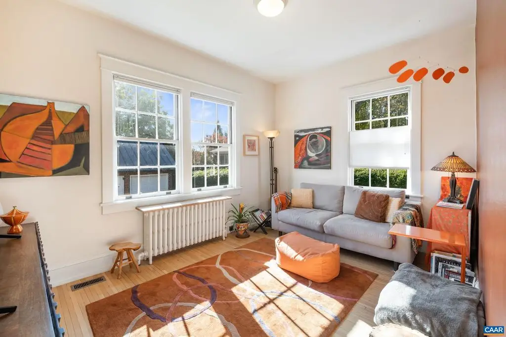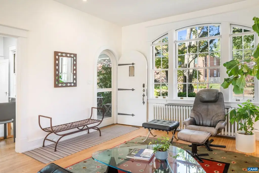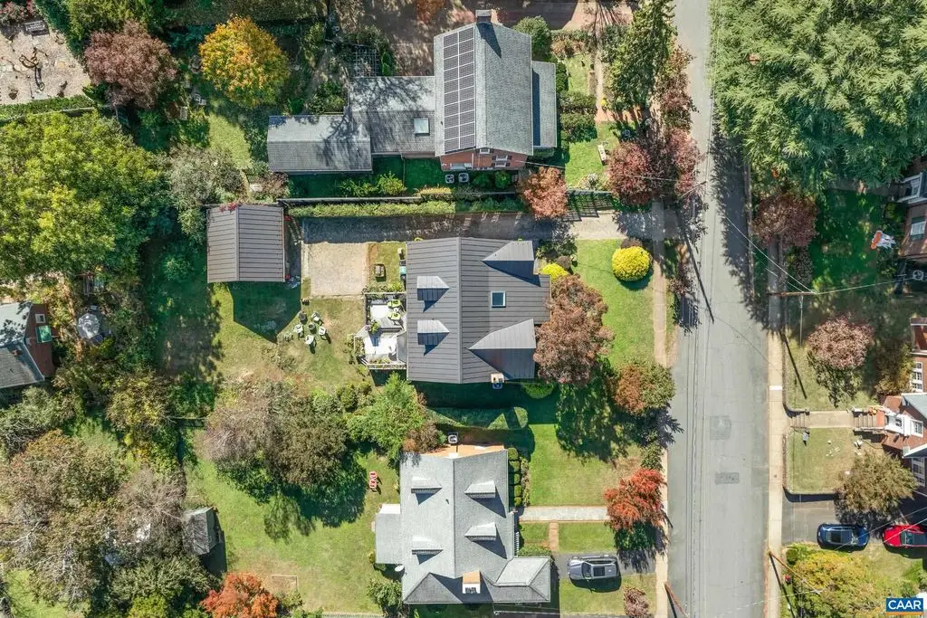OPEN SUNDAY, 11/2, 1-3! Open your next chapter in this storybook c. 1930 cottage perfectly situated on dogwood-lined Evergreen Ave-one of North Downtown's most beloved streets, along the 10-Miler route. A rare offering that blends timeless character w/ exquisite updates, this home delights at every turn. The inviting covered front porch and arched entry lead to a JEWEL BOX INTERIOR bathed in light streaming through architectural windows, 9.5' ceilings, handsome built-ins and white oak + southern yellow pine floors. The Karen Turner-designed kitchen is a SHOWSTOPPER, featuring Carrara marble counters, black walnut island, custom cabinetry, Bosch/Wolf appliances, built-in pantry + appliance storage + coffee bar. Sunny breakfast nook overlooks a peaceful backyard with IPE decking + built-in planters. MAIN LEVEL LIVING possible with 1st floor bedrooms and full bath. Upstairs offers a 3rd bedroom, 1/2 bath + flex space. Mountain views to the SE! Recent upgrades-NEW HVAC (2023) + NEW metal roof (2021) Potential for fabulous carriage house/studio in detached 2 car garage w/ electric panel + water/sewer access. An ENTERTAINER'S DREAM and idyllic retreat just steps from the Downtown Mall, boutique shopping, fine dining + farmer's markets.