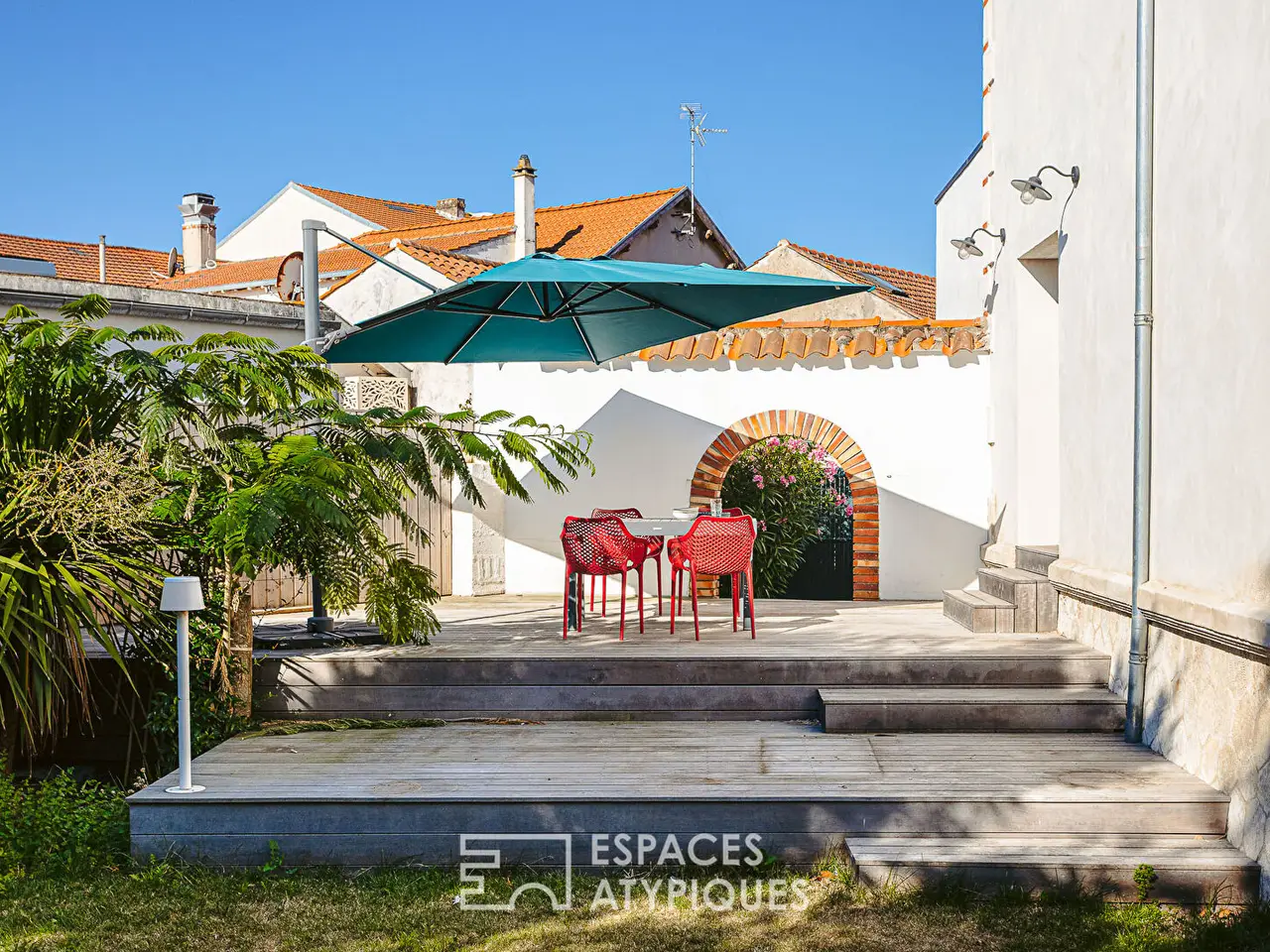EXCLUSIVE ATYPICAL SPACES Nestled in the heart of the highly sought-after 'Golden Triangle' of Chatelaillon-Plage, one of the city's most iconic historic homes reveals its charms. Completely renovated in 2022, this exceptional family home offers modern comfort and high-end amenities, in close proximity to the market and only 250 meters from the beach. Spread over approximately 180 m2 of floor space and located on a plot of nearly 495 m2, it has five bedrooms and four bathrooms, including one located on the ground floor. The majestic entrance, highlighted by stone steps, opens onto a vast, bright living room. This open space, adorned with herringbone oak parquet flooring and generously high ceilings, is extended by a sliding bay window overlooking the terrace that merges the interior with the garden. The kitchen, perfectly integrated and equipped with quality equipment, fits naturally into this volume. For more privacy, a cozy living room, separate from the main room, reveals a reading or cinema corner. The ground floor is completed by a first suite with a bedroom and private bathroom. Upstairs, a landing leads to a second suite with its bathroom. The third bedroom has a large bathroom and a dressing room accessible from the landing. The second floor houses two additional bedrooms. The first is located under the highest roof, highlighting the remarkable exposed roof structure that soars several meters high. The second benefits from a large floor area of approximately 21 sqm (approximately 12 sqm Carrez). These two bedrooms share a large bathroom on this level. Outside, the landscaped garden is a green setting that surrounds the house. It features a pleasant lawn area shaded by vegetation, a sunny wooden terrace adjoining the living room-kitchen, and carefully landscaped paths around the house. This peaceful setting enhances the architecture of this residence, one of the first built in Chatelaillon. Located in the 'Golden Triangle', this property benefits from a privileged location allowing you to reach the market, shops and the beach on foot, combining the charm of a historic house with the comfort of a seaside daily life.ENERGY CLASS: C / CLIMATE CLASS: C. Estimated average amount of annual energy expenditure for standard use, established from energy prices for the years 2021, 2022 and 2023: between EUR2,200 and EUR3,500.REF. EALR2141Additional information* 8 rooms* 5 bedrooms* 1 bathroom* 3 shower rooms* Outdoor space : 495 SQM* Property tax : 2 499 €Energy Performance CertificatePrimary energy consumptionc : 152 kWh/m2.yearHigh performance housing*A*B*152kWh/m2.year24*kg CO2/m2.yearC*D*E*F*GExtremely poor housing performance* Of which greenhouse gas emissionsc : 24 kg CO2/m2.yearLow CO2 emissions*A*B*24kg CO2/m2.yearC*D*E*F*GVery high CO2 emissionsEstimated average annual energy costs for standard use, indexed to specific years 2021, 2022, 2023 : between 2200 € and 3050 € Subscription IncludedAgency feesThe fees include VAT and are payable by the vendorMediatorMediation Franchise-Consommateurswww.mediation-franchise.com29 Boulevard de Courcelles 75008 ParisInformation on the risks to which this property is exposed is available on the Geohazards website : www.georisques.gouv.fr