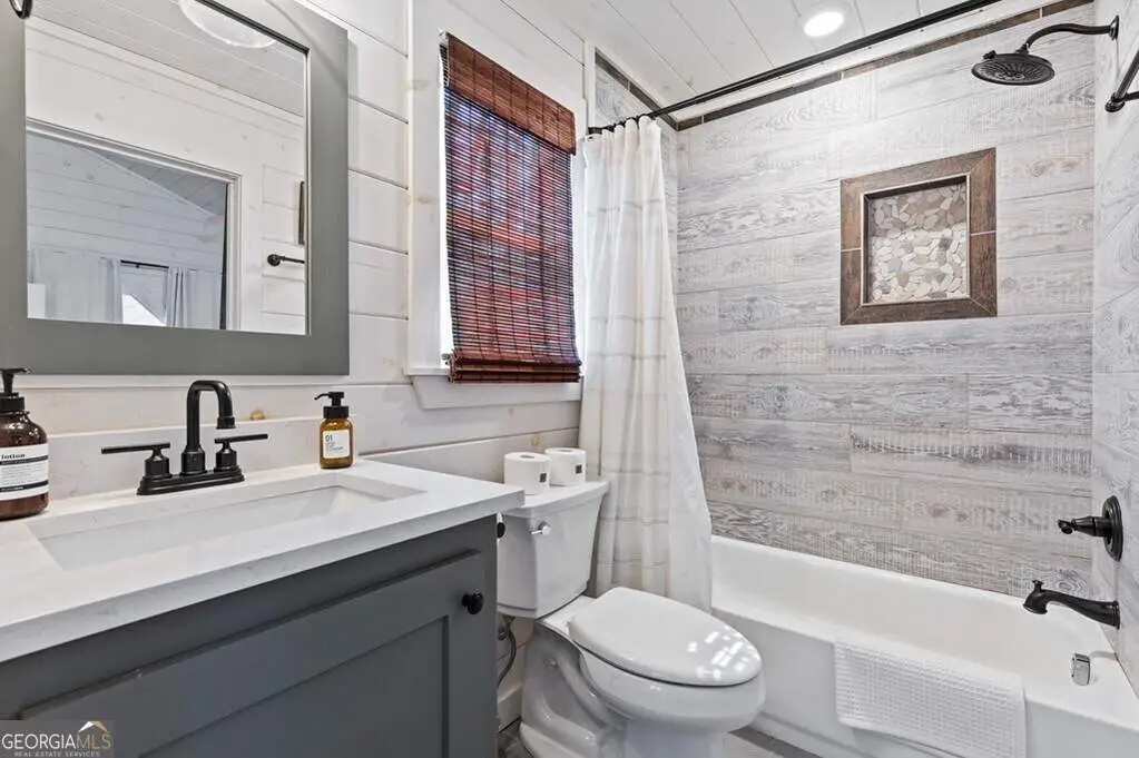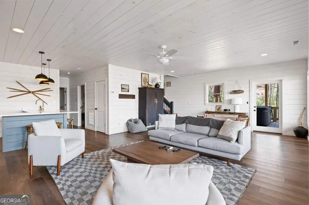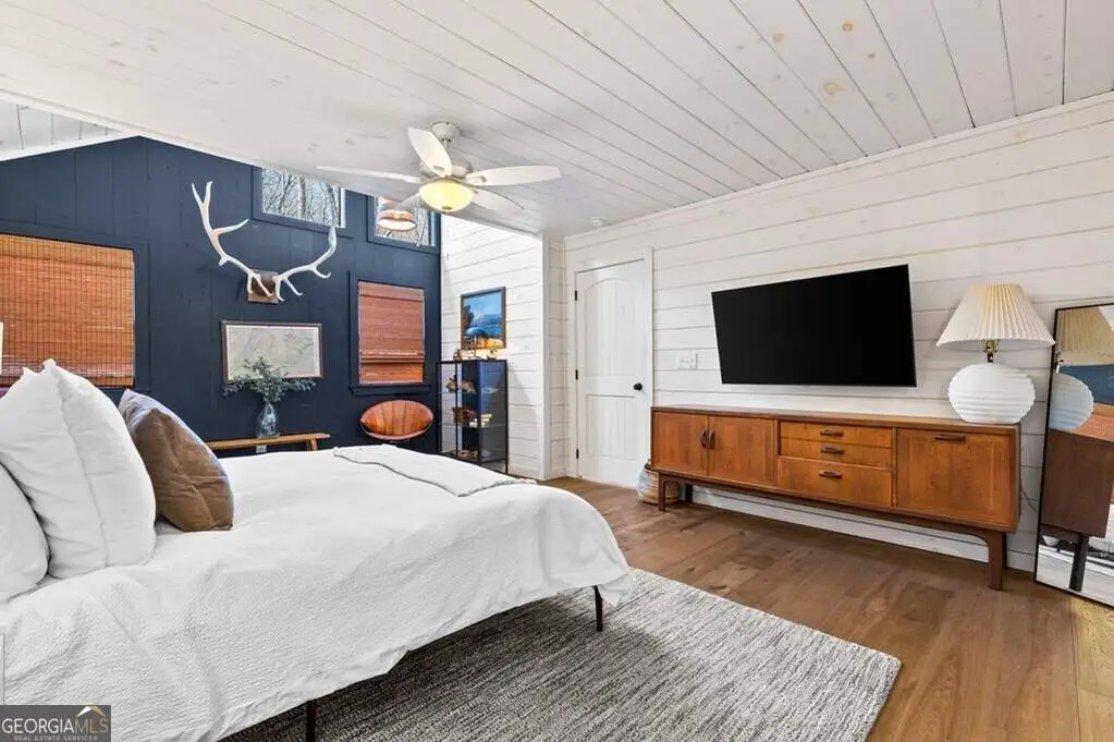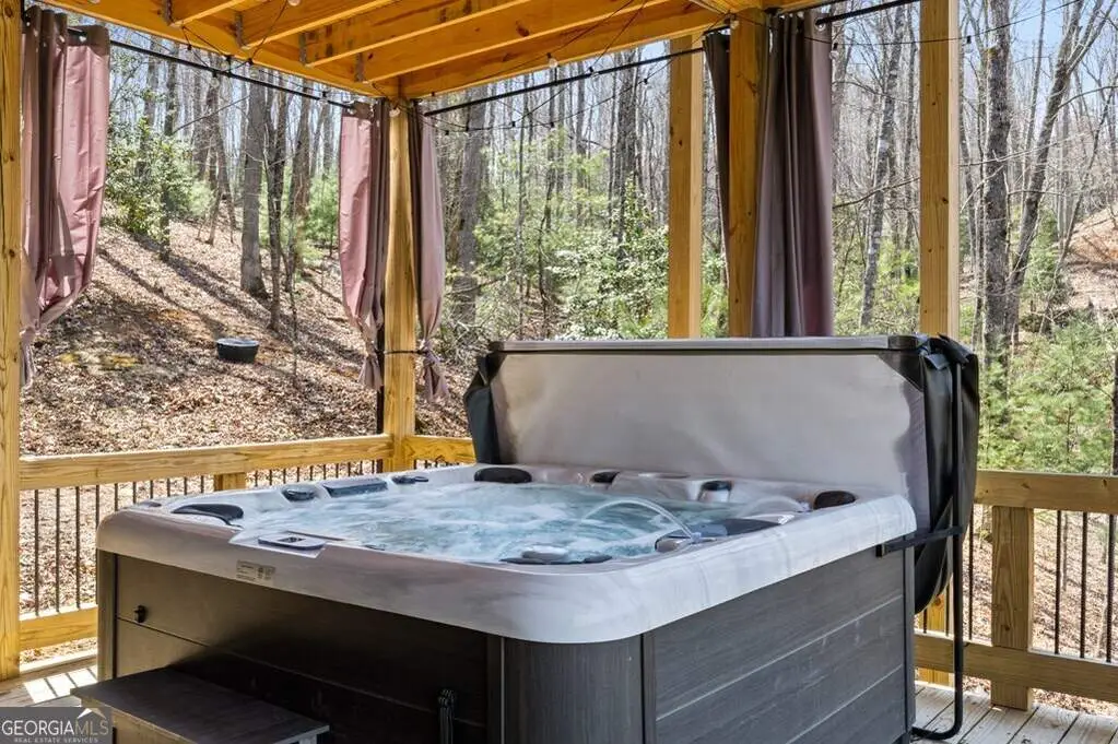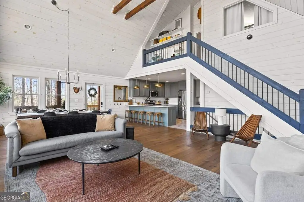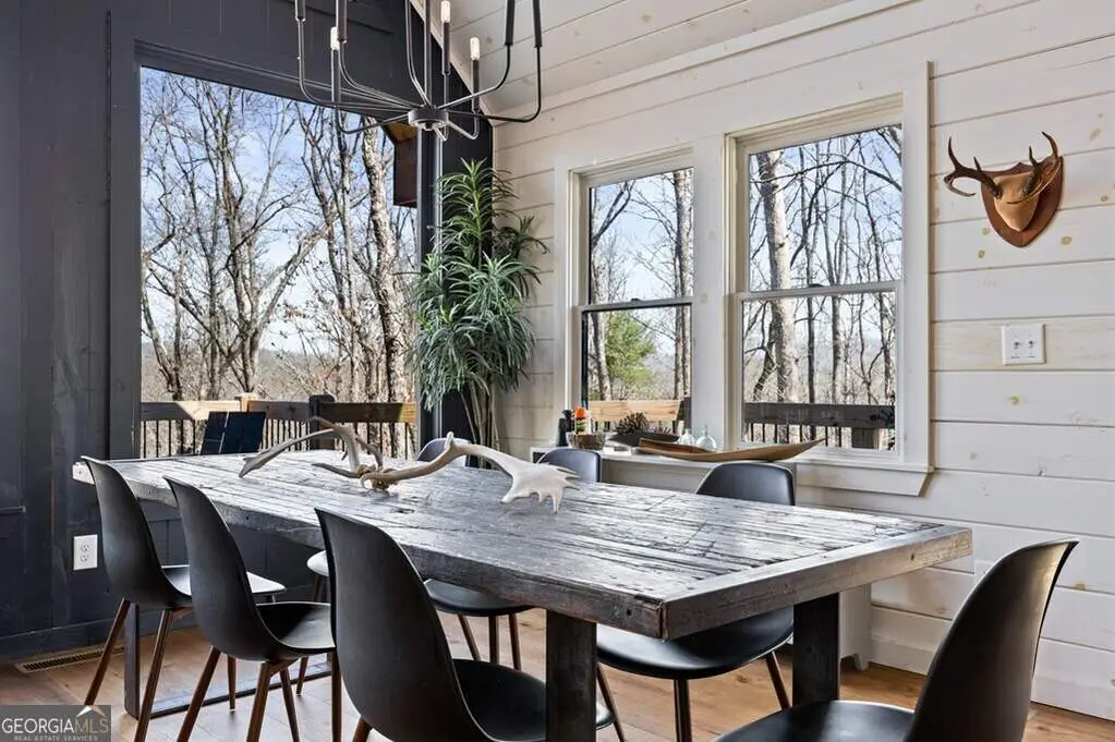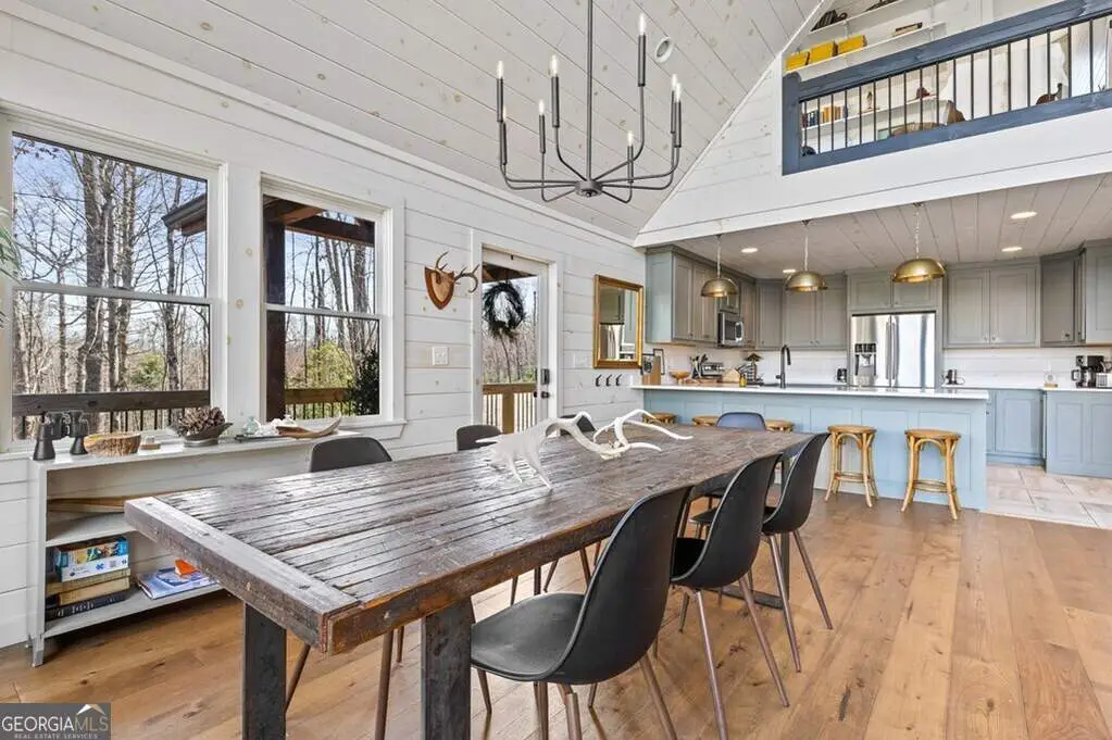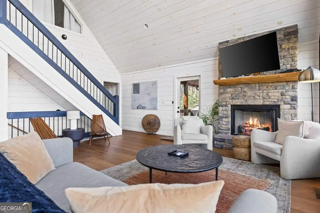 This extraordinary modern cabin is crafted by Prairie School and featured in numerous publications, offers the ultimate mountain escape on 2.44 acres in the Aska Adventure Area. With 4 bedrooms and 3.5 baths, it's a retreat that combines luxury with nature's beauty, featuring year-round mountain views from an expansive terrace complete with a wet bar and stacked stone fireplace. Inside, the open kitchen boasts custom tile flooring, granite countertops, and a spacious farmhouse sink, flowing into a great room with floor-to-ceiling windows and a stone fireplace. Three living spaces across different levels provide unique spots to relax, each with mountain views and cozy fireplaces. The main-level, loft, and lower-level lounges are perfect for both quiet evenings and lively gatherings. Outdoors, a hot tub, wood-burning fireplace, and multiple decks invite you to unwind while enjoying the sweeping scenery. The cabin's location near the Toccoa River, Blue Ridge dining, and hiking and biking trails makes it ideal for nature lovers and adventure seekers. This property is also a successful short-term rental. Just minutes from tubing and trails and a short drive to downtown Blue Ridge, this cabin offers an unparalleled blend of comfort, style, and accessibility, whether as a personal retreat or a high-performing investment.